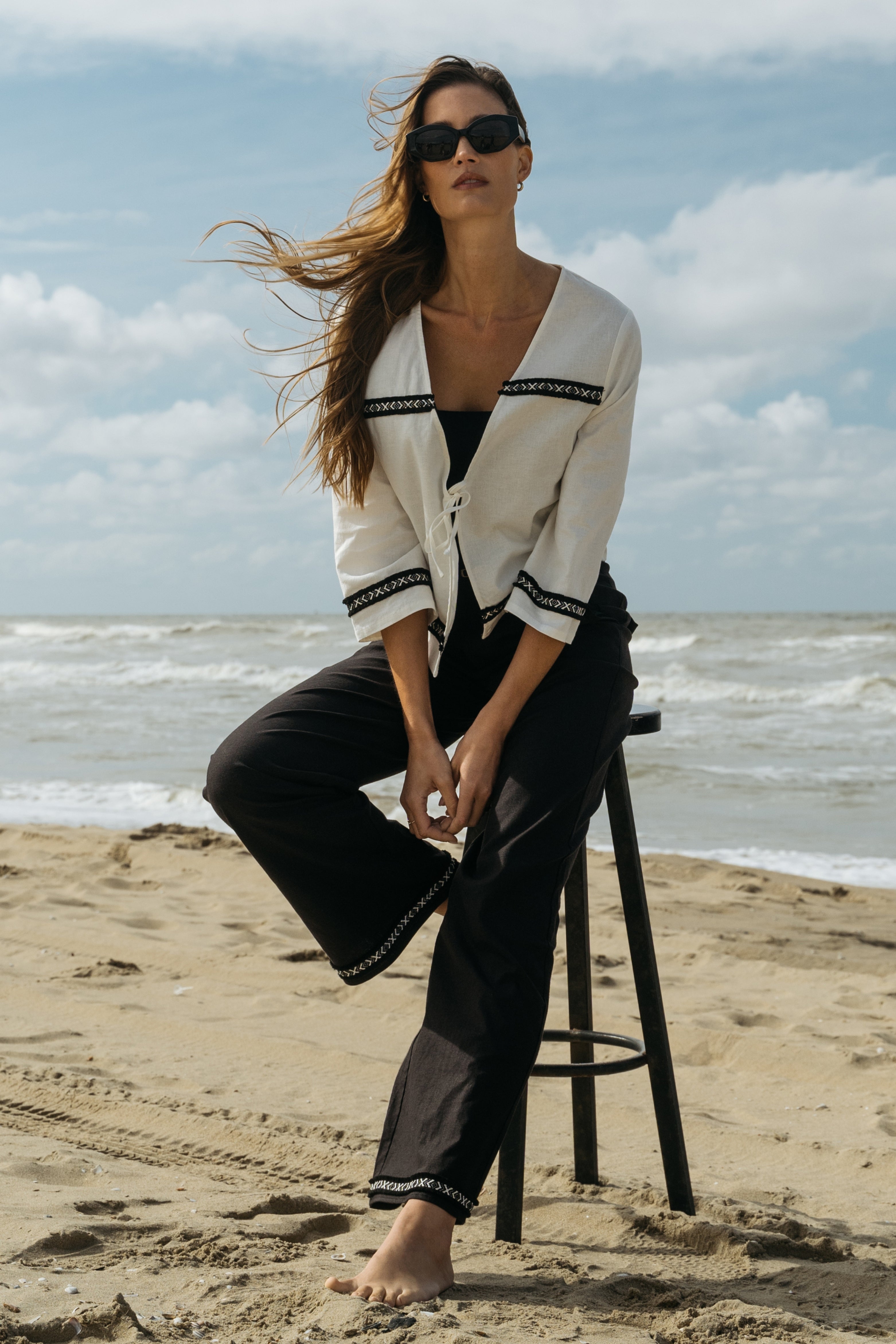 Broek Taylan Black Offwhite