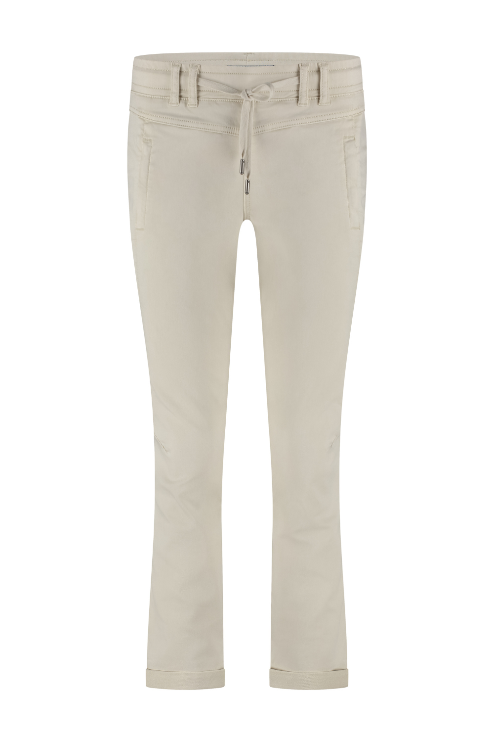 Deze comfortabele jogger in de kleur 'Pearl' heeft een cropped lengte van 29 inch en een elastische tailleband met trekkoord. Gemaakt van hoogwaardige materialen voor een stijlvolle en ontspannen look.