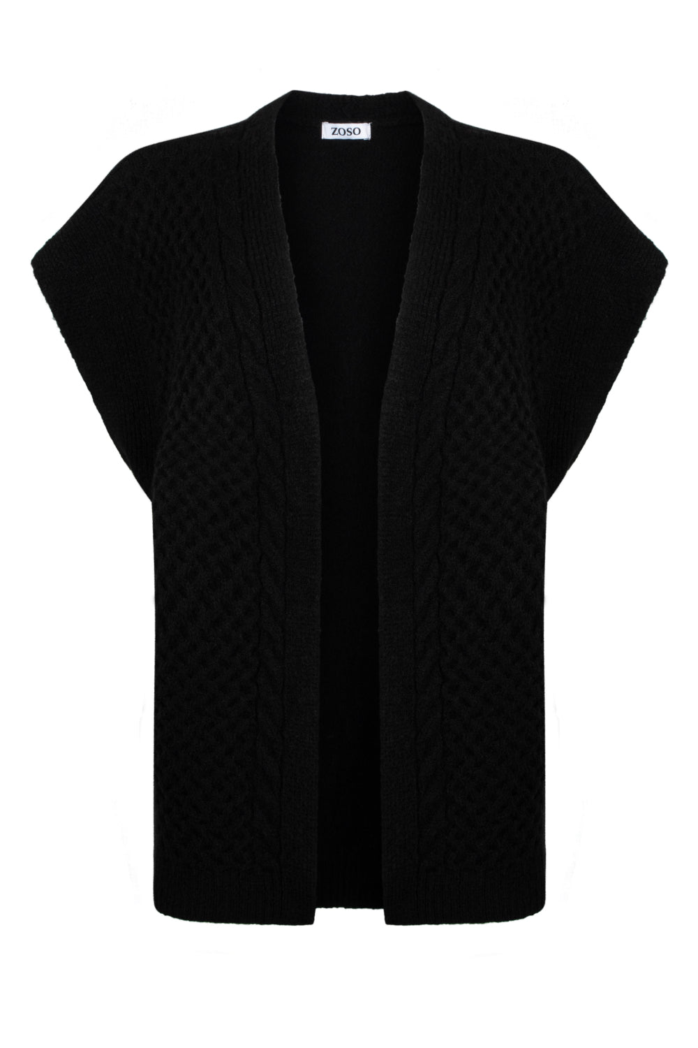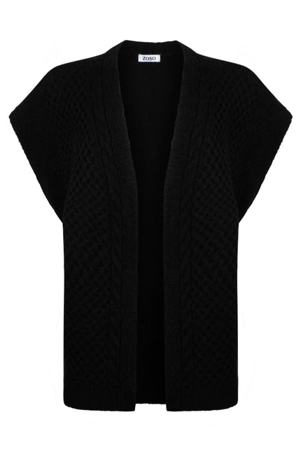 e Claire Black 245 van het merk ZOSO is een stijlvolle, mouwloze cardigan met een modern en tijdloos ontwerp. Gemaakt van hoogwaardig materiaal, biedt dit vest zowel comfort als warmte, perfect voor de koudere dagen.