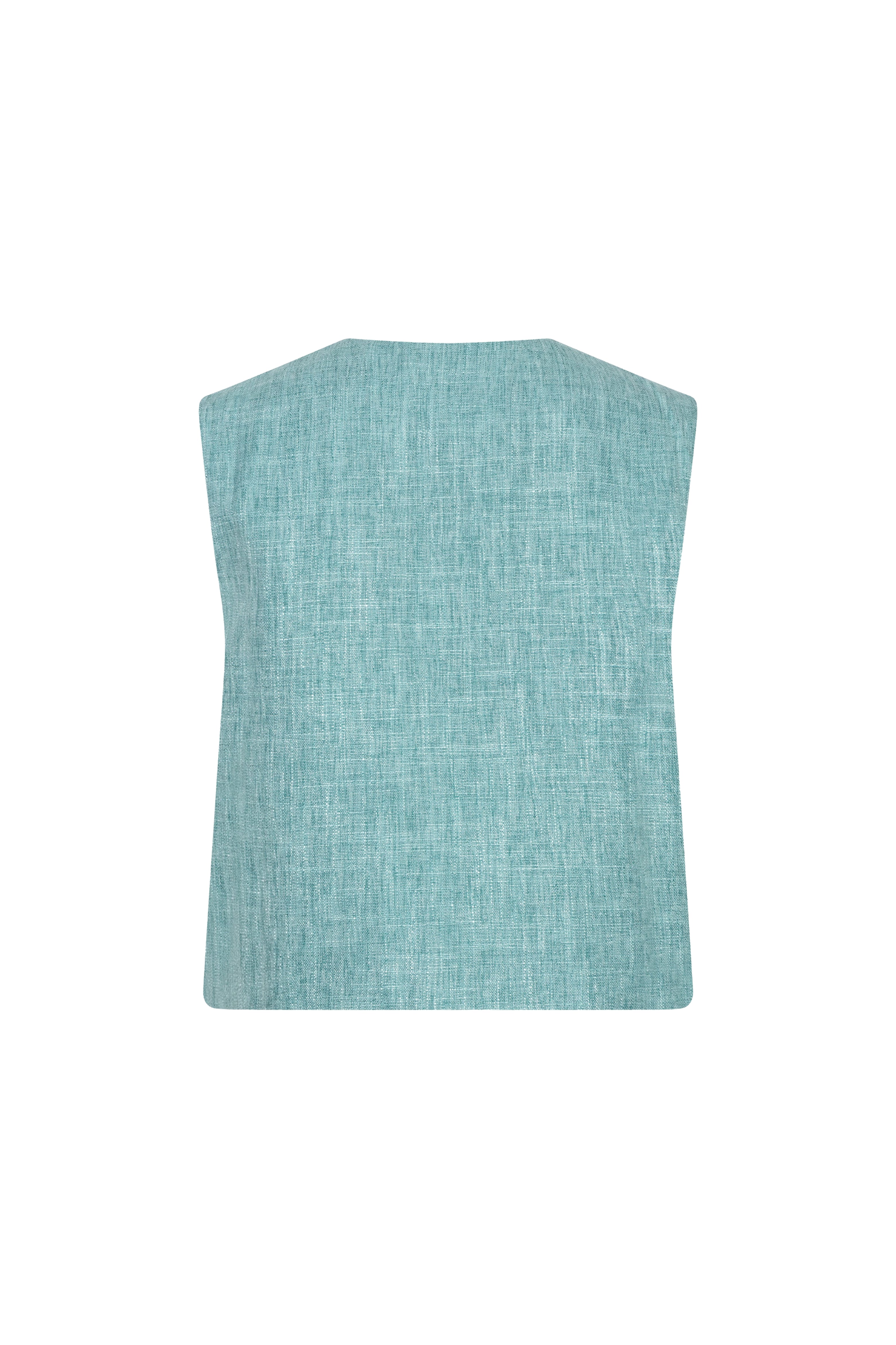 Gilet Amanda Turquoise Melange van Ydence is een stijlvol mouwloos gilet met melange structuur en borstzakken. Perfect te combineren als co-ord set voor een complete look.