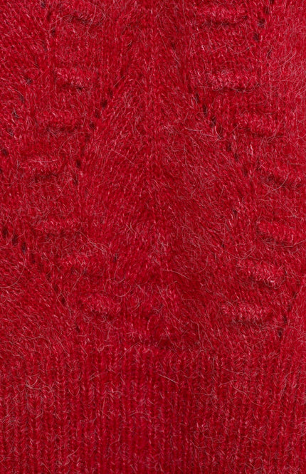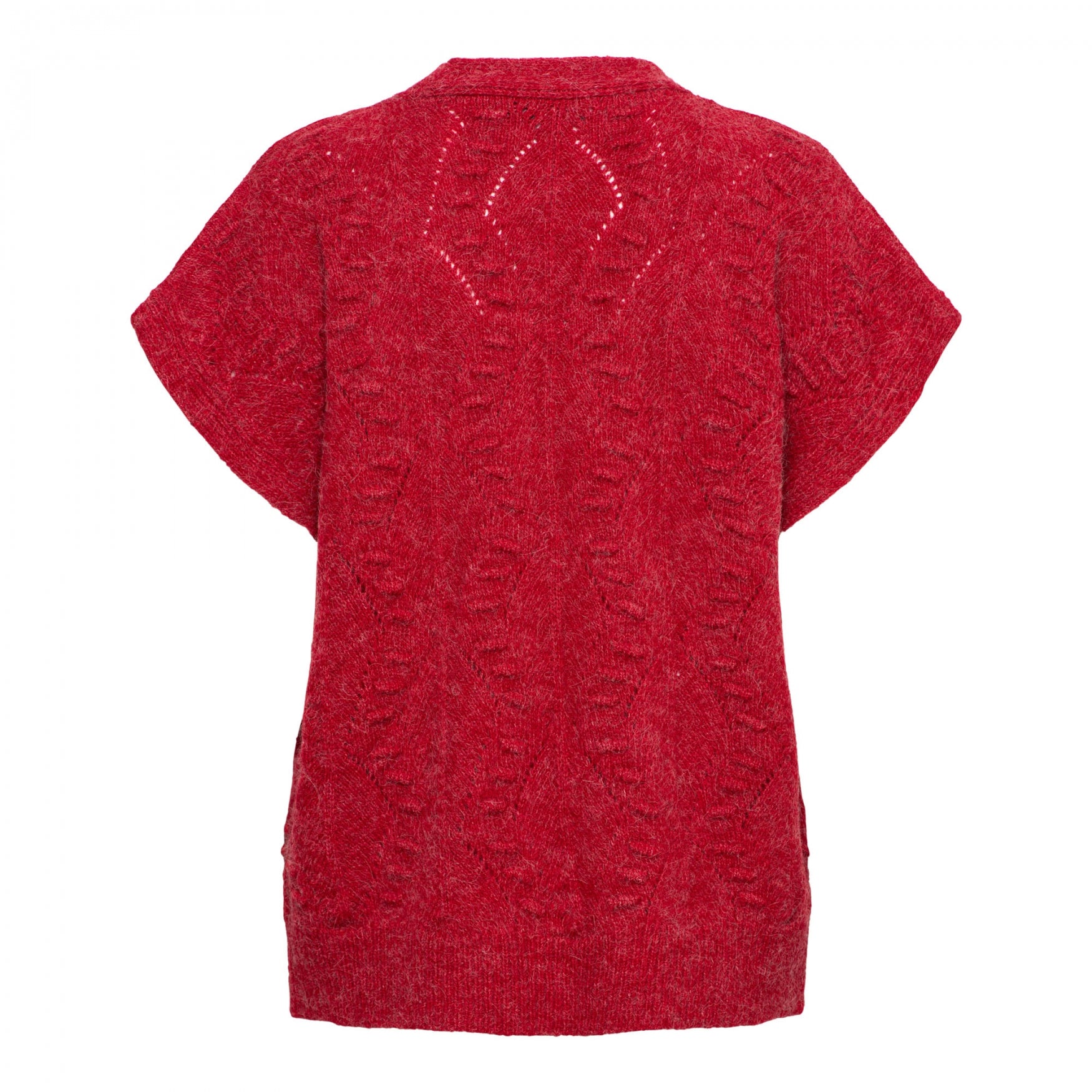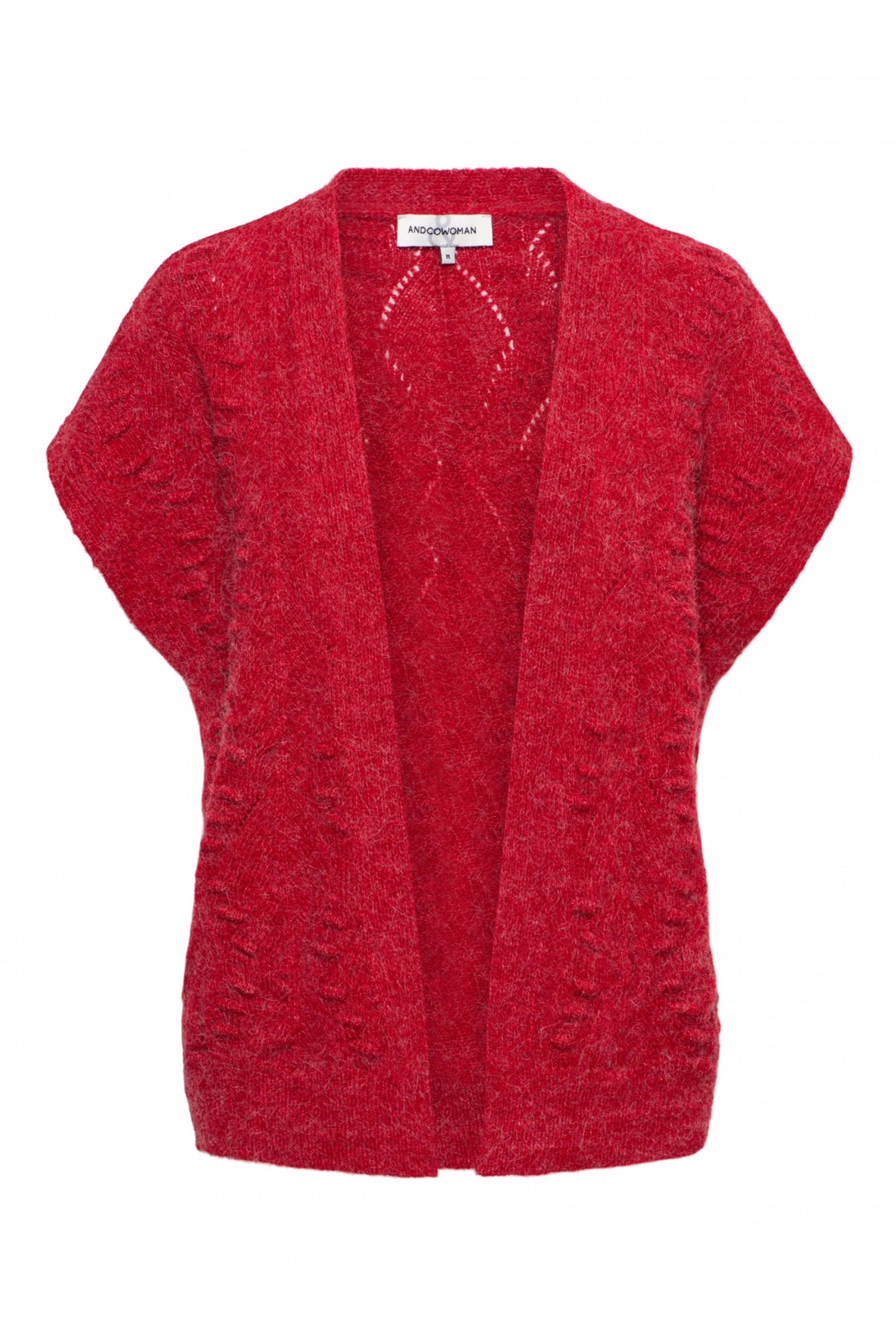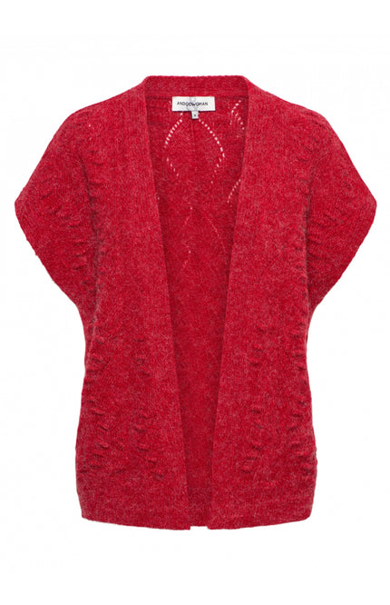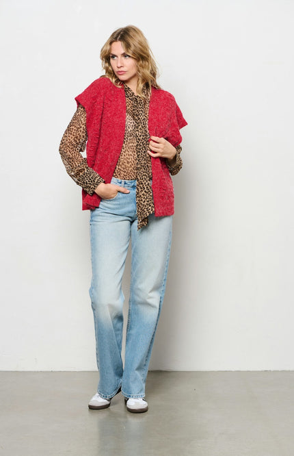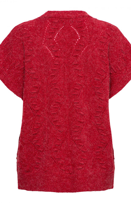 Het Gilet Elise in rood van Mi Piace is een stijlvol en warm mouwloos vest, perfect voor het creëren van gelaagde outfits in de koudere seizoenen. Het gilet is gemaakt van een luxe gebreide stof met een subtiel kabelpatroon, wat zorgt voor extra textuur en een tijdloze uitstraling.