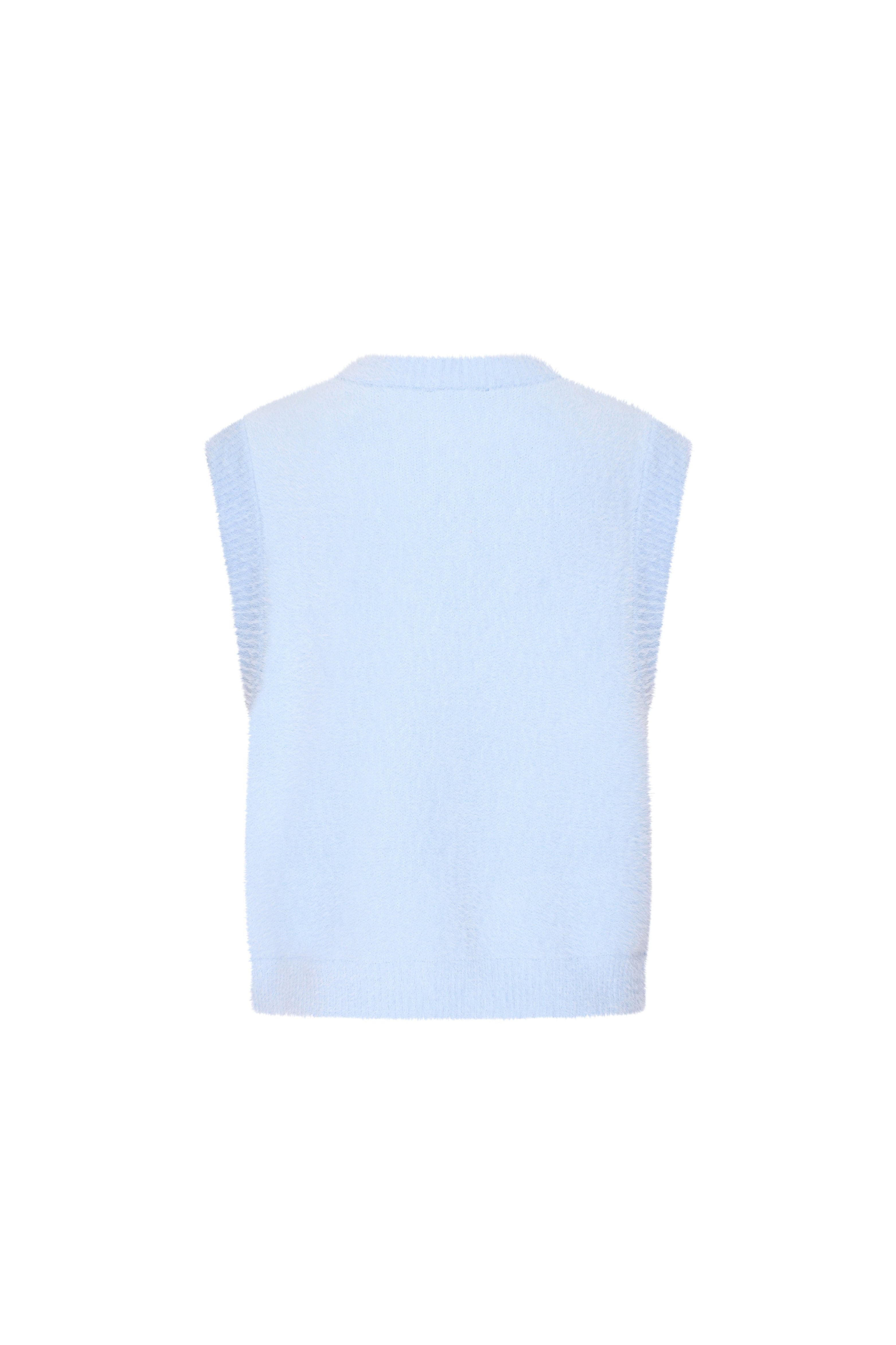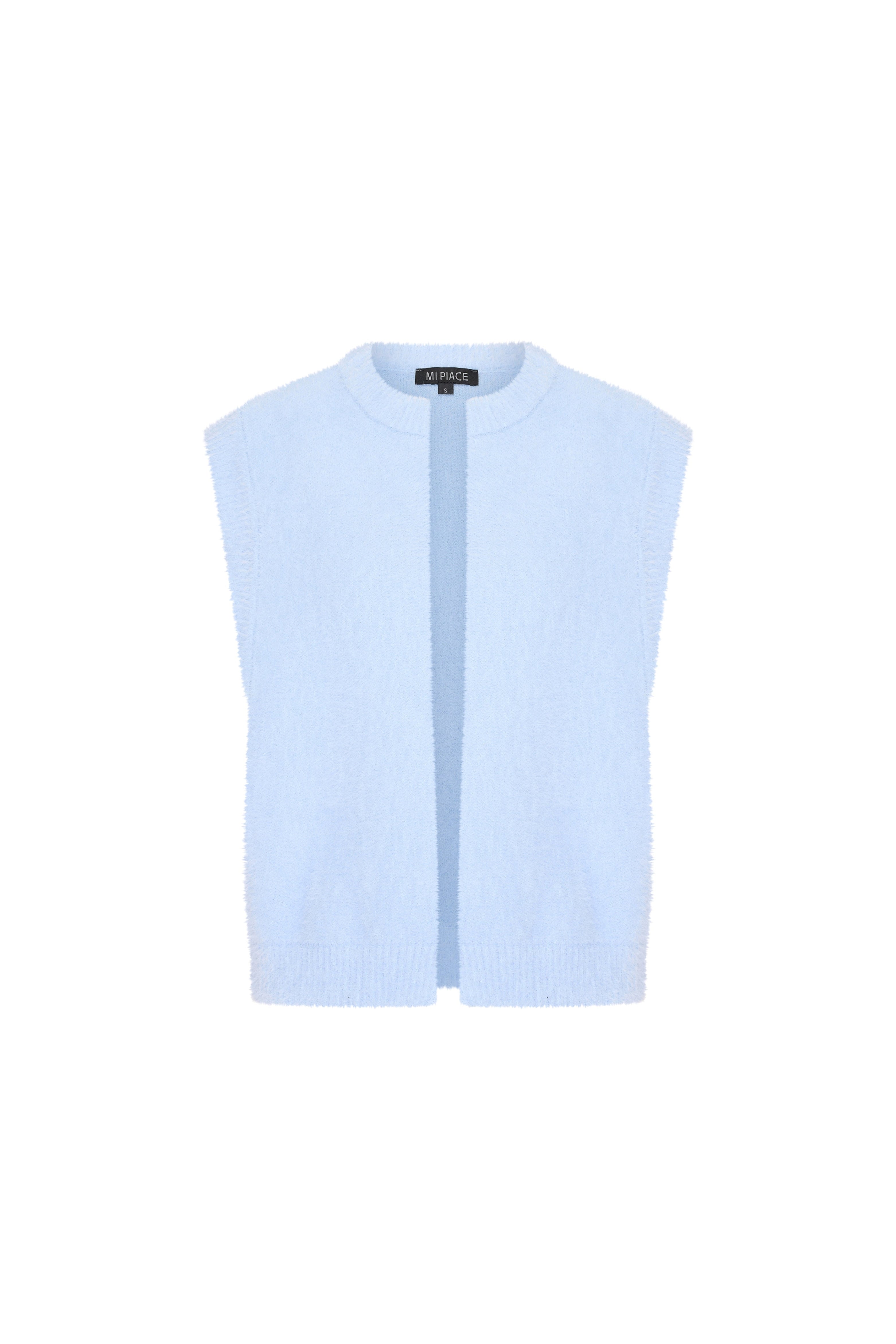 De Mi Piace Gilet Light Blue is een zachte en stijlvolle toevoeging aan je garderobe. Dit lichtblauwe mouwloze gilet biedt een moeiteloos chique look en is perfect om over een blouse of top te dragen voor een trendy laagjesstijl.