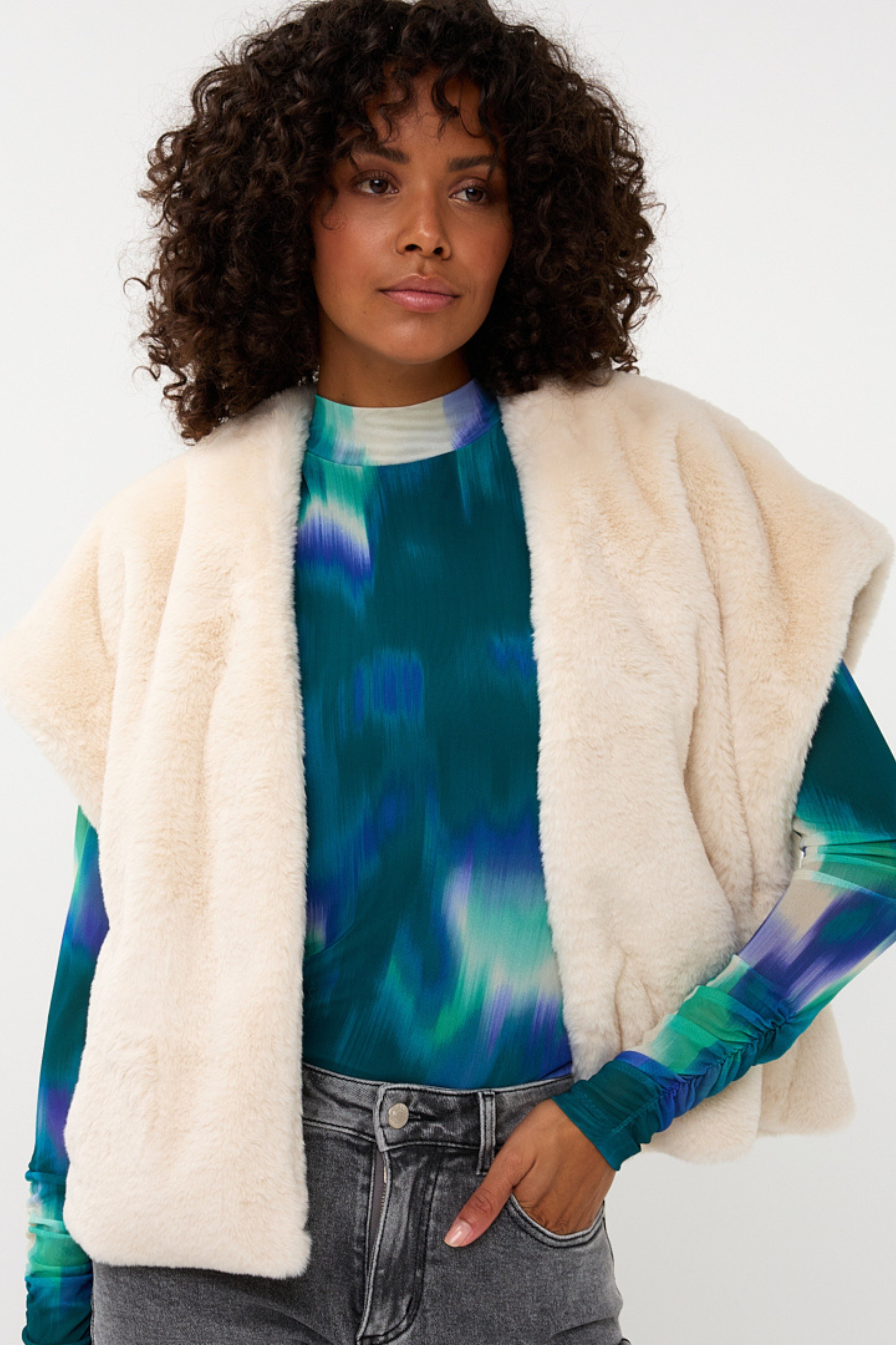 Het Oversized Fake Fur Gilet van EsQualo in Naturel is een zachte, oversized bodywarmer van imitatiebont. Dit veelzijdige gilet geeft elke outfit een stijlvolle en cozy uitstraling.