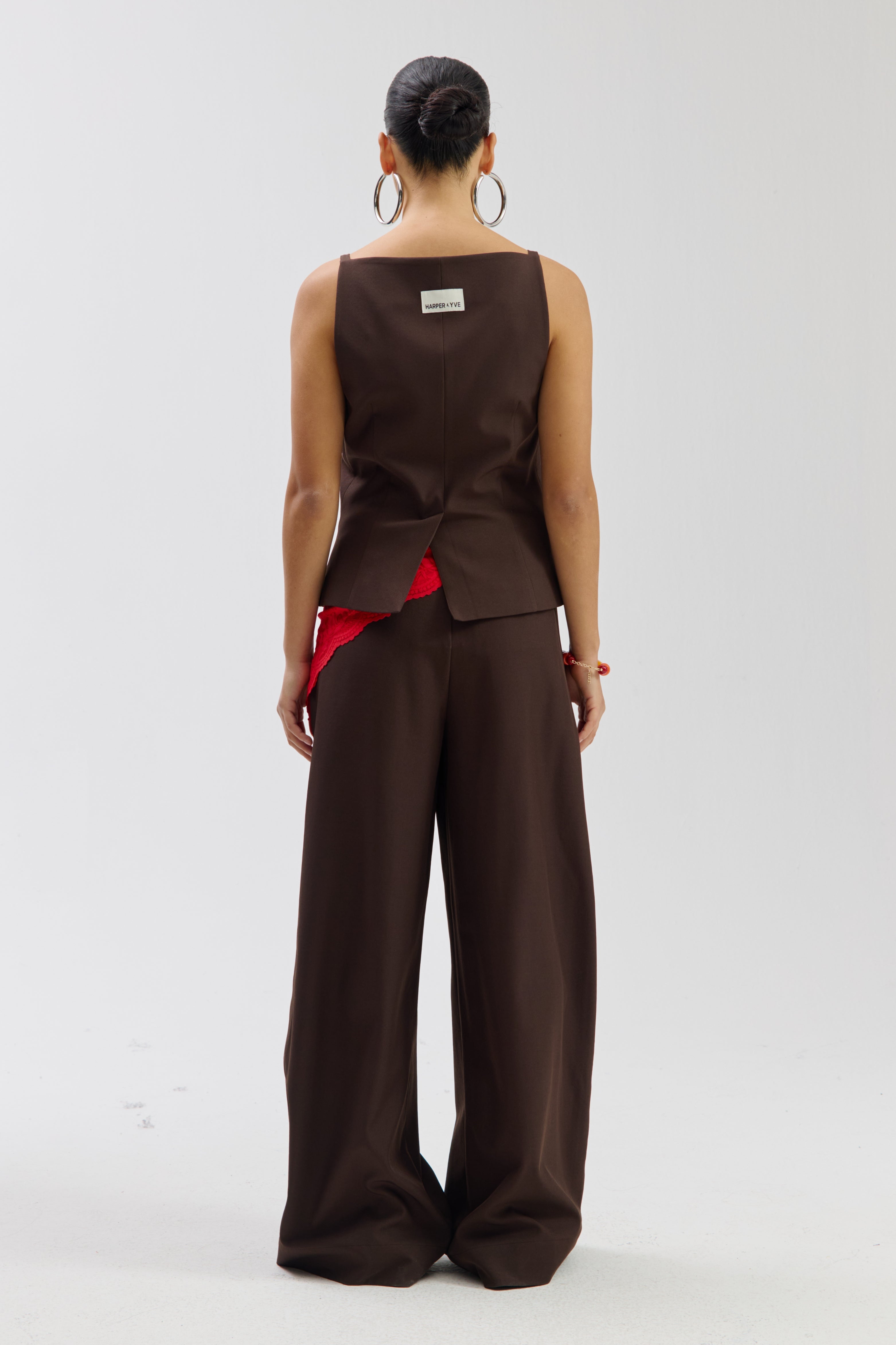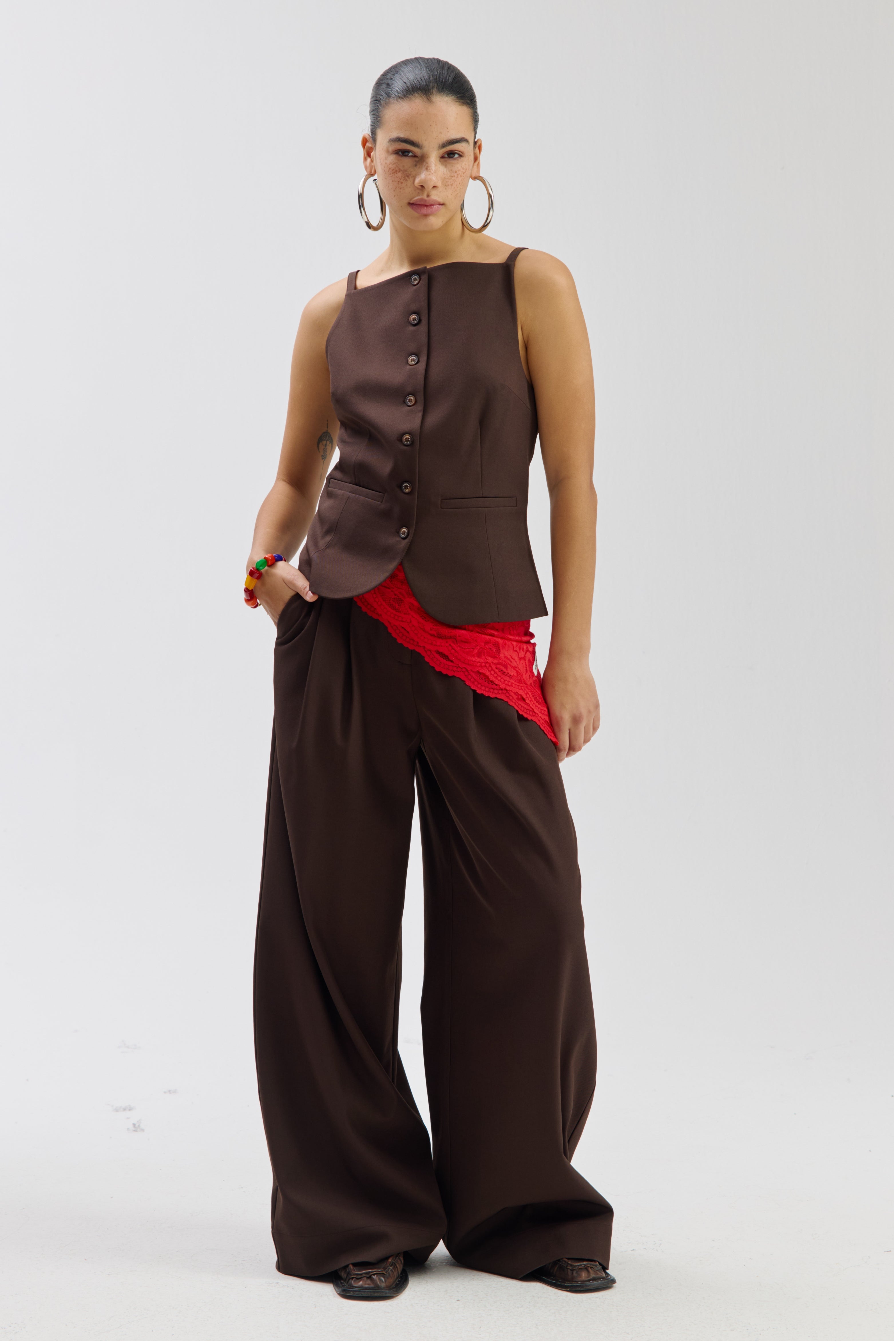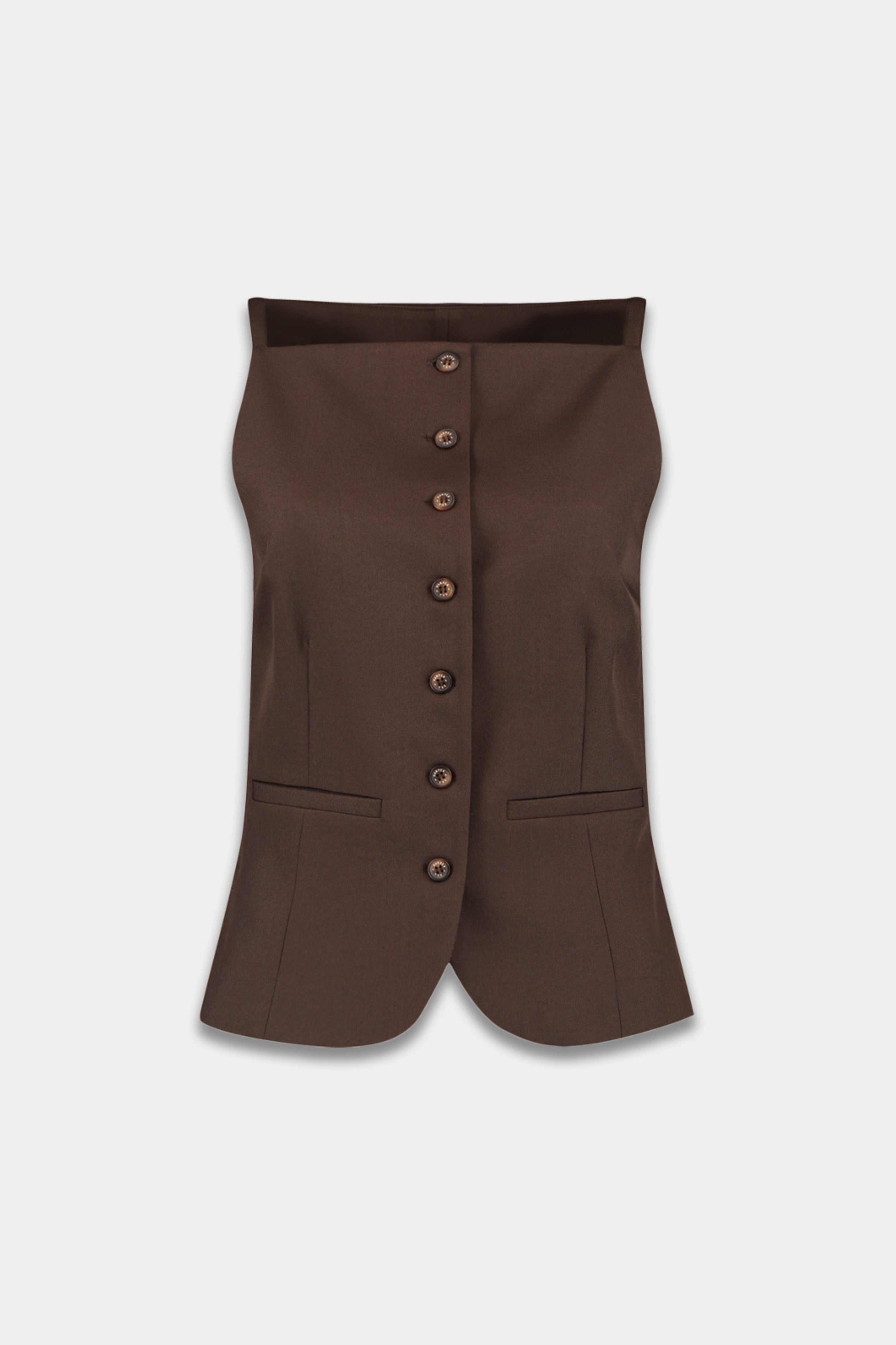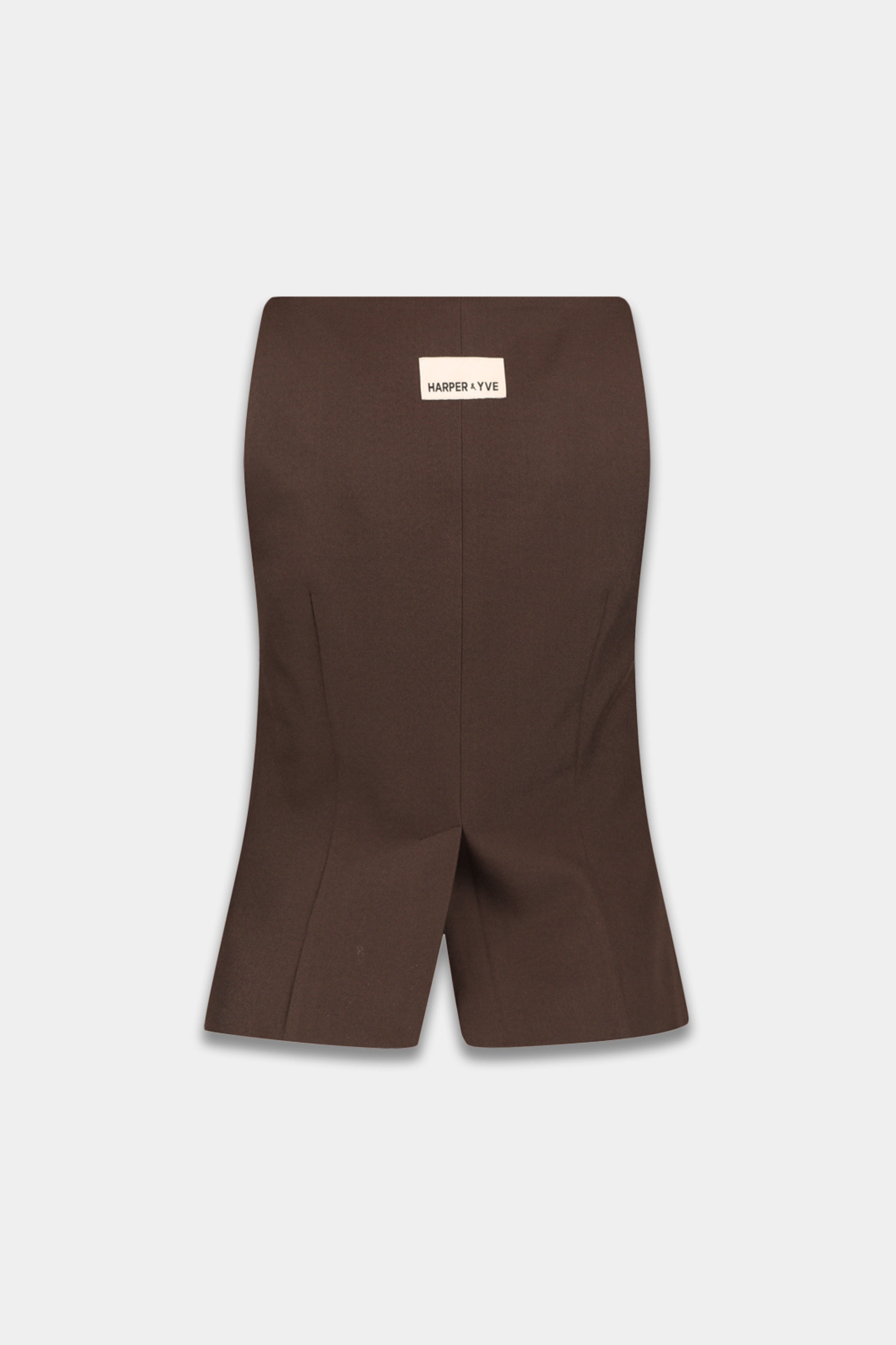 De Gilet Rey Saddle Brown van Harper & Yve is een elegant getailleerd gilet in een diepe bruine tint. De knoopsluiting en strakke lijnen geven het item een moderne, vrouwelijke look die perfect is voor gelaagde outfits.