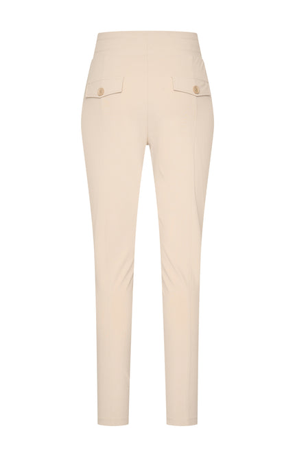 De Mi Piace Heavy Travel Broek Beige is een stijlvolle en comfortabele broek met een stevige stretchstof voor extra ondersteuning. De hoge taille en smalle pijpen geven een vrouwelijk silhouet, perfect voor elke dag.