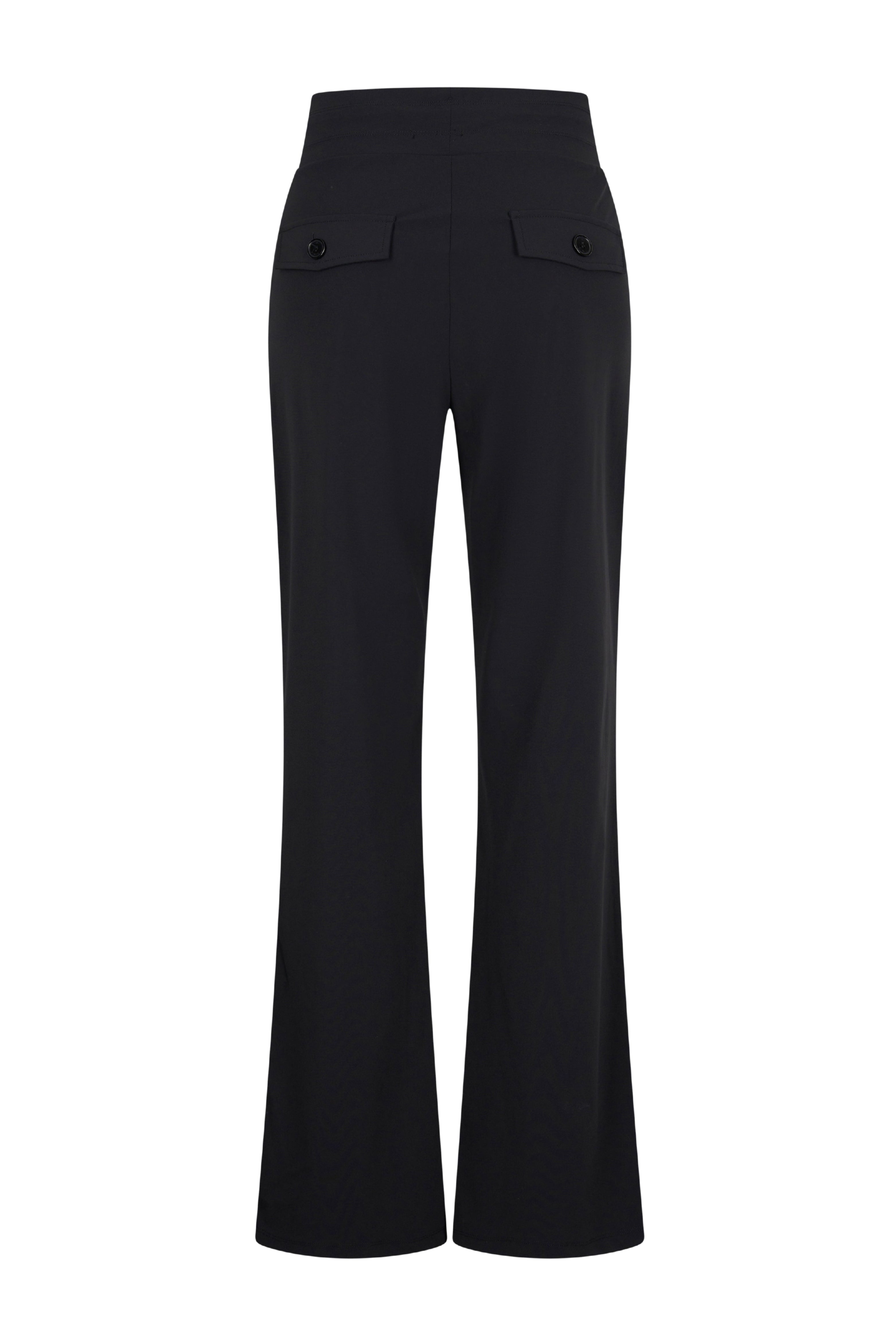 De Heavy Travel Broek Flared Black van Mi Piace combineert comfort met een vrouwelijke look. Het flared model en de hoge taille geven een elegante touch aan elke outfit.
