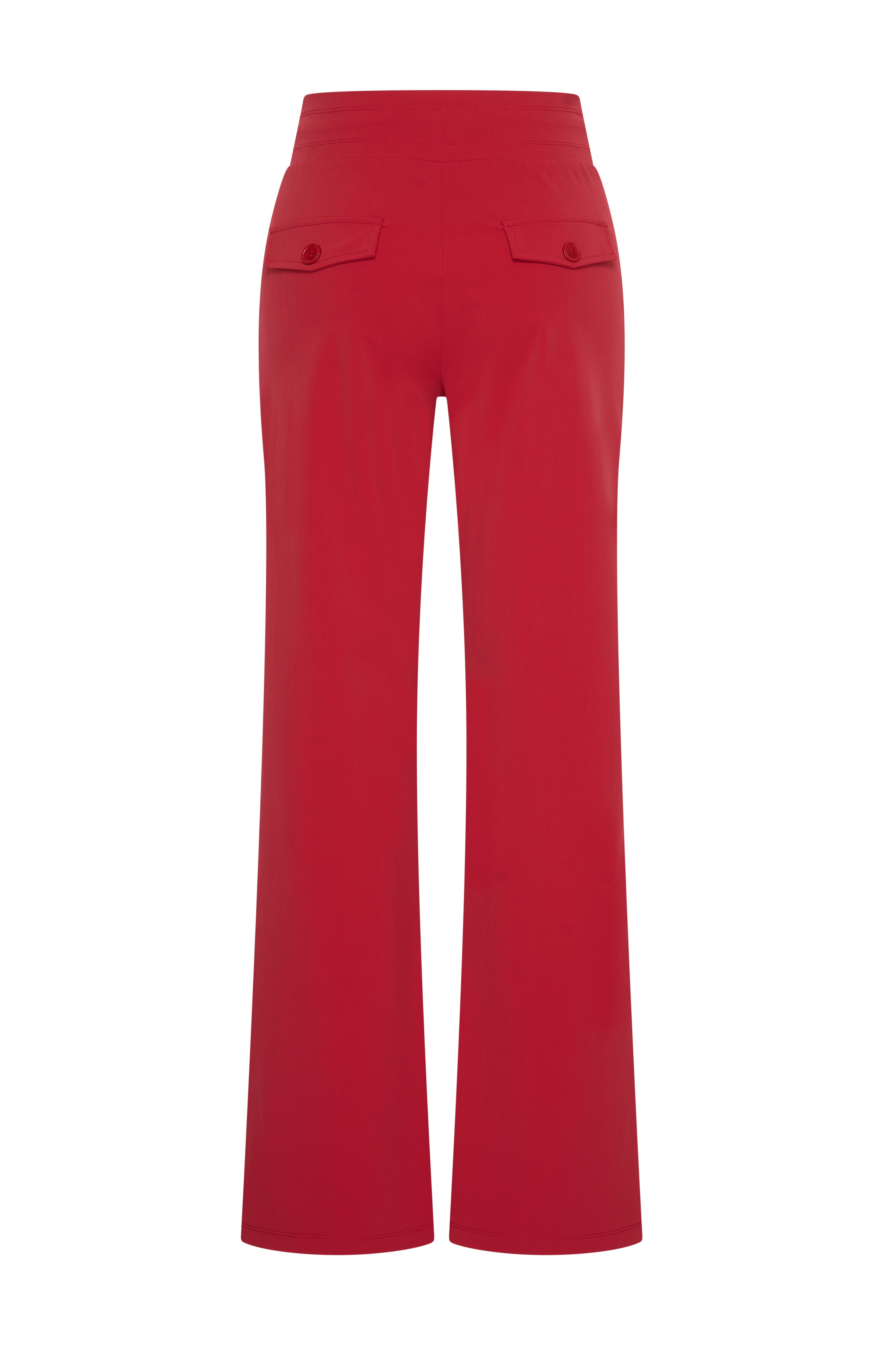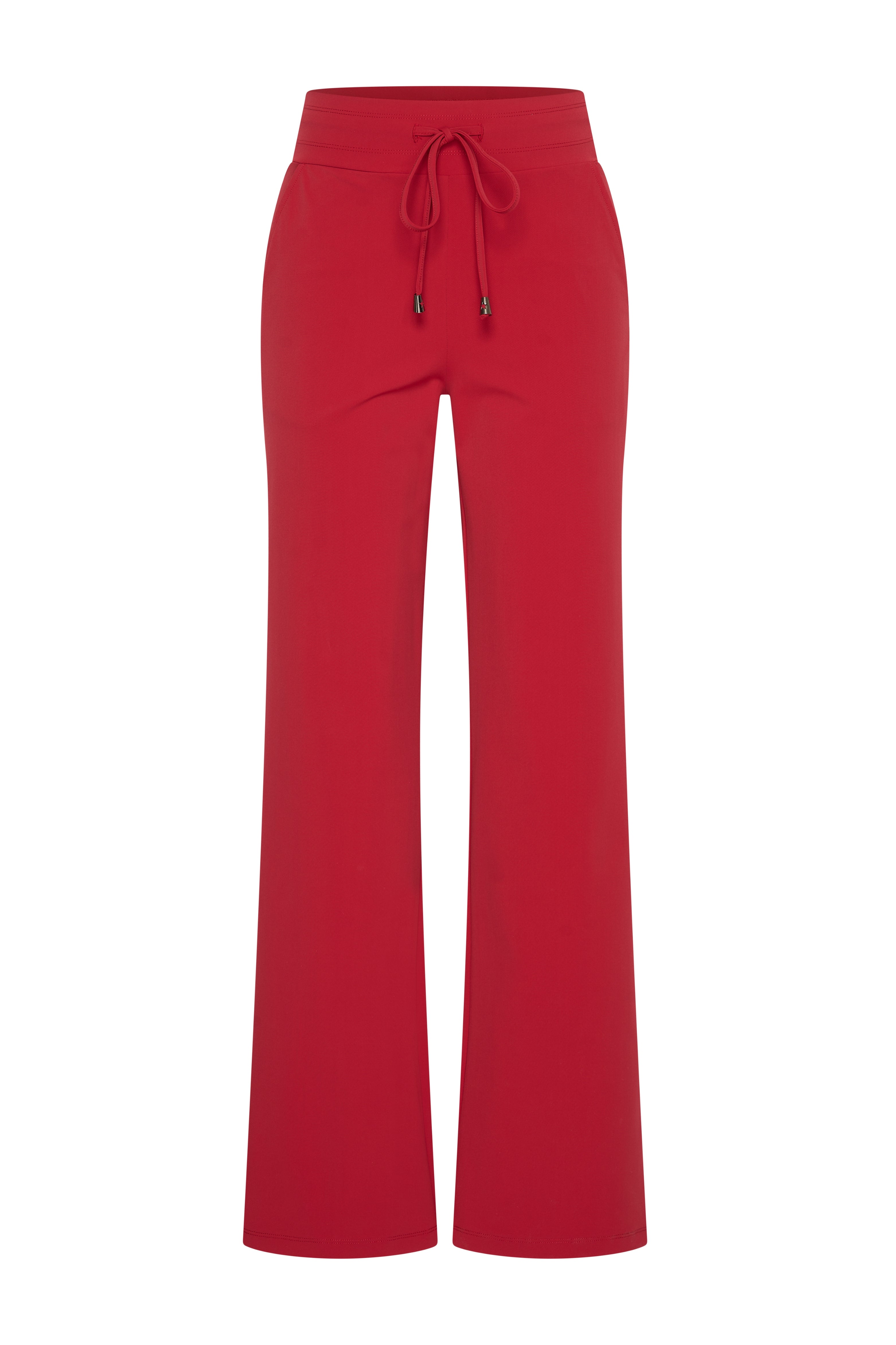 De Heavy Travel Broek Flared Red van Mi Piace combineert comfort met een vrouwelijke look. Het flared model en de hoge taille geven een elegante touch aan elke outfit.