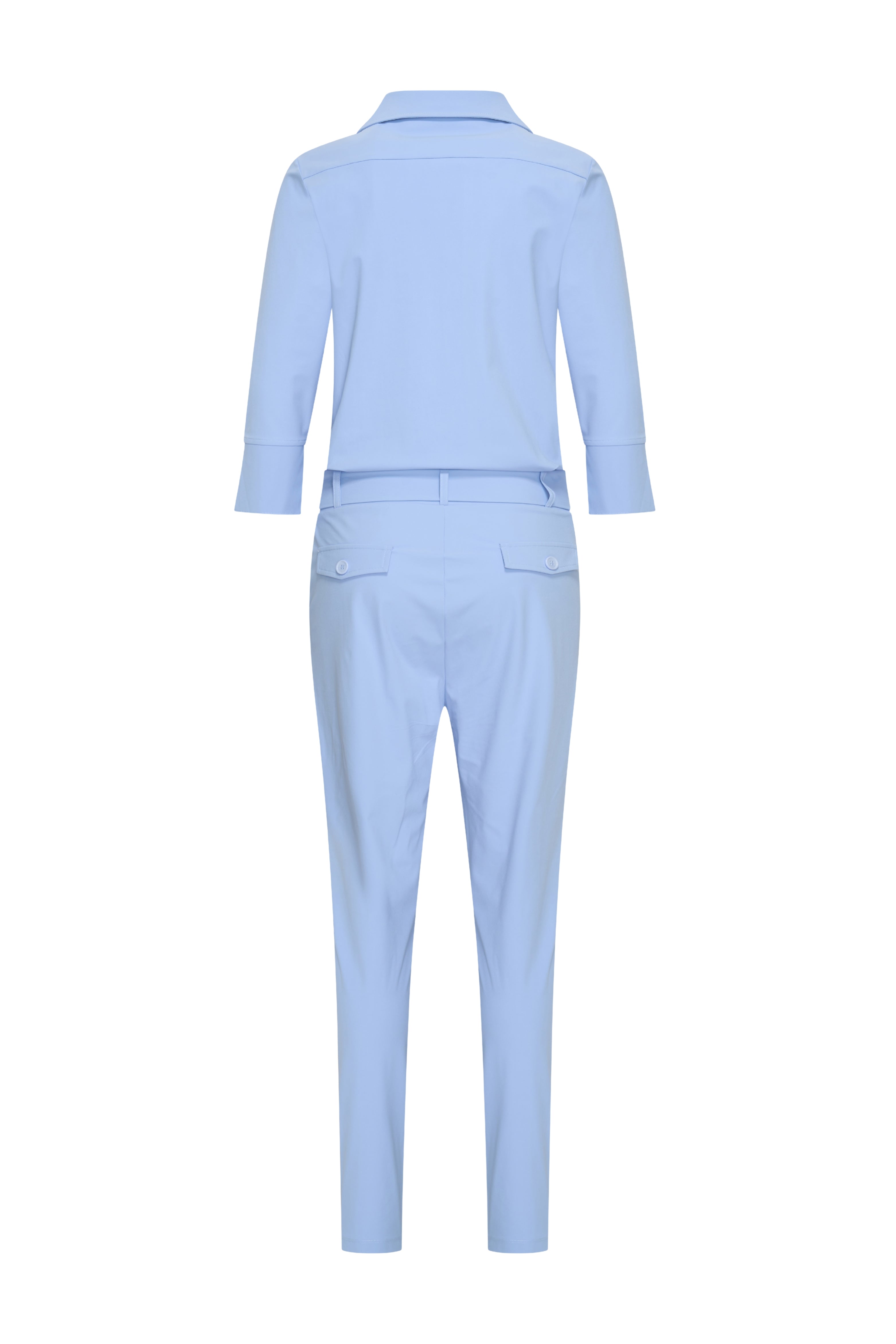 De Heavy Travel Jumpsuit Lavender Blue van Mi Piace is een stijlvolle one-piece met een moderne uitstraling. De zwaardere travelstof voelt comfortabel aan en valt mooi, terwijl de ceintuur in de taille zorgt voor een vrouwelijk en flatterend silhouet. Ideaal voor een moeiteloze en complete outfit.