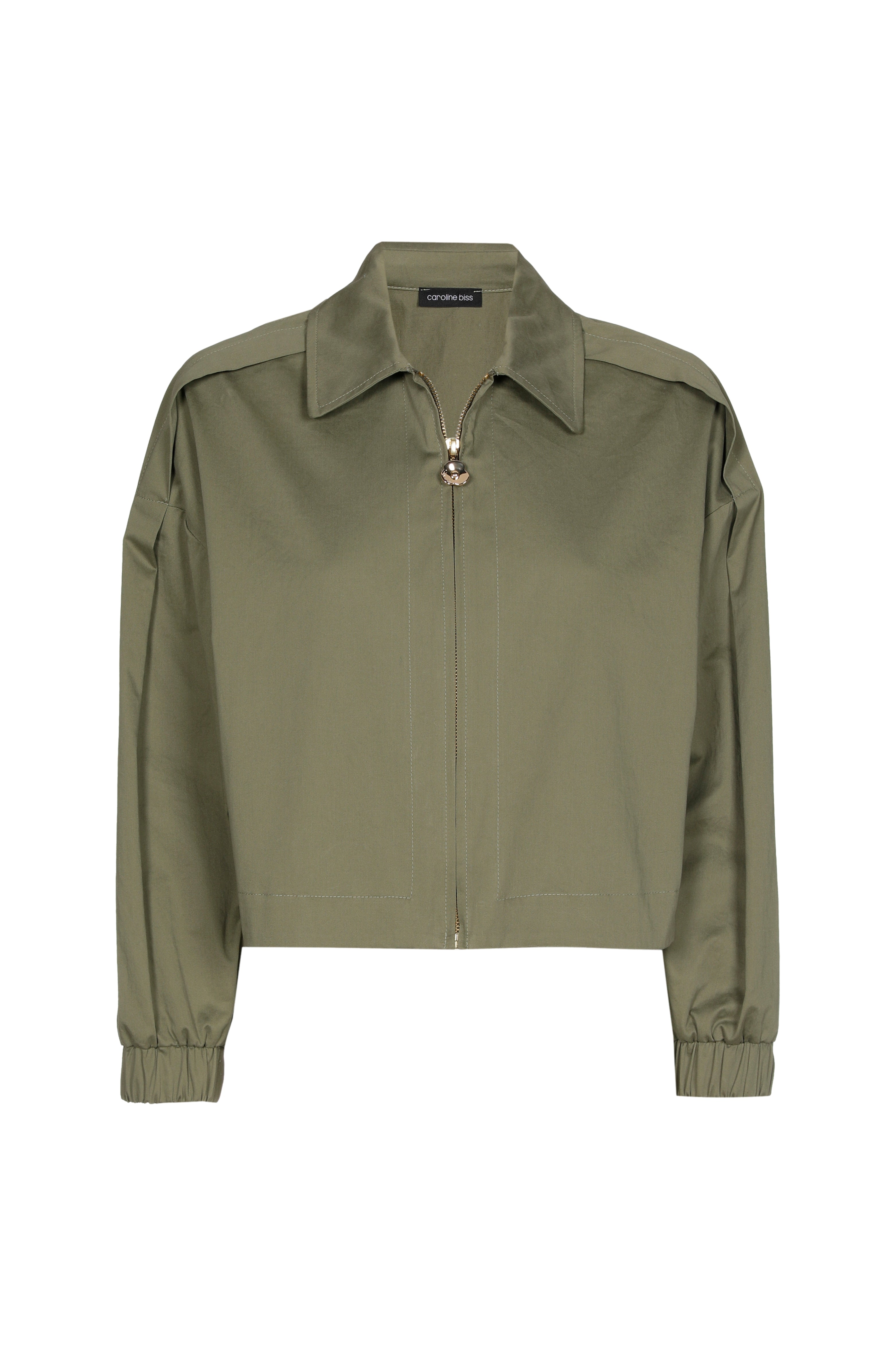 De Jacket Bomber Khaki van Caroline Biss is een stoere blazer met klassieke kraag en ritssluiting. De elastische boorden en rechte pasvorm geven comfort en een moderne look. Perfect voor alledaagse outfits.
