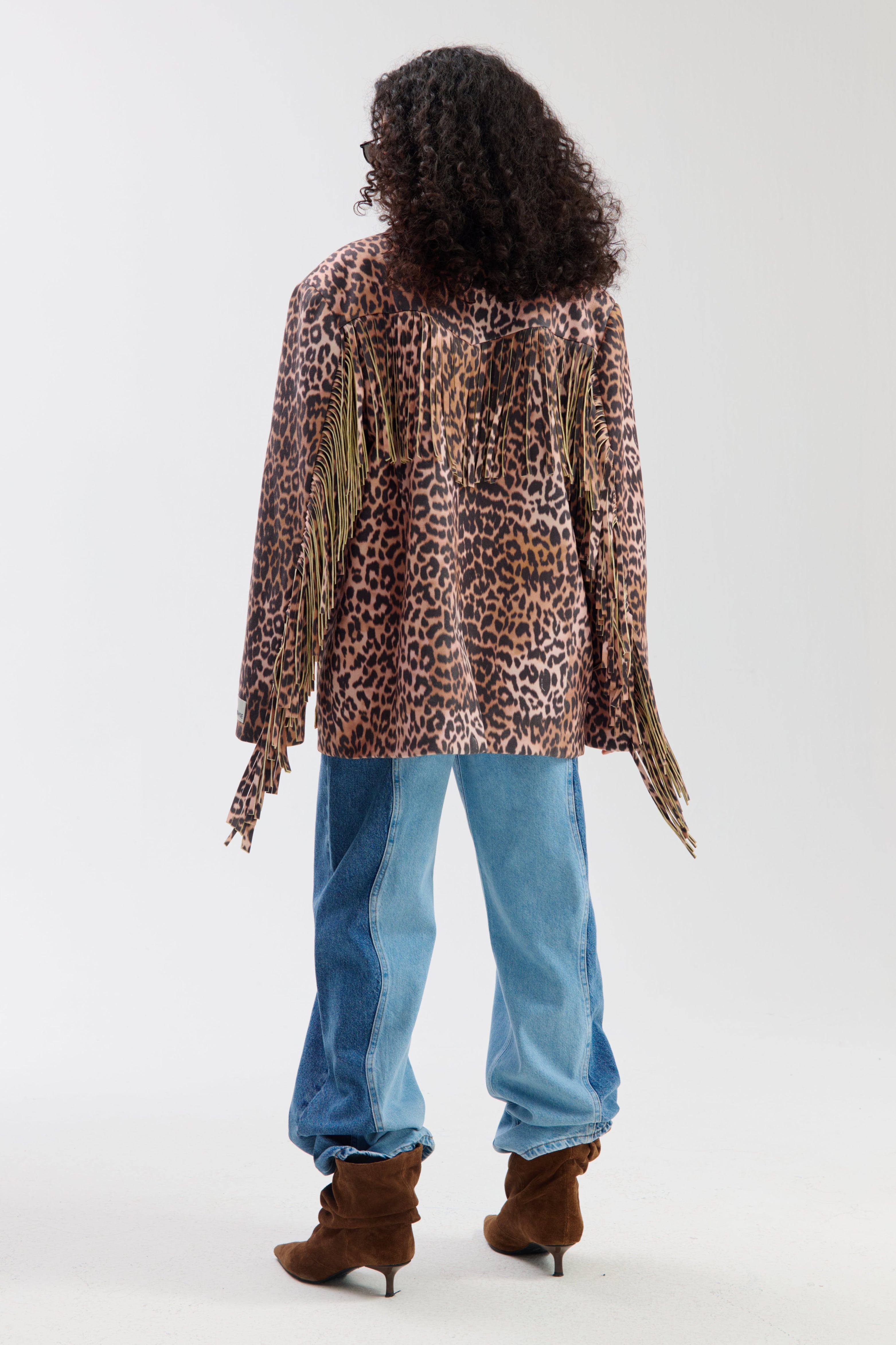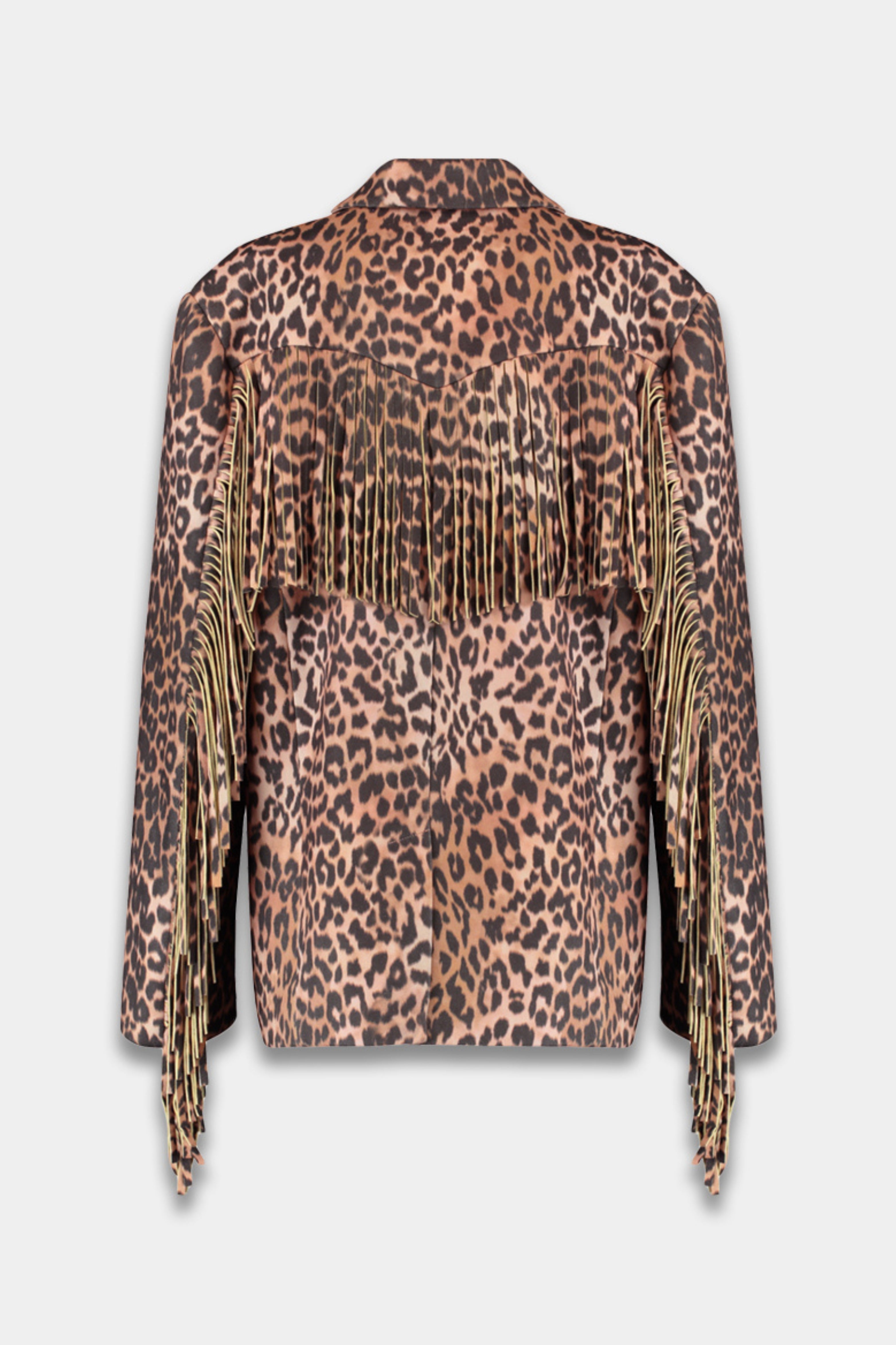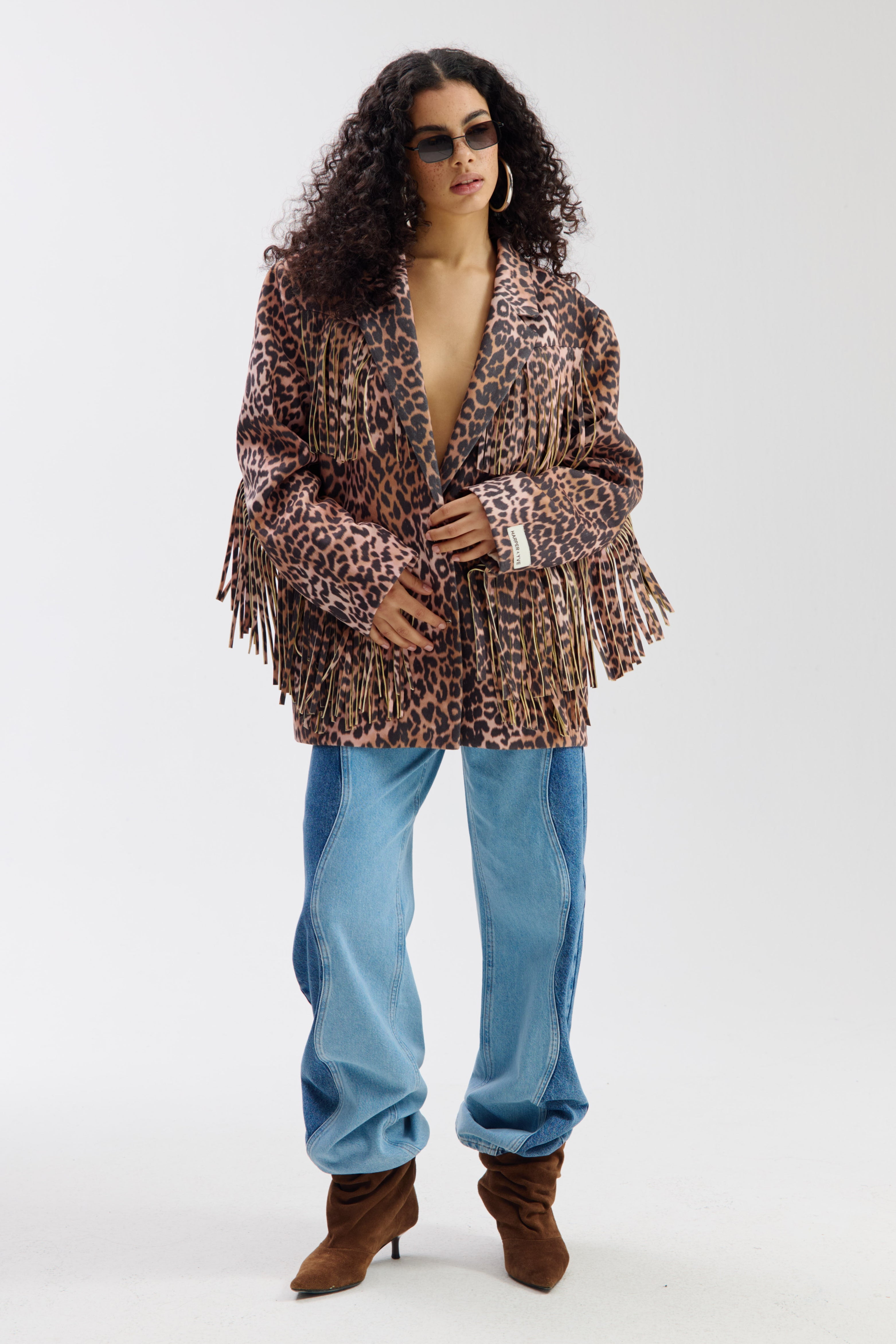 De Jacket Casey Lexie Leopard van Harper & Yve is een opvallend jasje met leopardprint en speelse franjes langs borst, rug en mouwen. De stoere details en opvallende print geven het item een modieuze uitstraling.