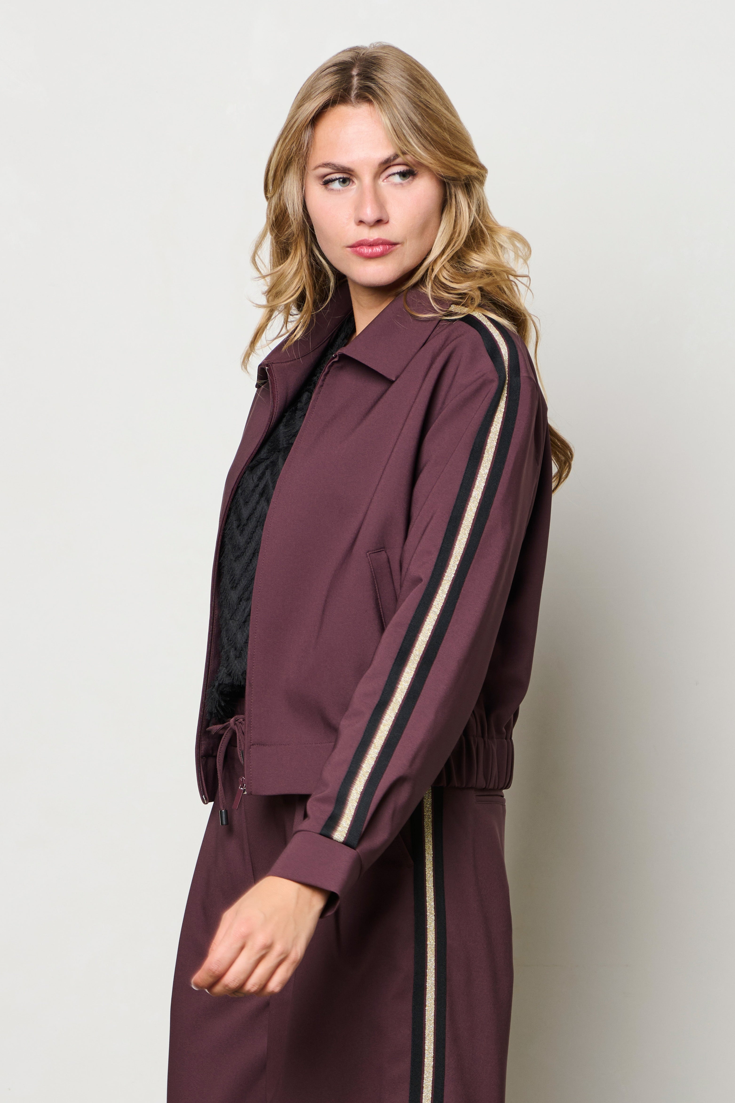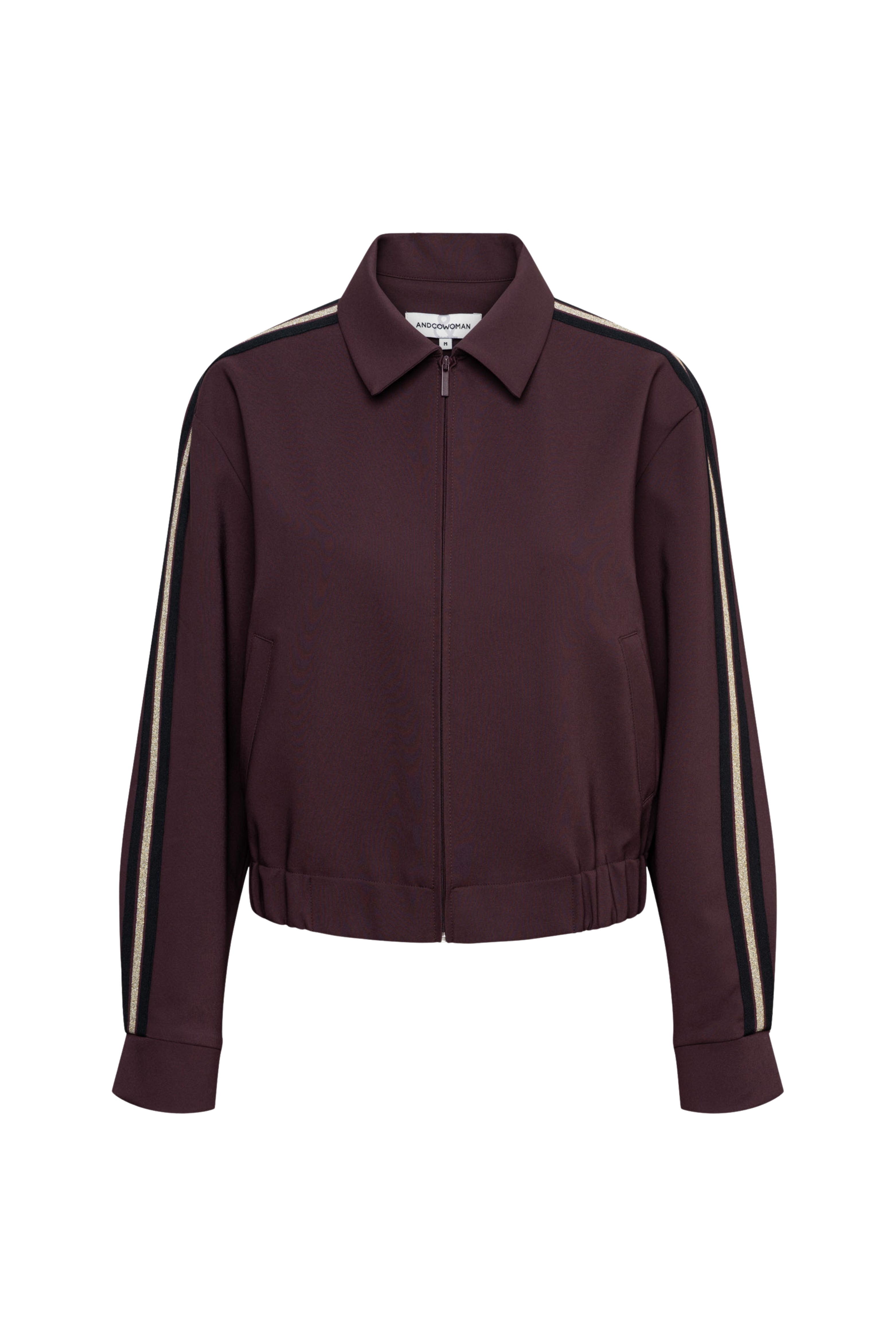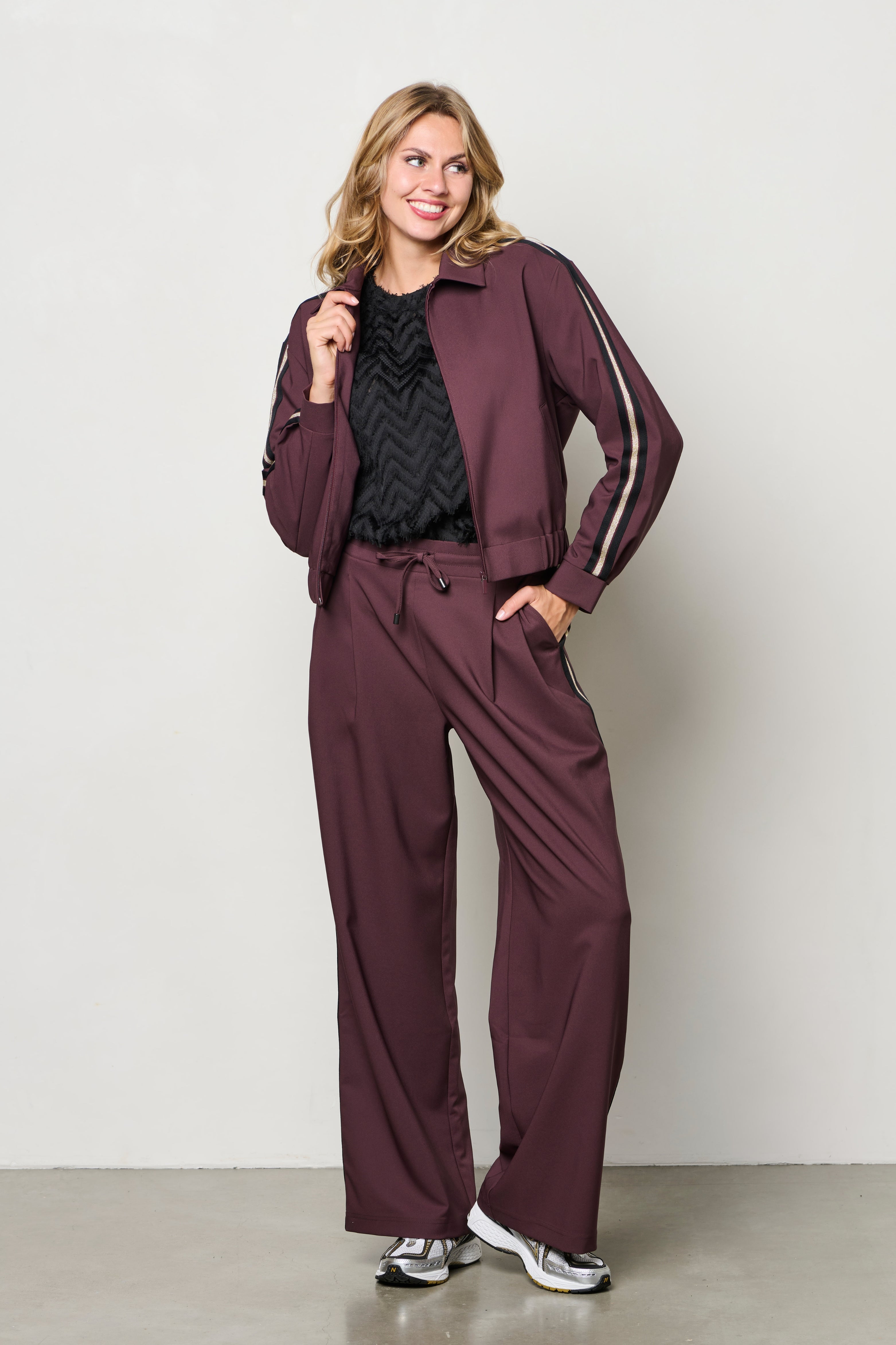 Het Jacket Faith Aubergine van &Co Woman is een sportief jasje in comfortabele travelkwaliteit. Met stijlvolle strepen op de mouwen en ritssluiting. Draag als set met de bijpassende travel pants of casual met jeans.