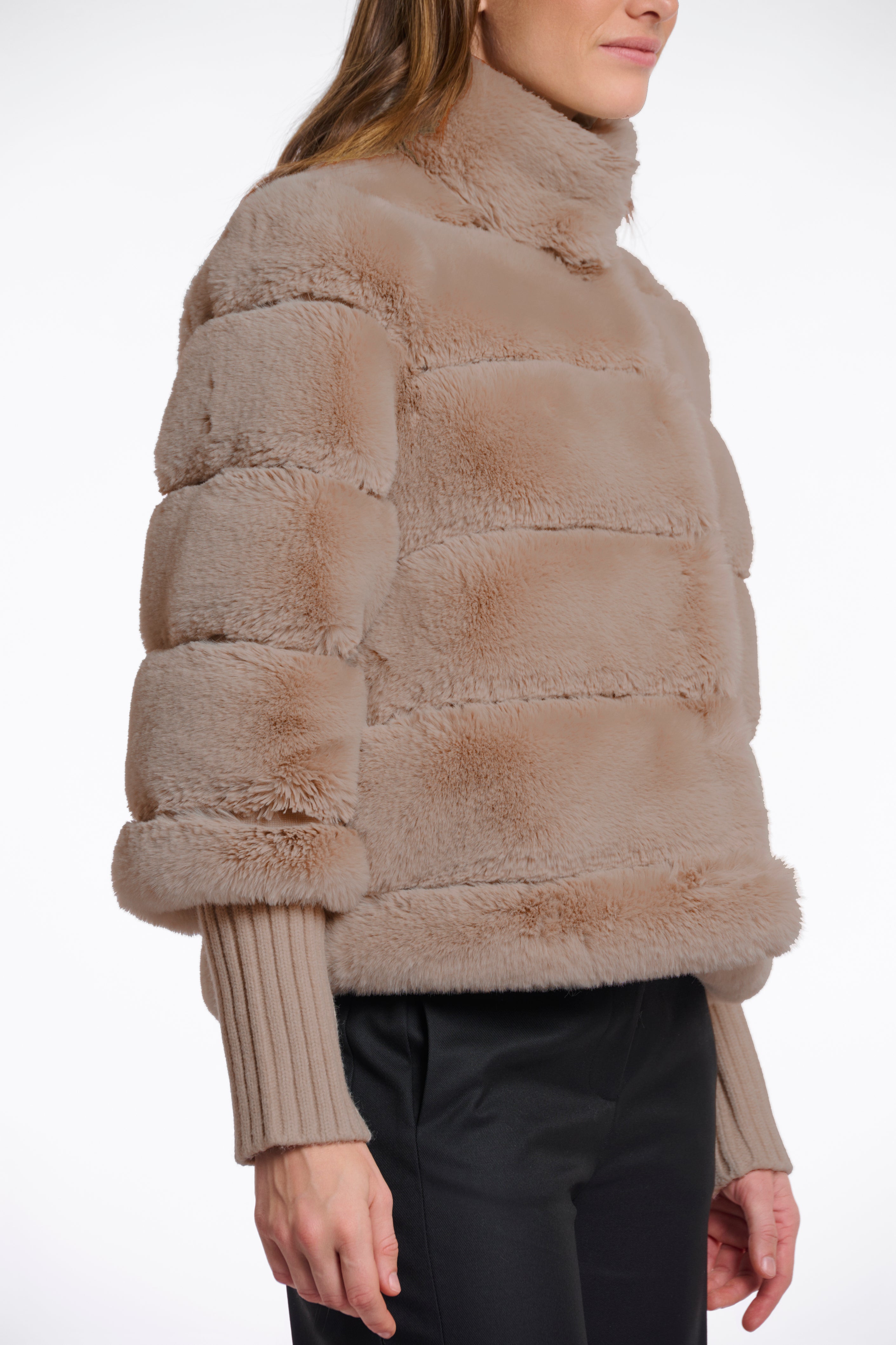 • Materiaal: Faux fur: 100% Polyester | PU: 100% Polyester | Coating: 100% PU; Knit sleeves: 40% Polyester, 20% Merino Wool, 20% Nylon, 20% Acrylic | Voering: 100% Polyester