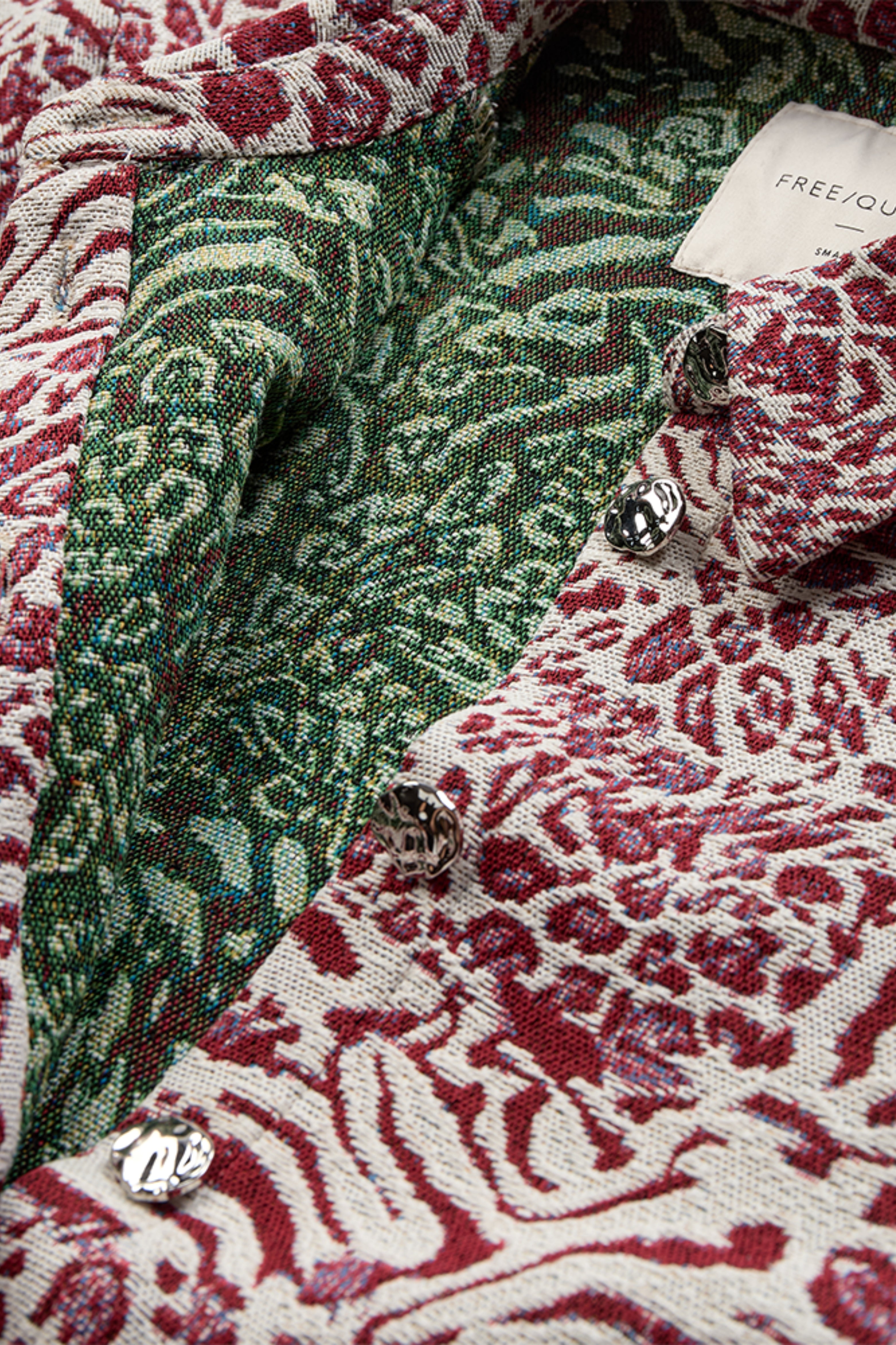 Het Fqjady Moonbeam Port Royale jacket van Freequent is een echte eyecatcher. Uitgevoerd in een speelse dierenprint in roodtinten op een lichte basis, met rechte pasvorm en klassieke kraag. Perfect te combineren met een basic top of lichte trui.