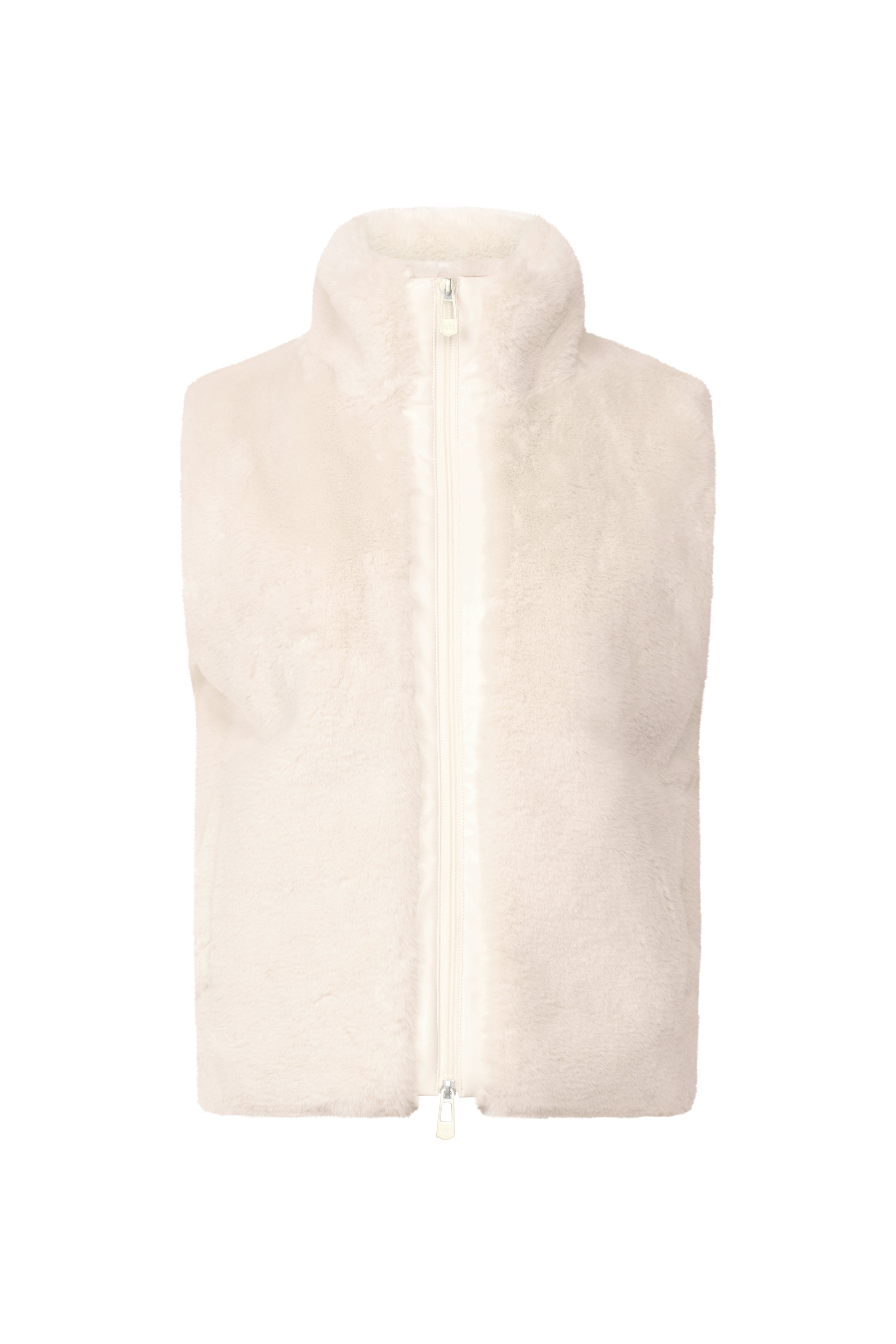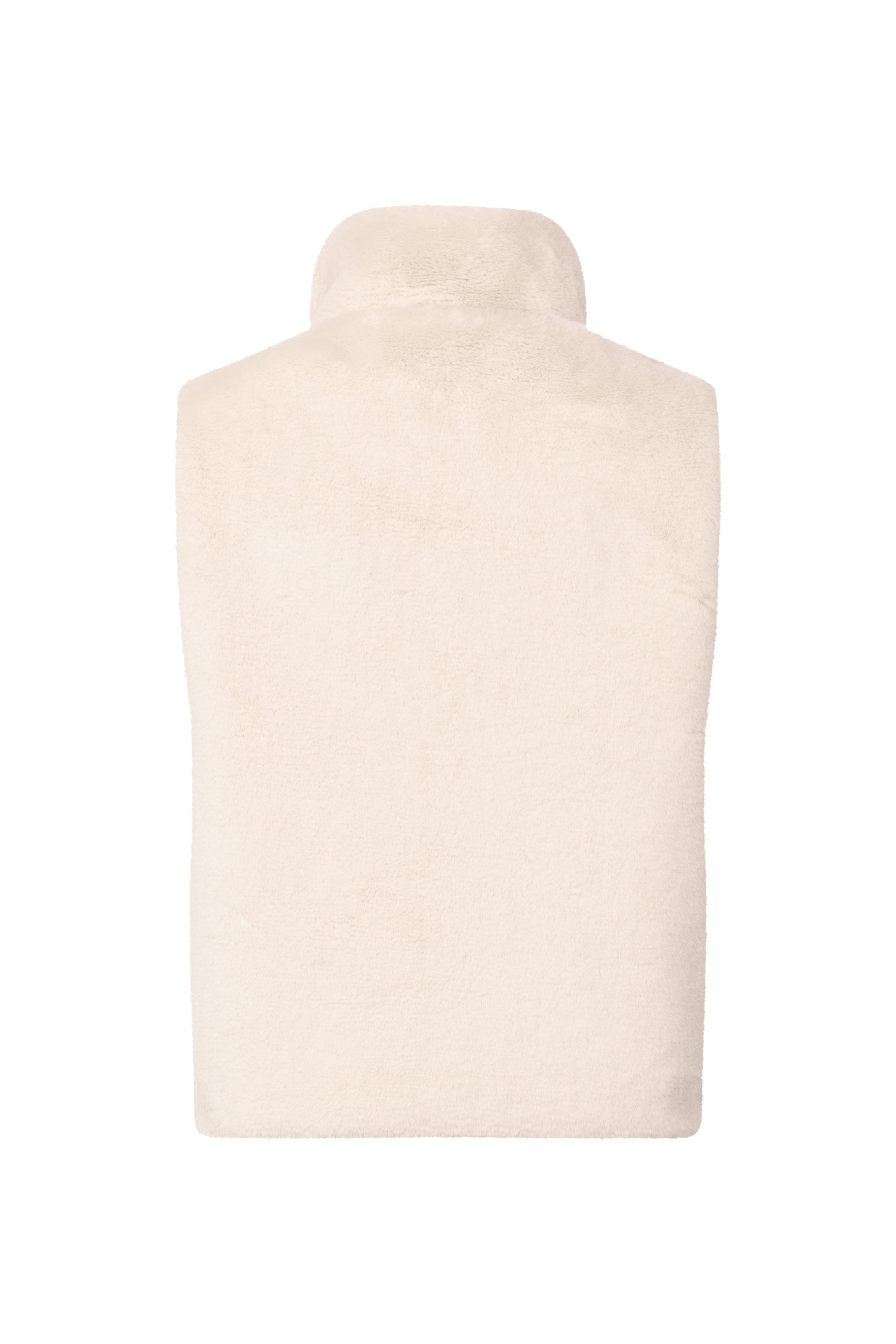 De Jacket Isabel Offwhite van Zoso is een zachte, mouwloze jas in luxe teddykwaliteit. Voorzien van een opstaande kraag, ritssluiting en steekzakken voor een casual-chique look.
