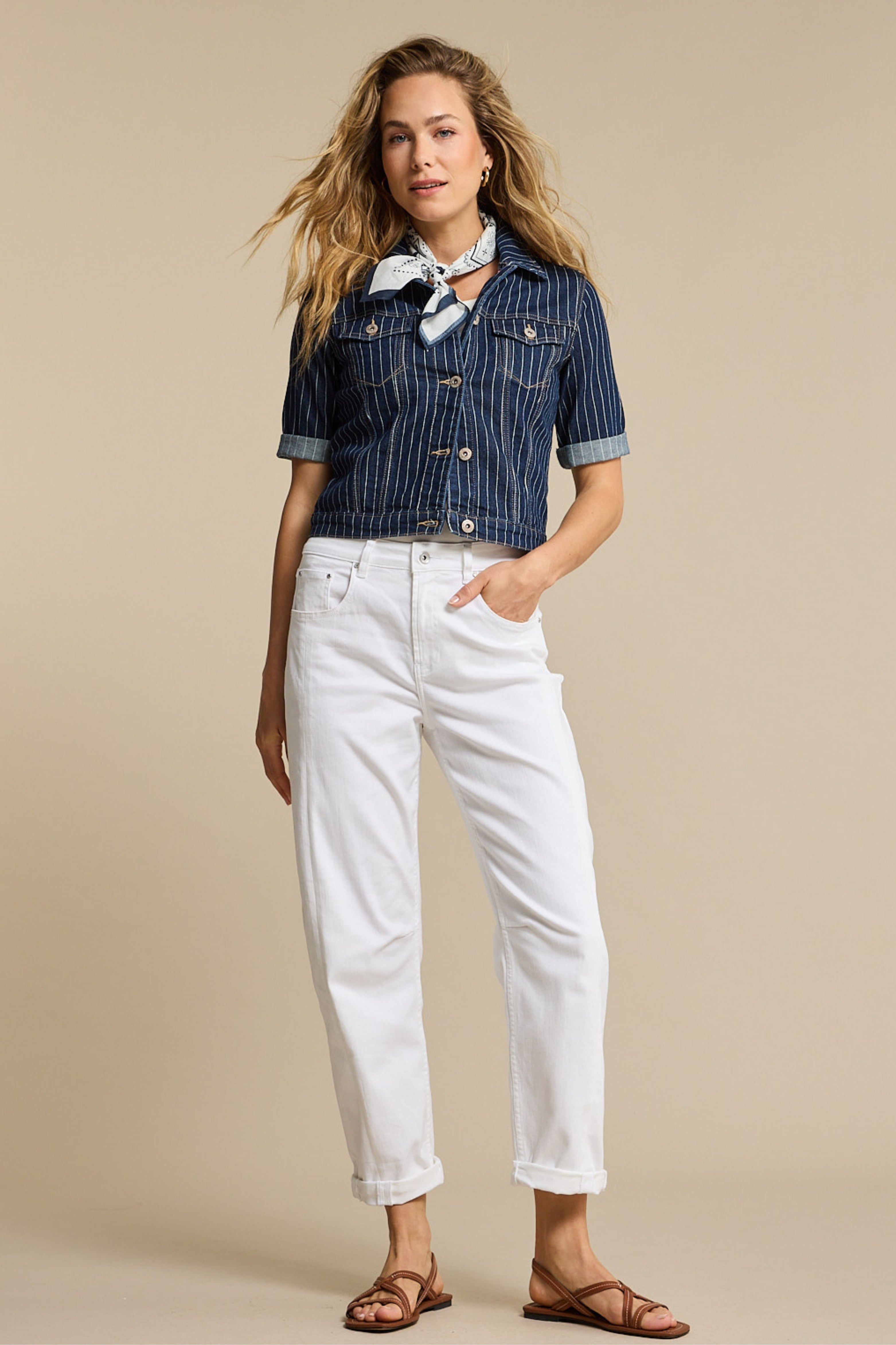 Jacket Jackie Short Sleeve Denim Stripe Rinse SRB4835