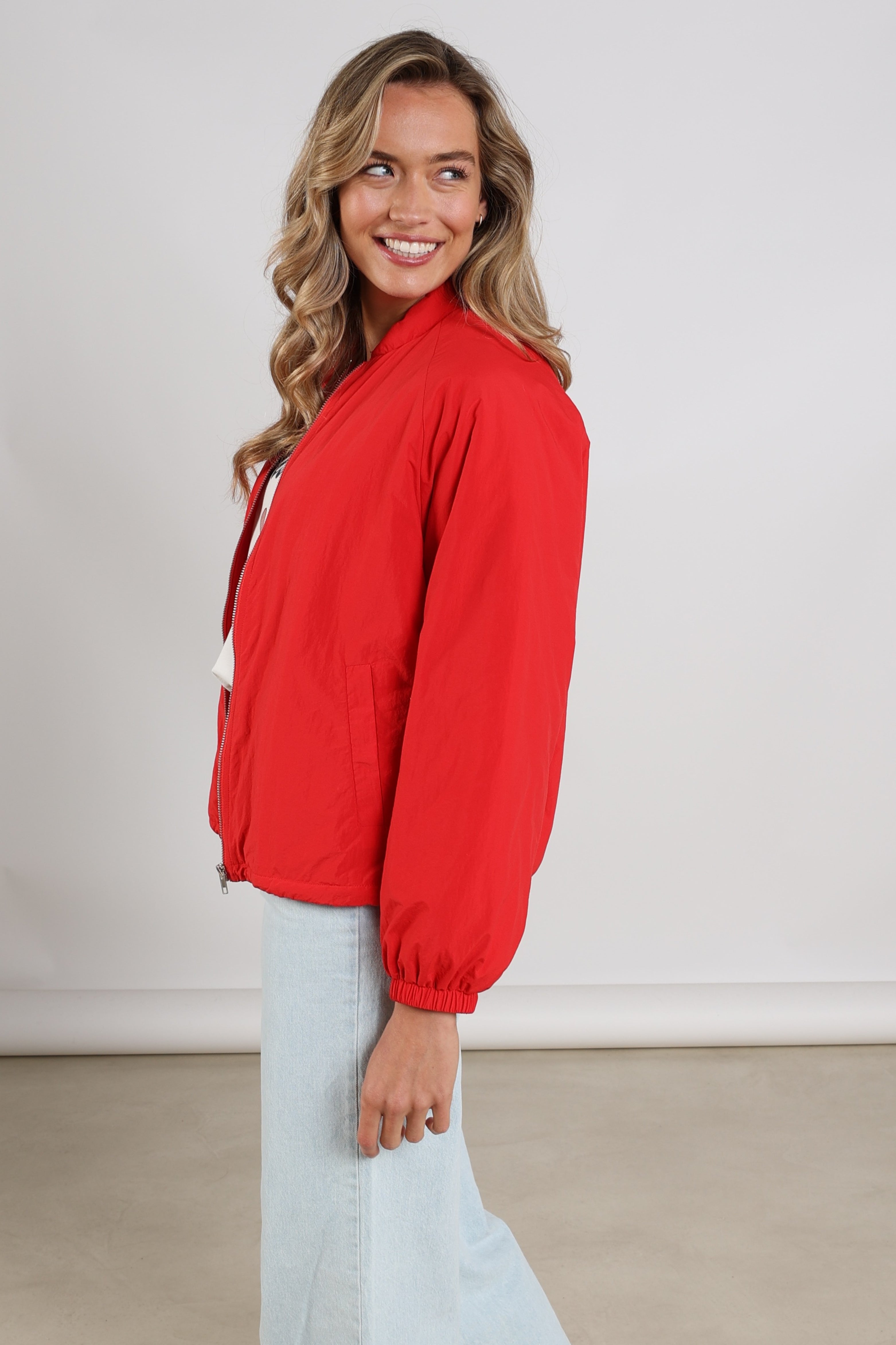 De Jacket Jenny Kiss van Nukus is een sportieve blazer/jack met opstaande kraag. Lichtgewicht stof en ritssluiting met geribde boorden geven een preppy, moderne look. Perfect voor casual dagen en weekend.