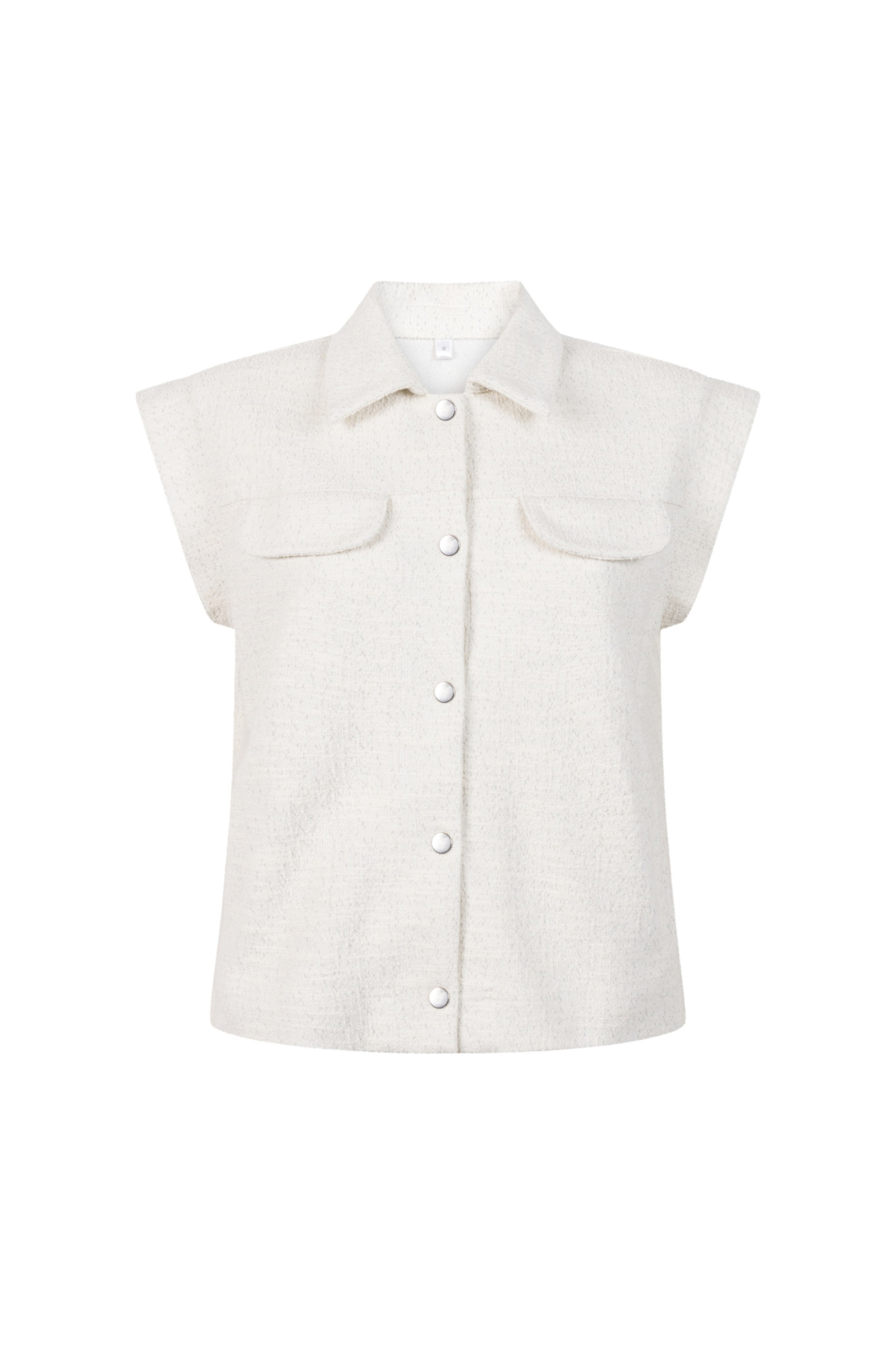 De Jacket Josine Offwhite 251 van het merk Zoso is een stijlvolle mouwloze jas, perfect voor het voorjaar of als laagje over een outfit. Uitgevoerd in een zachte offwhite tint, heeft deze jas een moderne en elegante uitstraling.