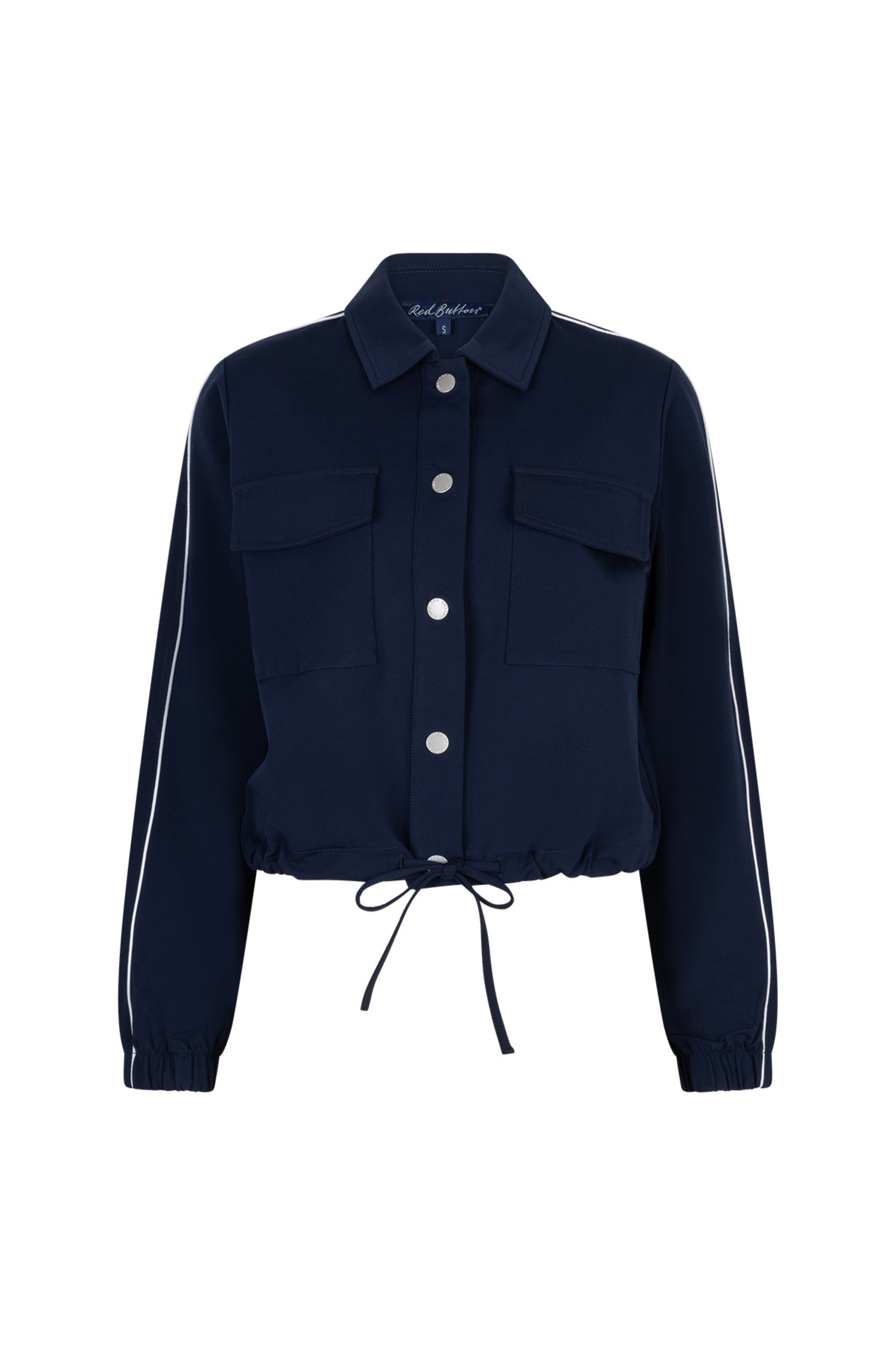 Het Jacket Juno Punta Dark Blue van Red Button is een korte jas met kraag, drukknopen en klepzakken. Dankzij de trekkoordzoom en sportieve bies langs de mouwen creëer je makkelijk een moderne look.