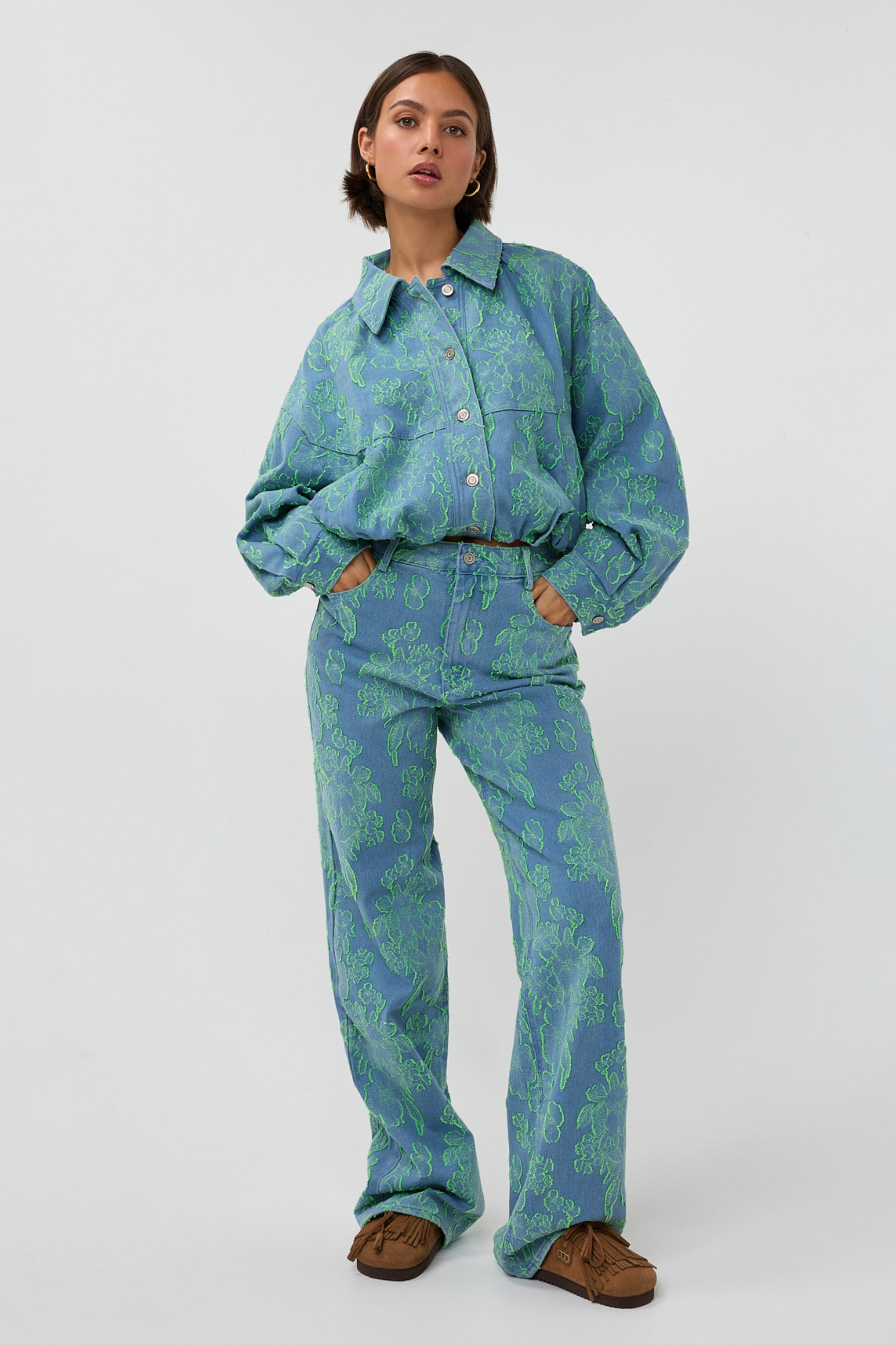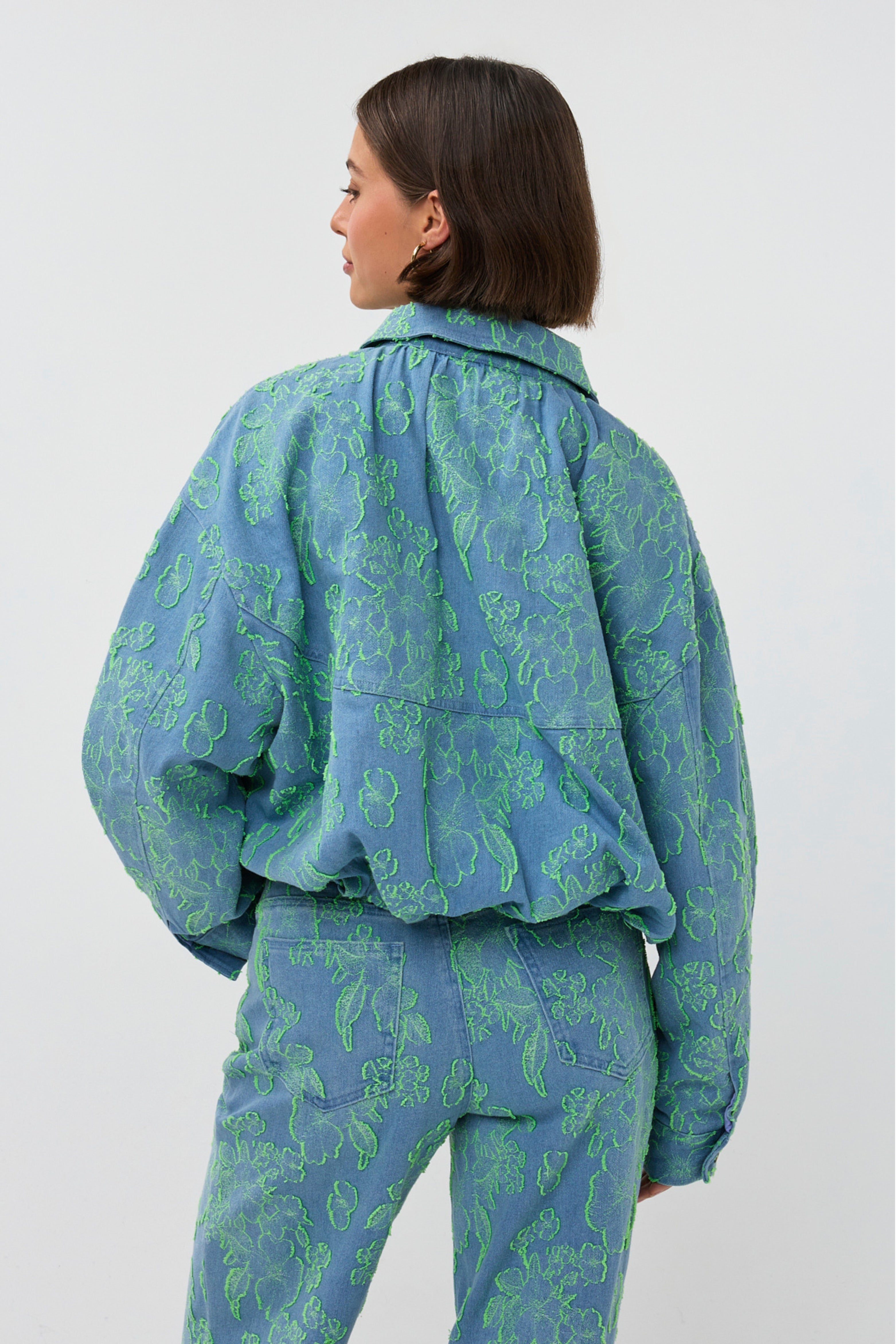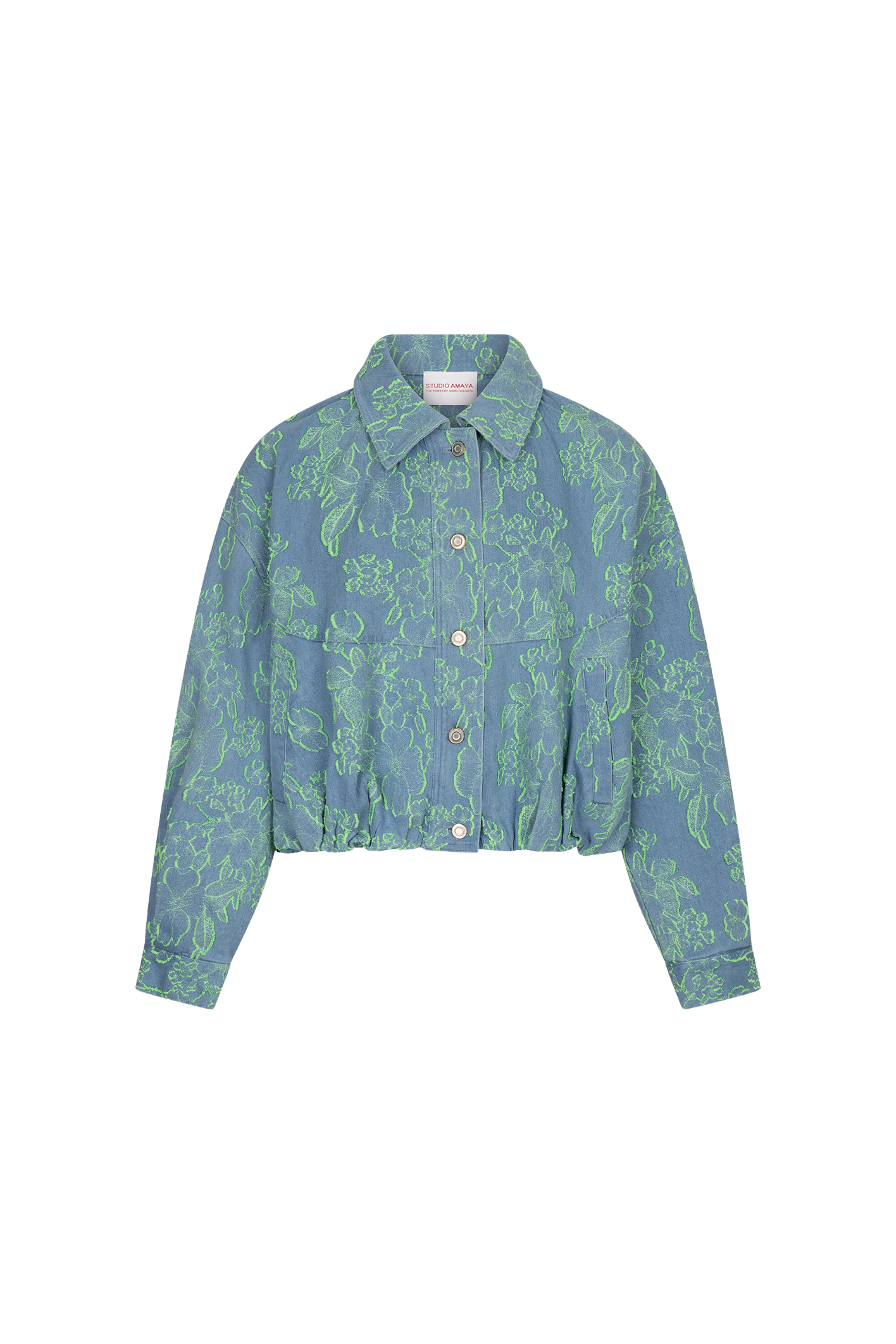De Jacket Layla Lime van Studio Amaya is een lichtblauwe denim jas met opvallende limekleurige bloemen. De opvallende print en de moderne pasvorm geven iedere look een speelse, trendy uitstraling.