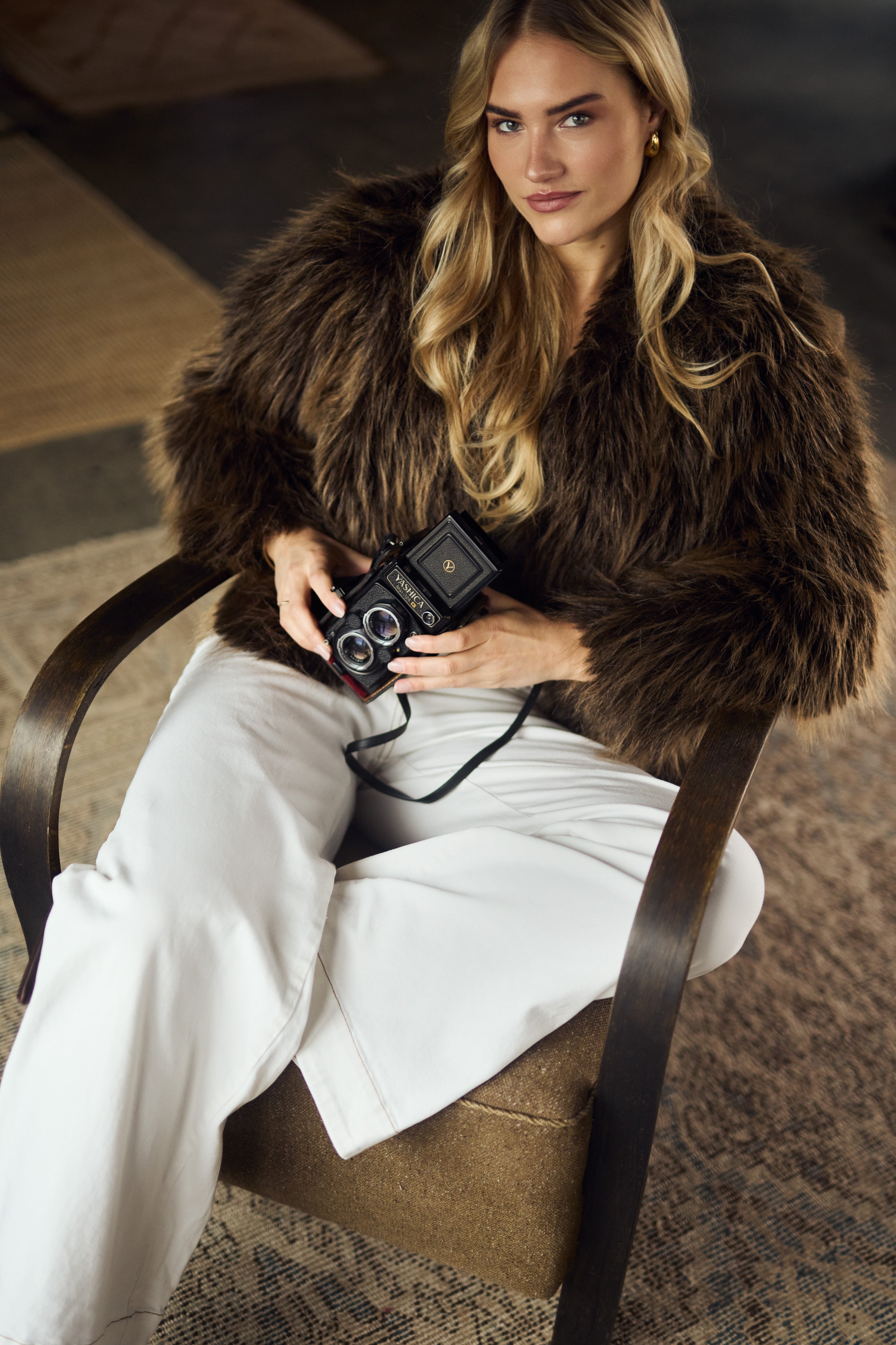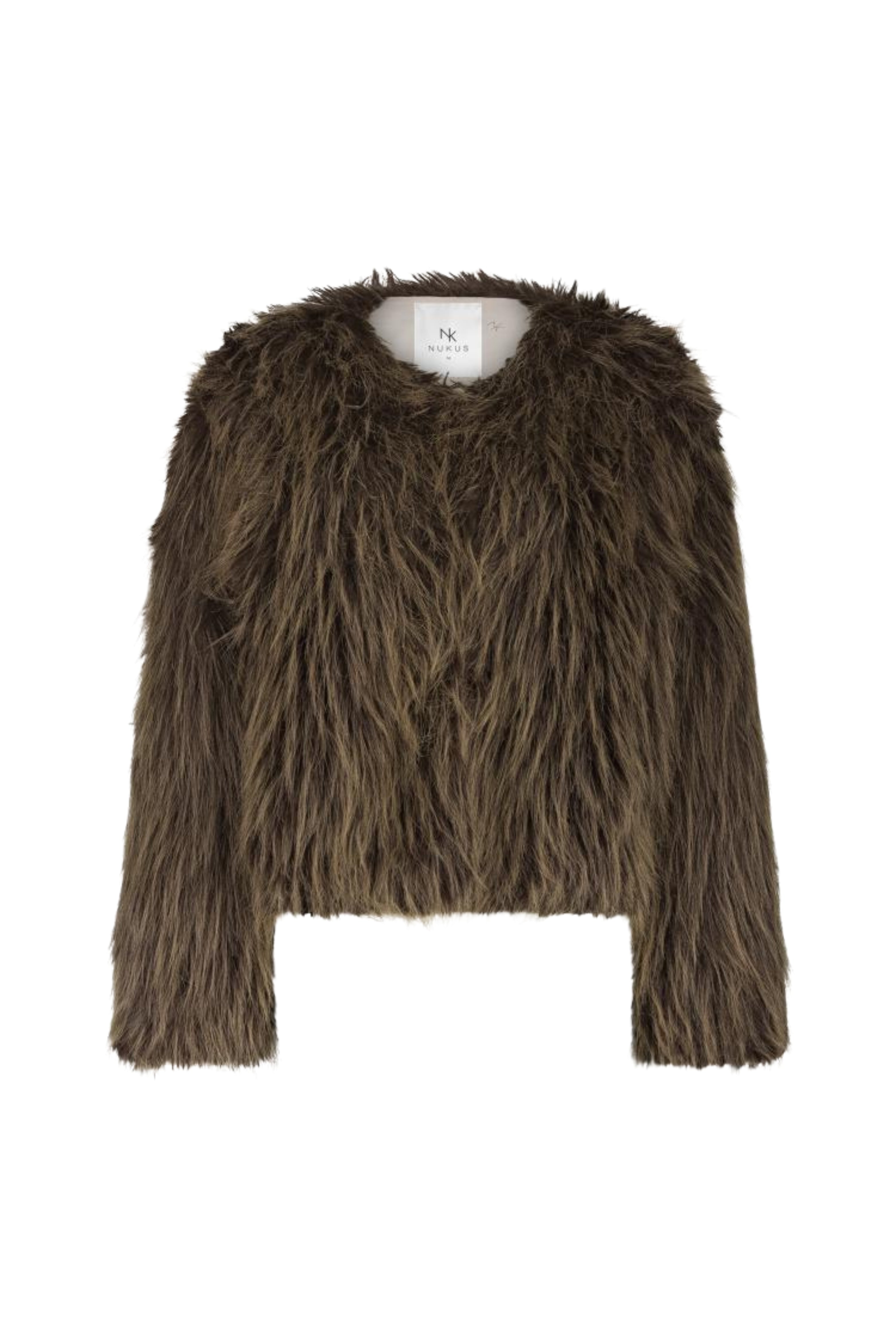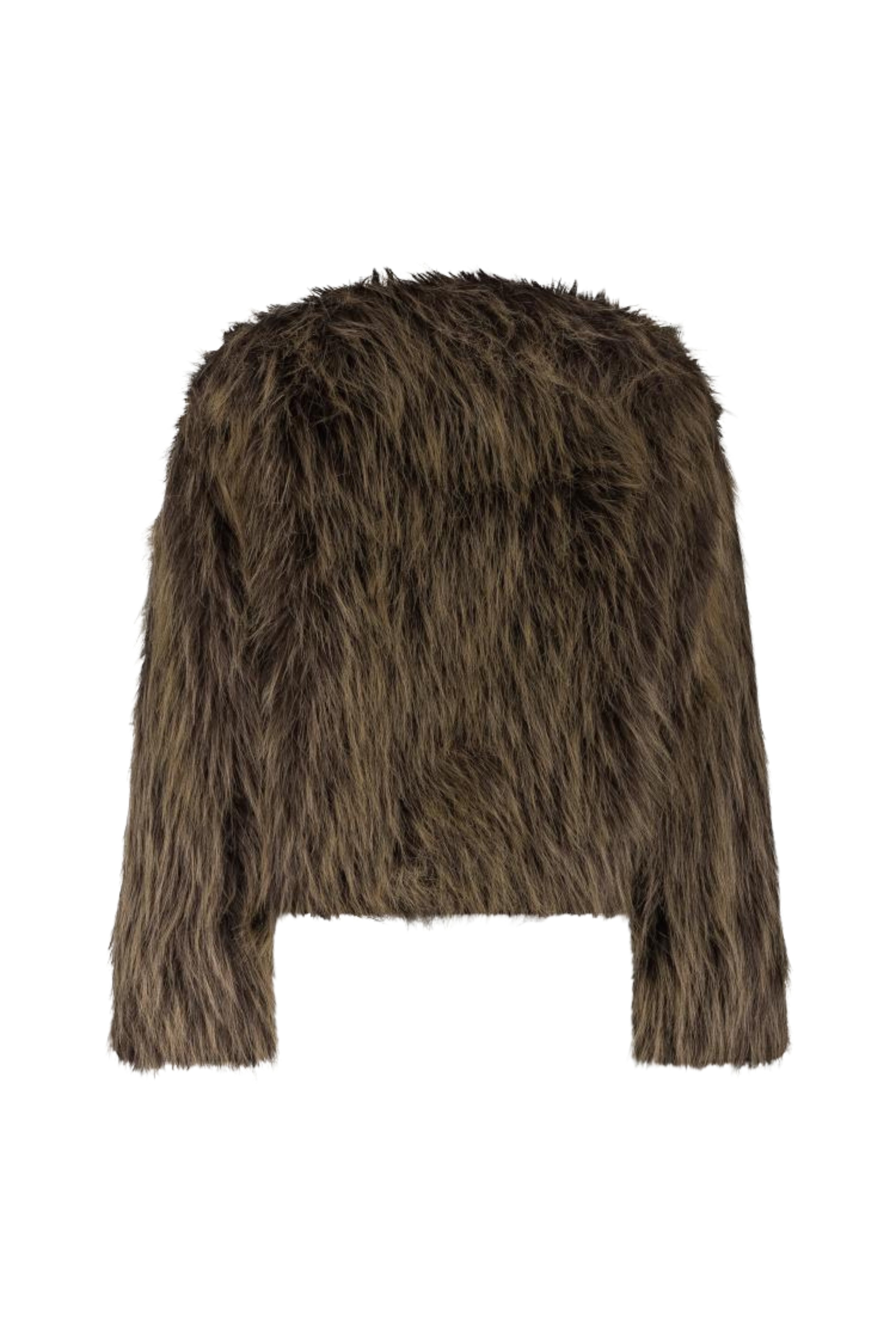 De Jacket Lori Fango van Nukus is een statement jas met een luxueuze faux fur look. Het model heeft een korte, boxy pasvorm die warmte en stijl combineert. Perfect om jouw outfit direct een fashionable touch te geven.