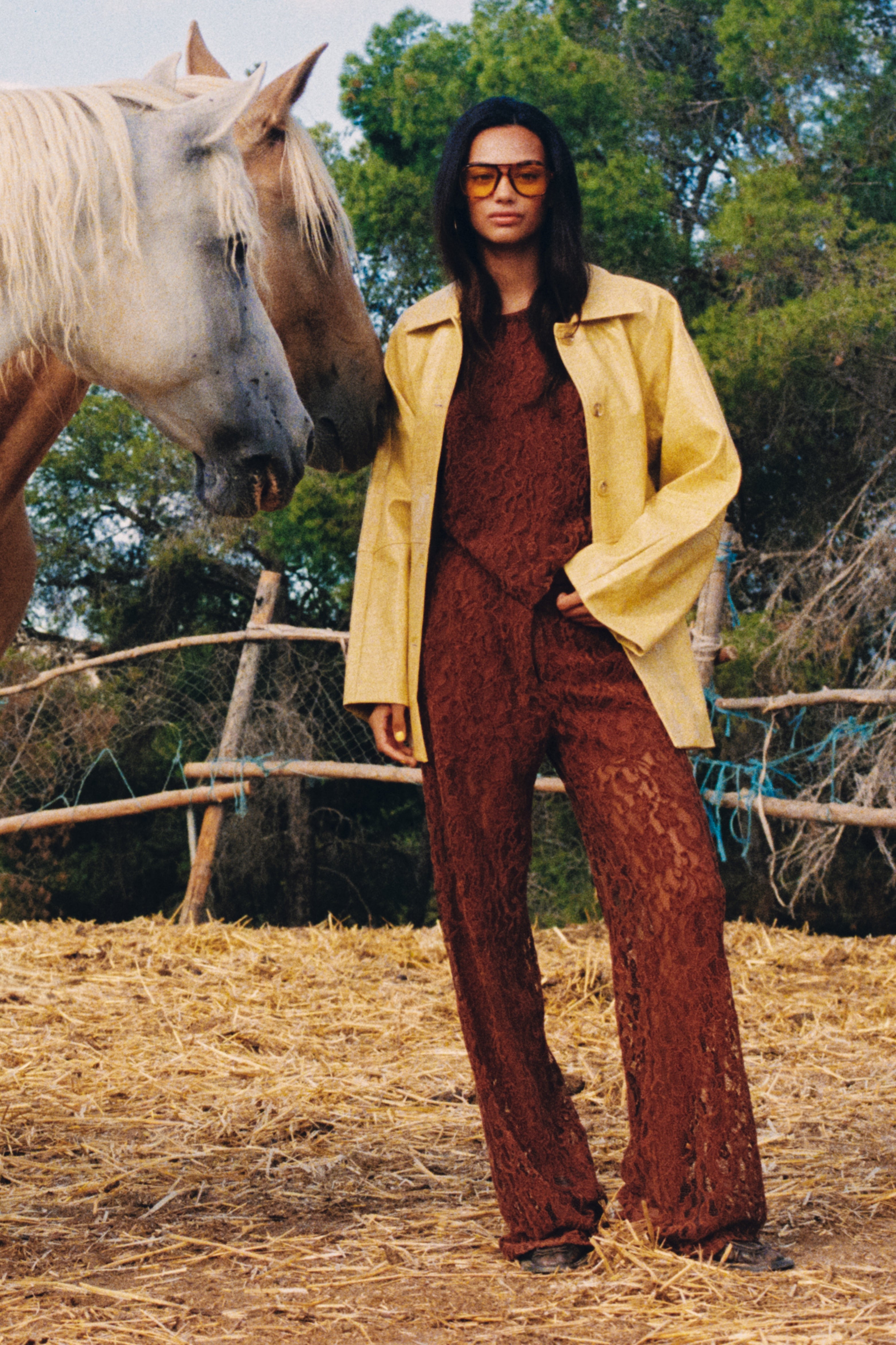 • Het ecom model is 174 cm, het campagne model is 172 cm, beiden dragen maat S