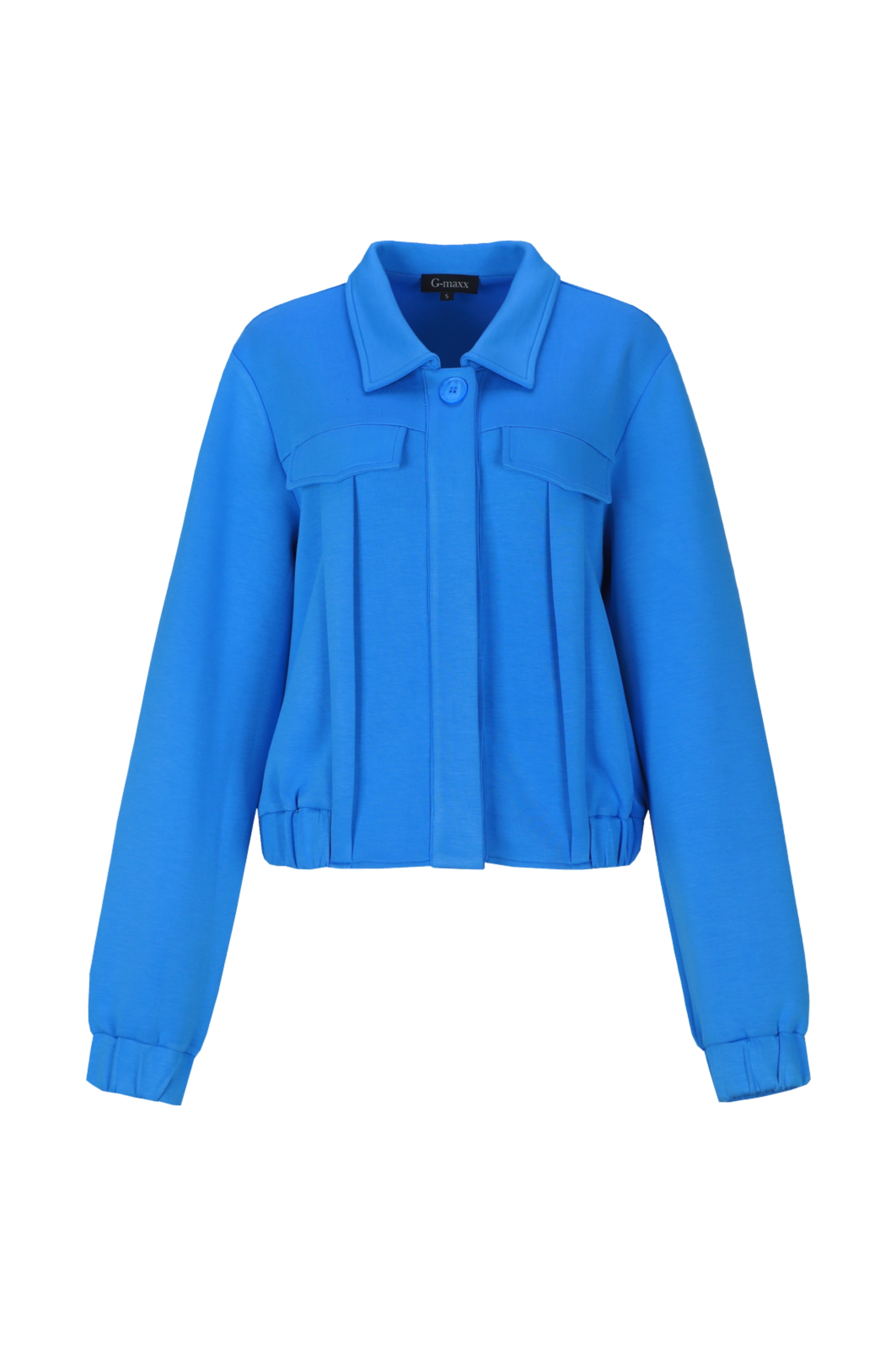De Jacket Monroe Celestial Blue van G-Maxx is een zachte, sportieve jas met klassieke kraag en lange mouwen. Rechte fit met cleane knoopsluiting en klepzakken. Perfect voor casual dagen in het voorjaar.