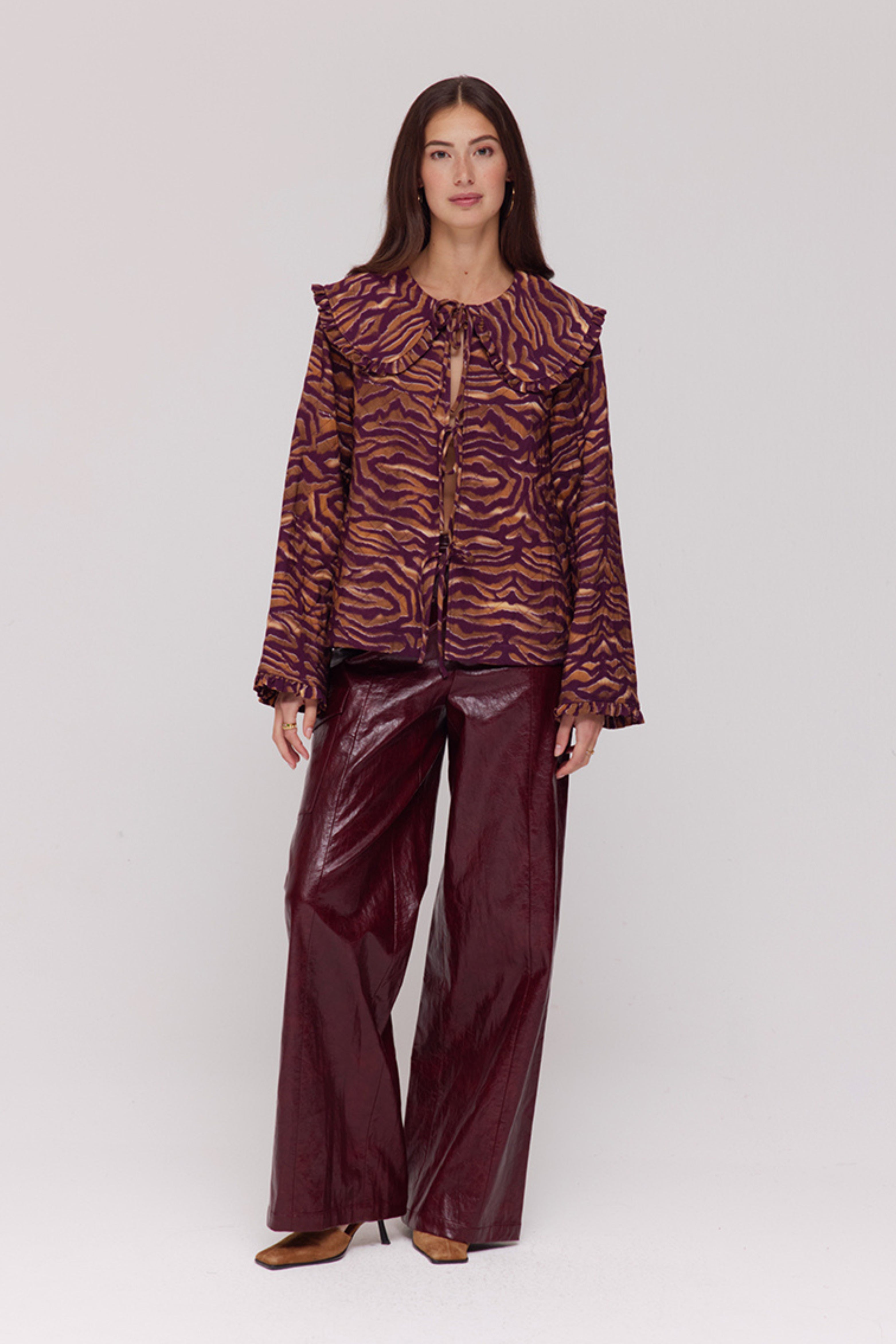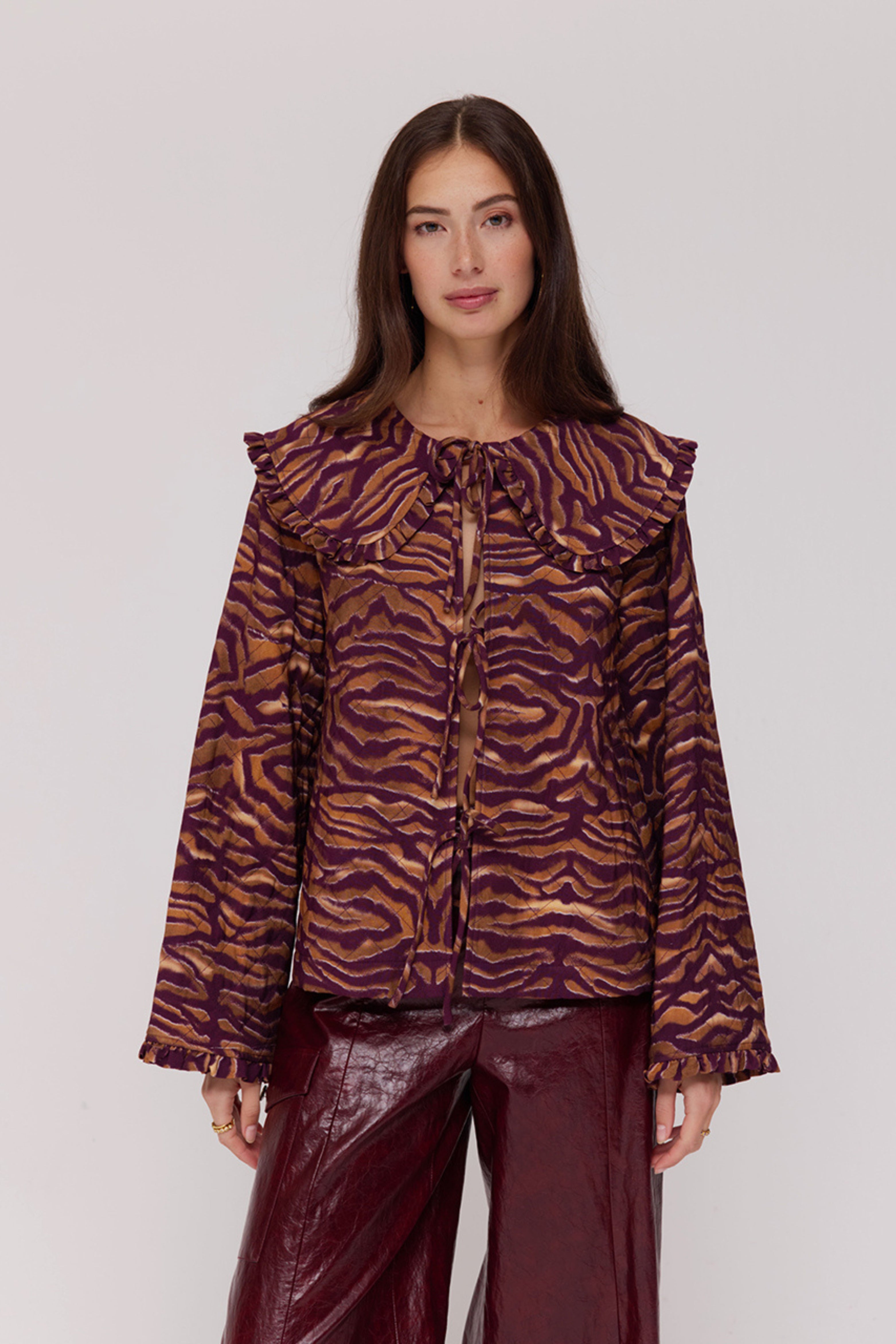 Jacket Robbin Trashy Tiger van Harper & Yve is een opvallende blouse-jacket met speelse tijgerprint. De striksluiting en oversized kraag geven het item een unieke, vintage-chic uitstraling.