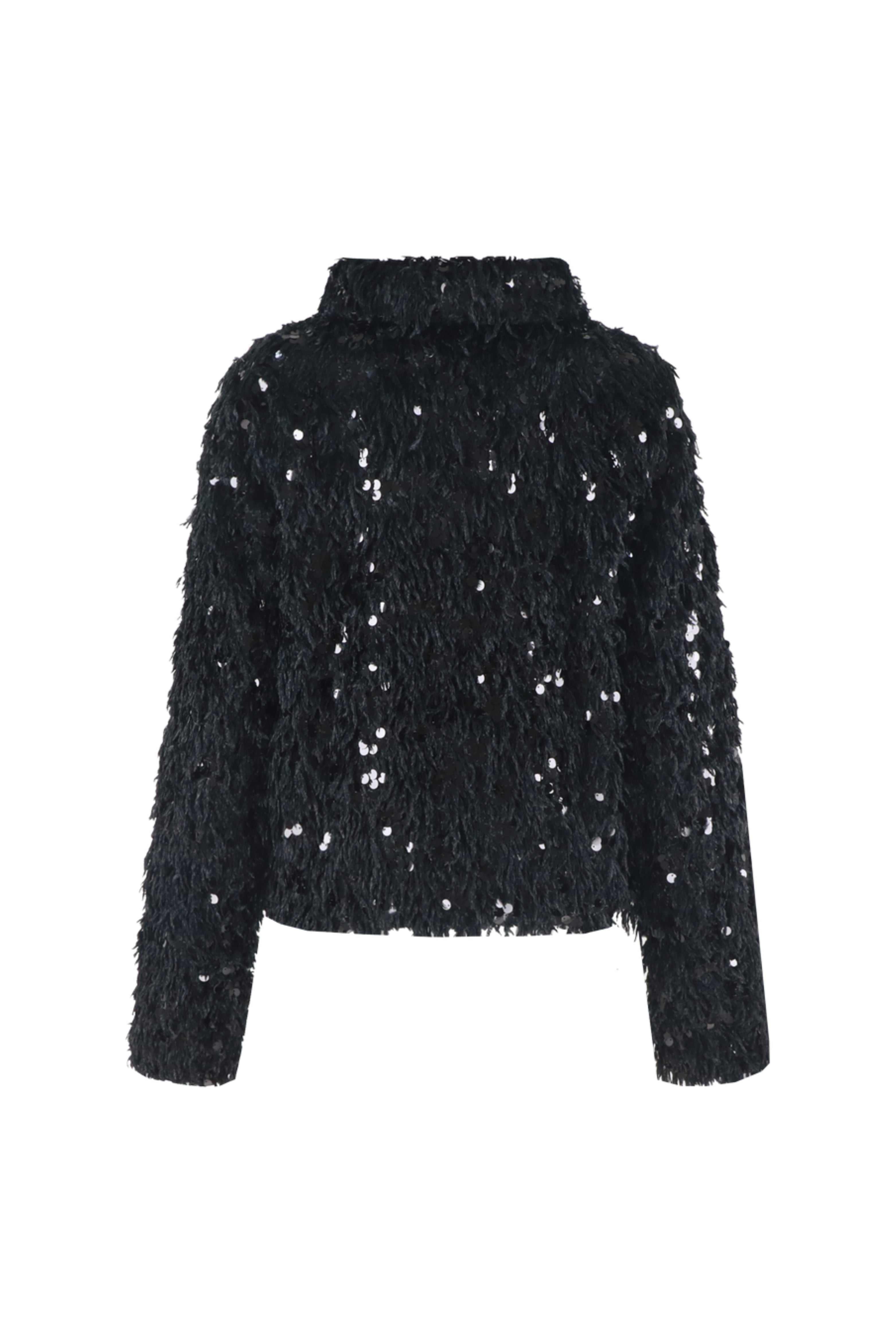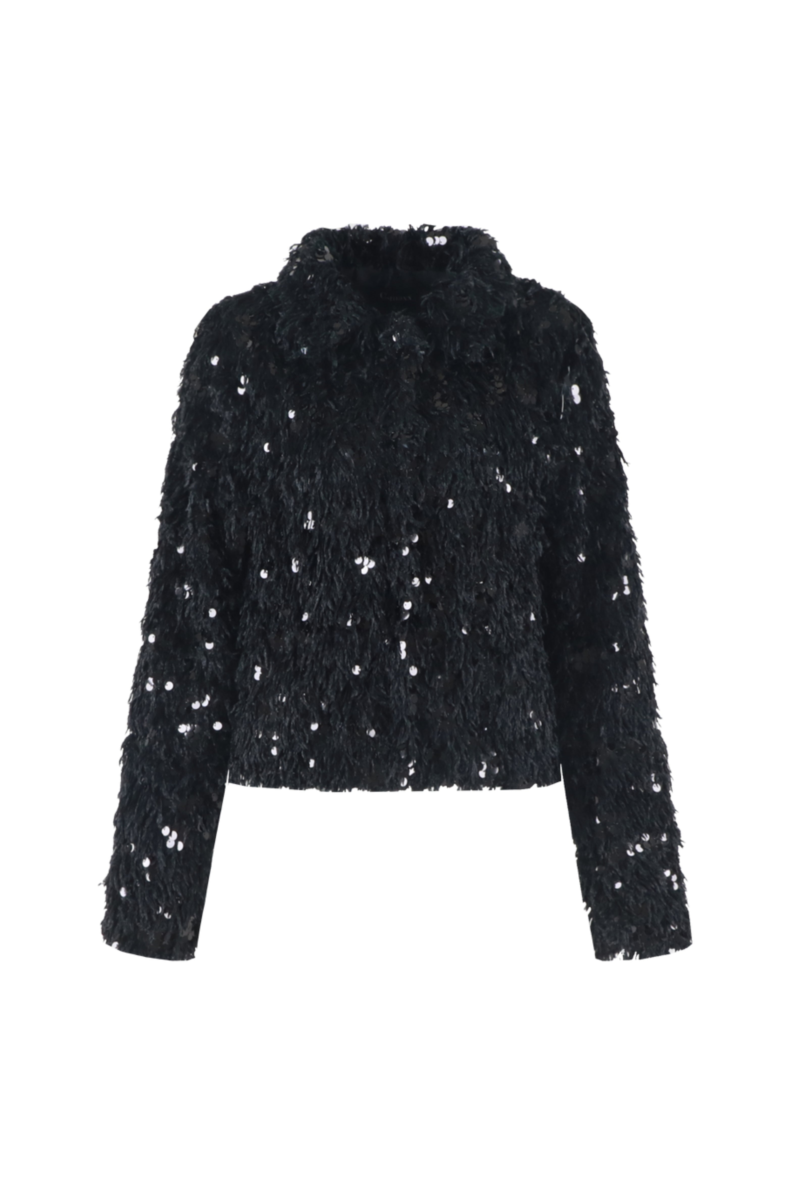 Het Jacket Tenzin Black van G-maxx is een feestelijk jasje met luxueuze pailletten en een fluffy textuur. De korte fit, grove structuur en glanzende details geven dit item een opvallende en vrouwelijke uitstraling. Ideaal voor de feestdagen of om een alledaagse look mee te upgraden.