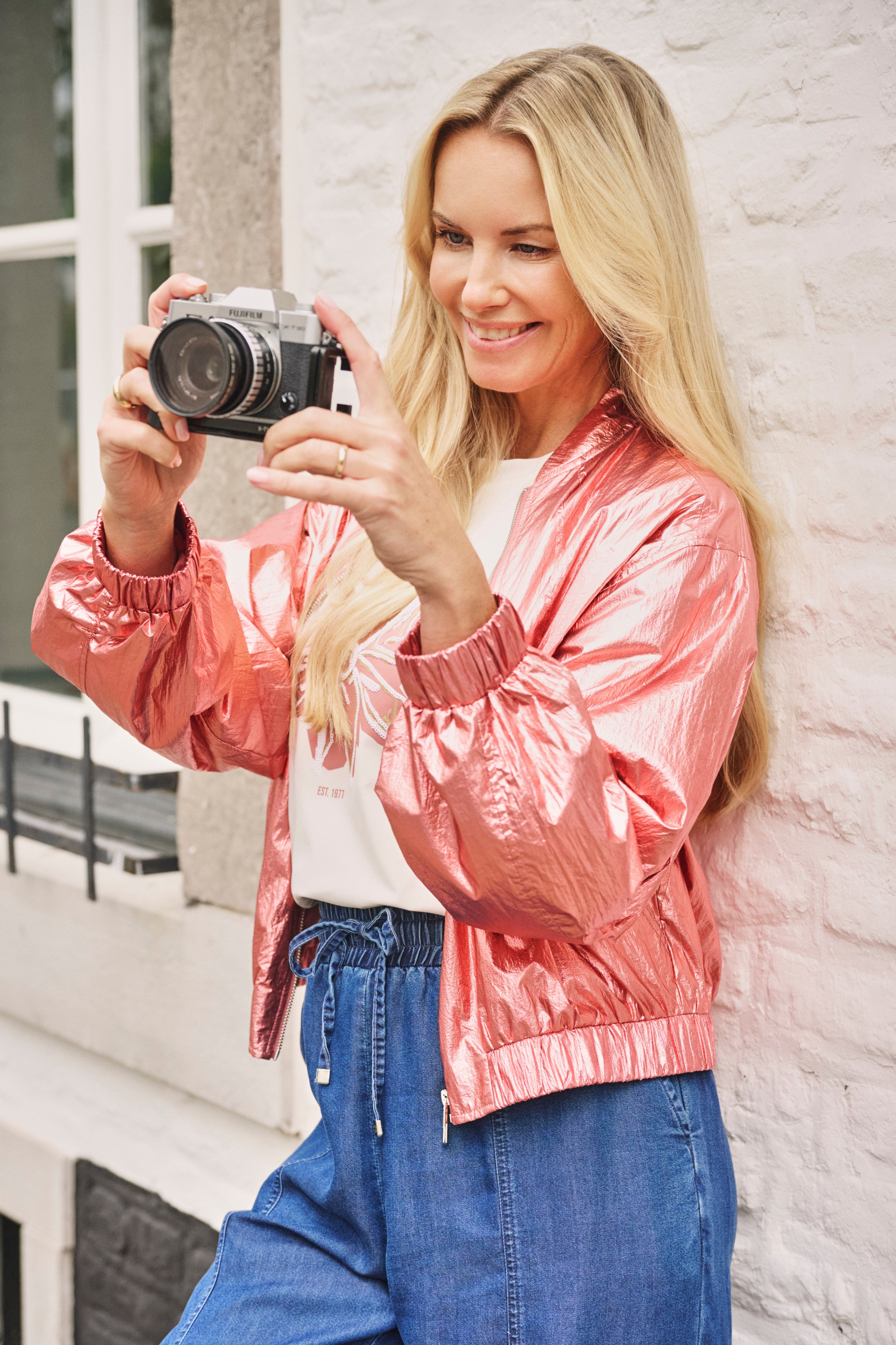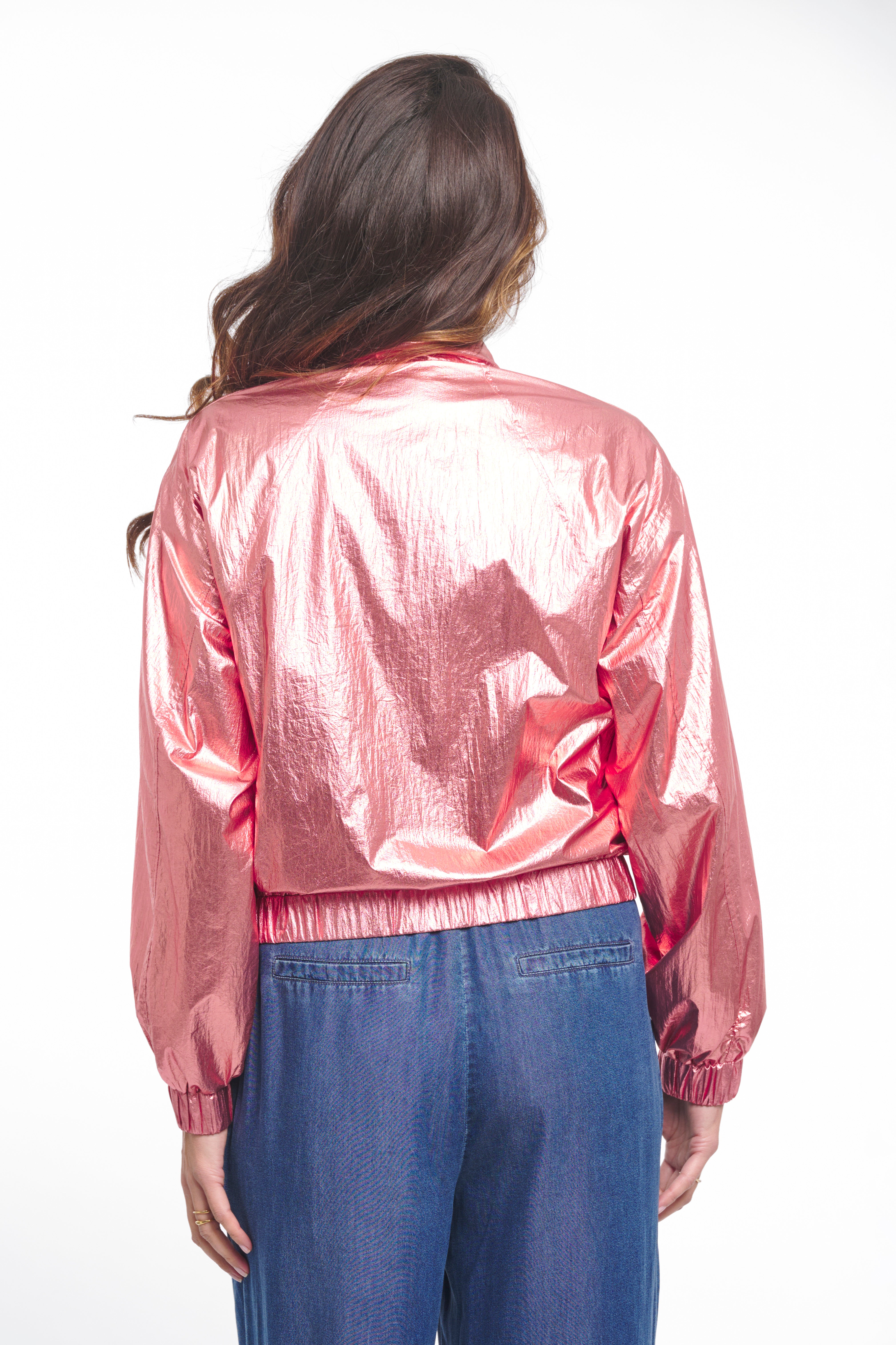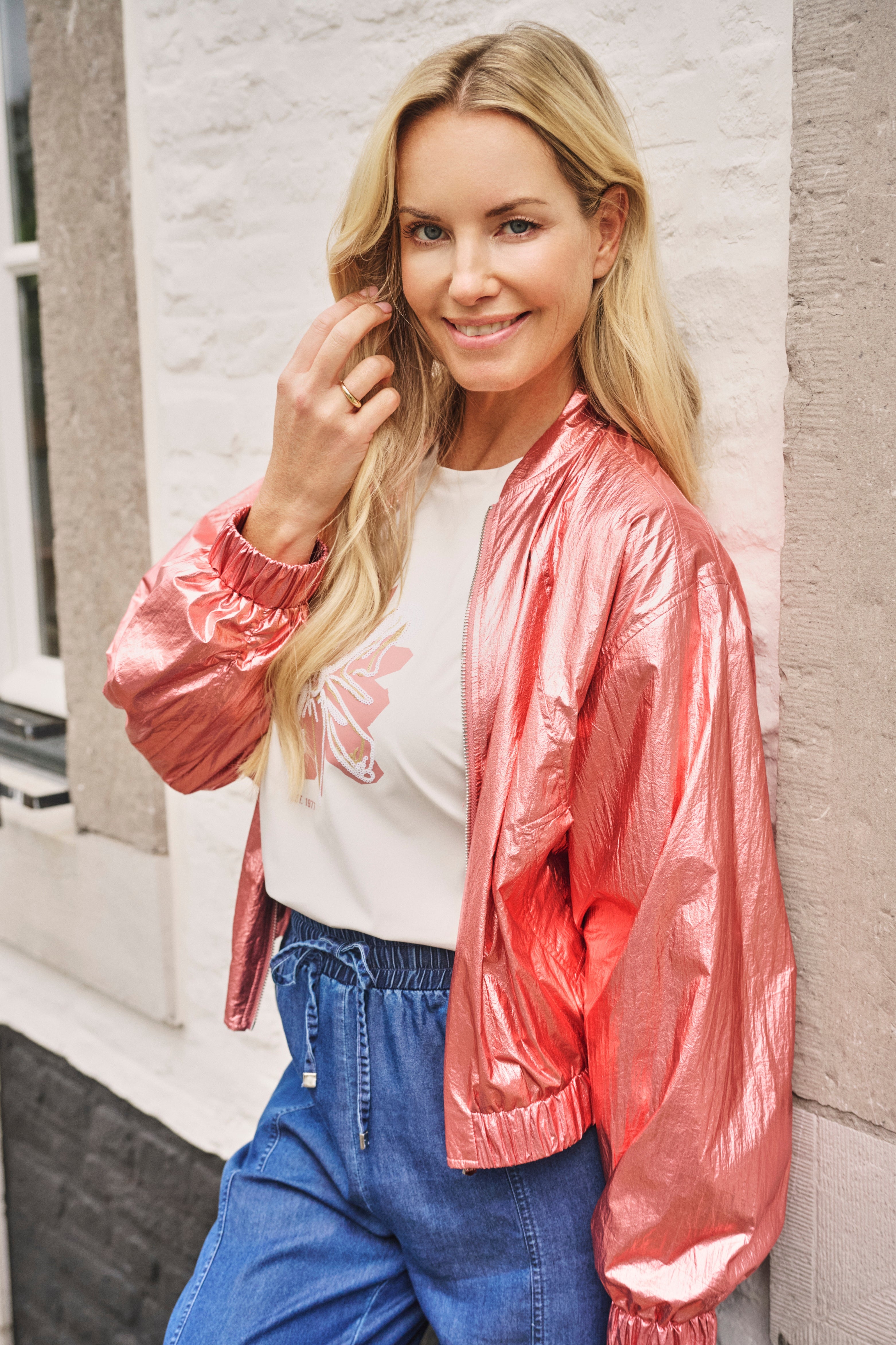 Jacket Zoe Desert Rose is een opvallend jack met metallic glans en sportieve uitstraling. De elastische zoom en manchetten zorgen voor een comfortabele pasvorm, terwijl de glanzende afwerking een echte eyecatcher is voor elke outfit.