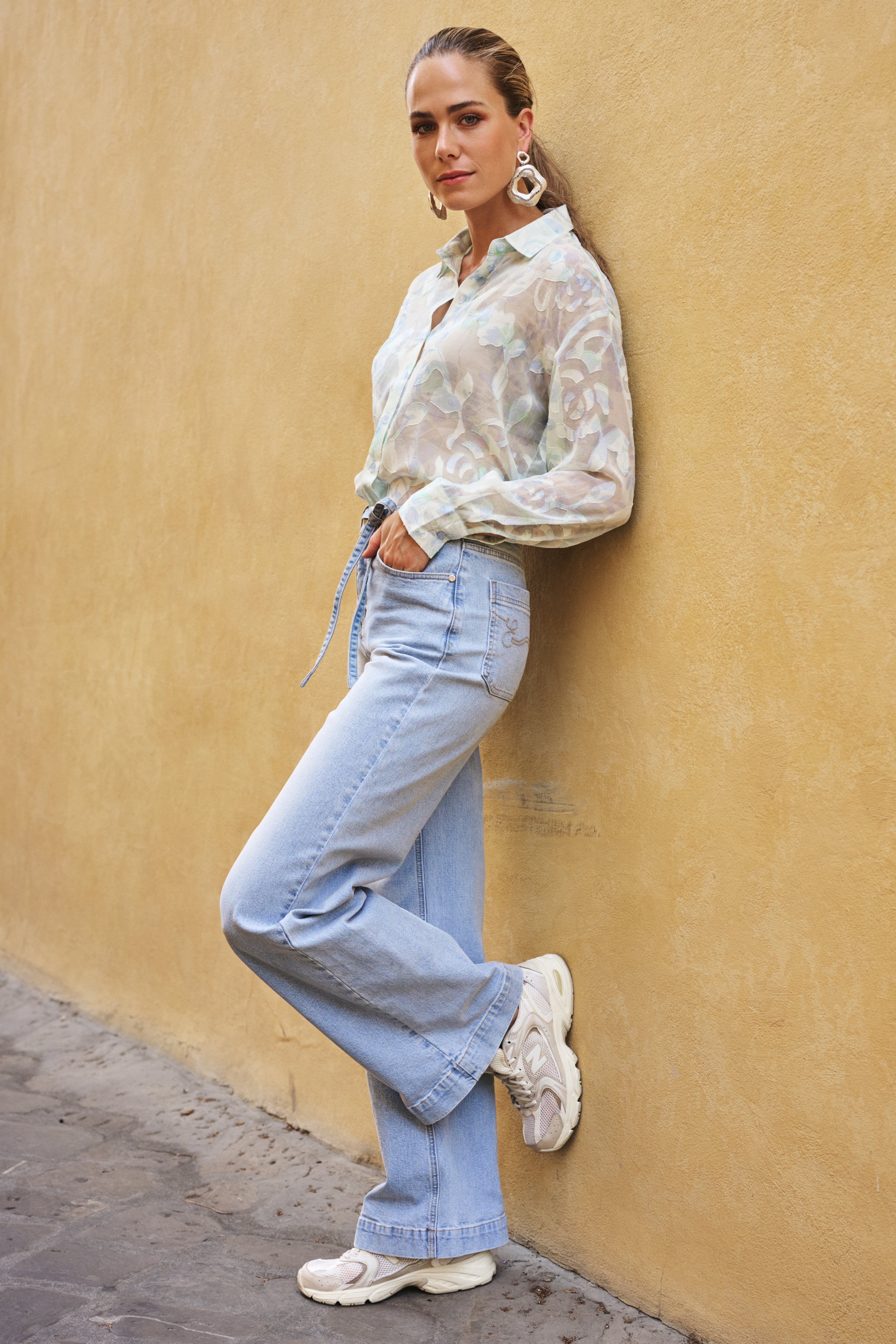 De Jeans Denim Belt Light Jeans BI van Esqualo is een soepele wide-leg jeans met strikceintuur. Lichtblauwe wassing en hoge taille zorgen voor een flatterend silhouet. Perfect voor casual looks en city trips.