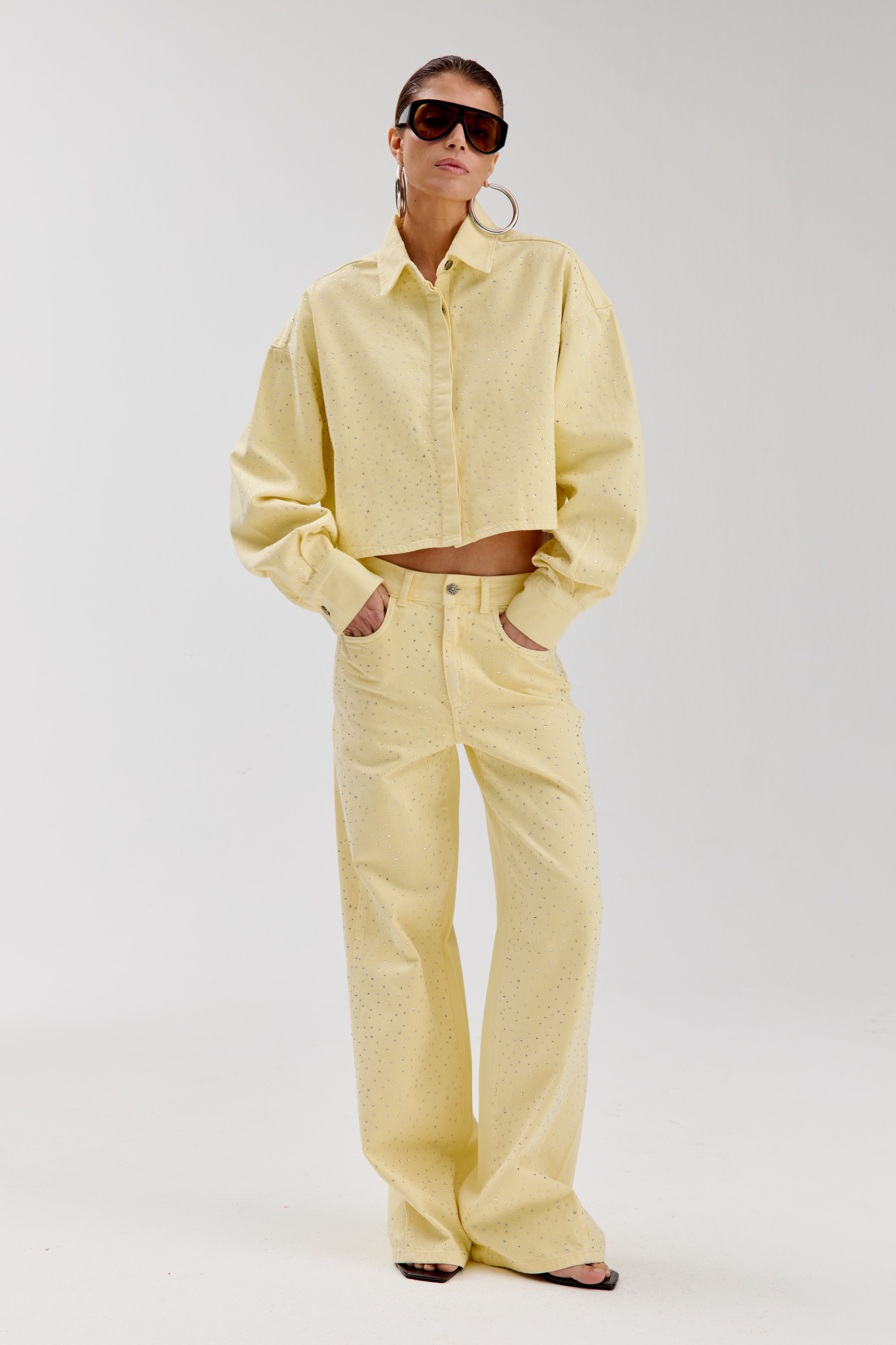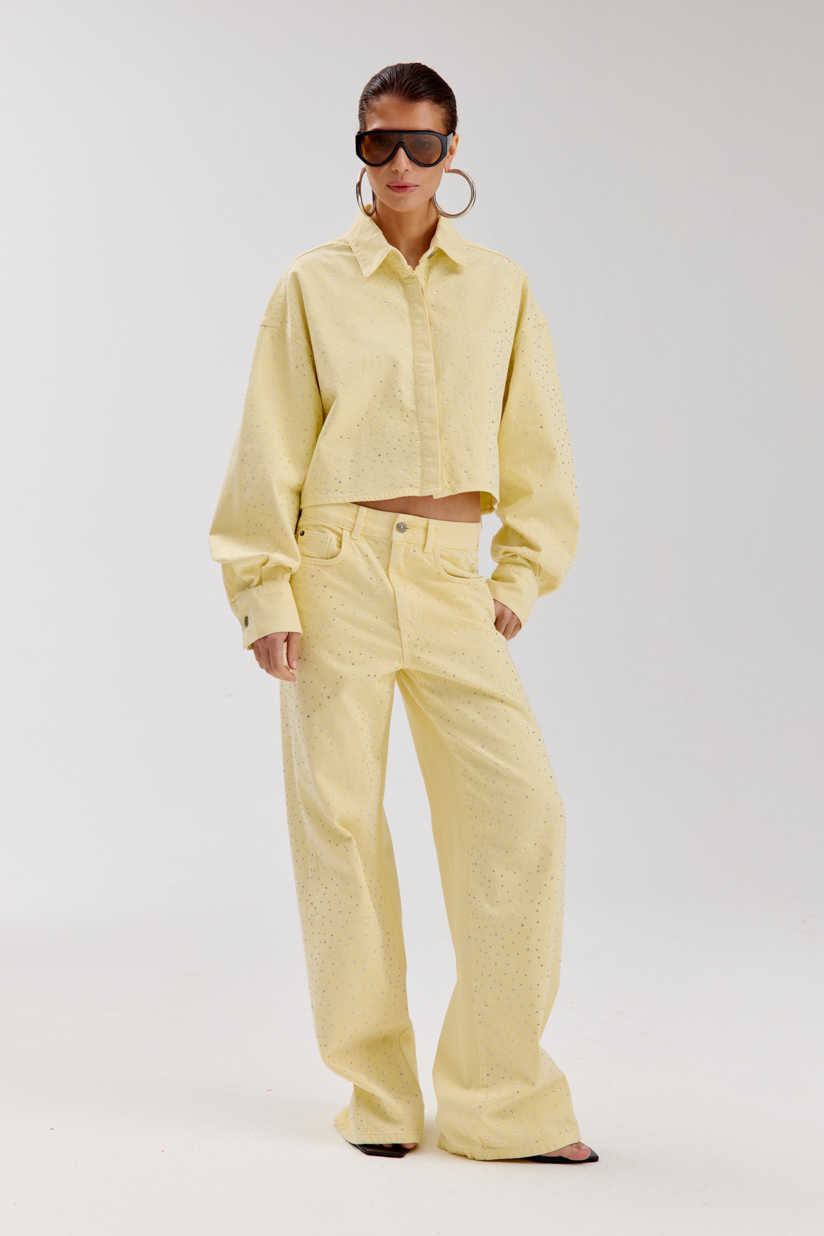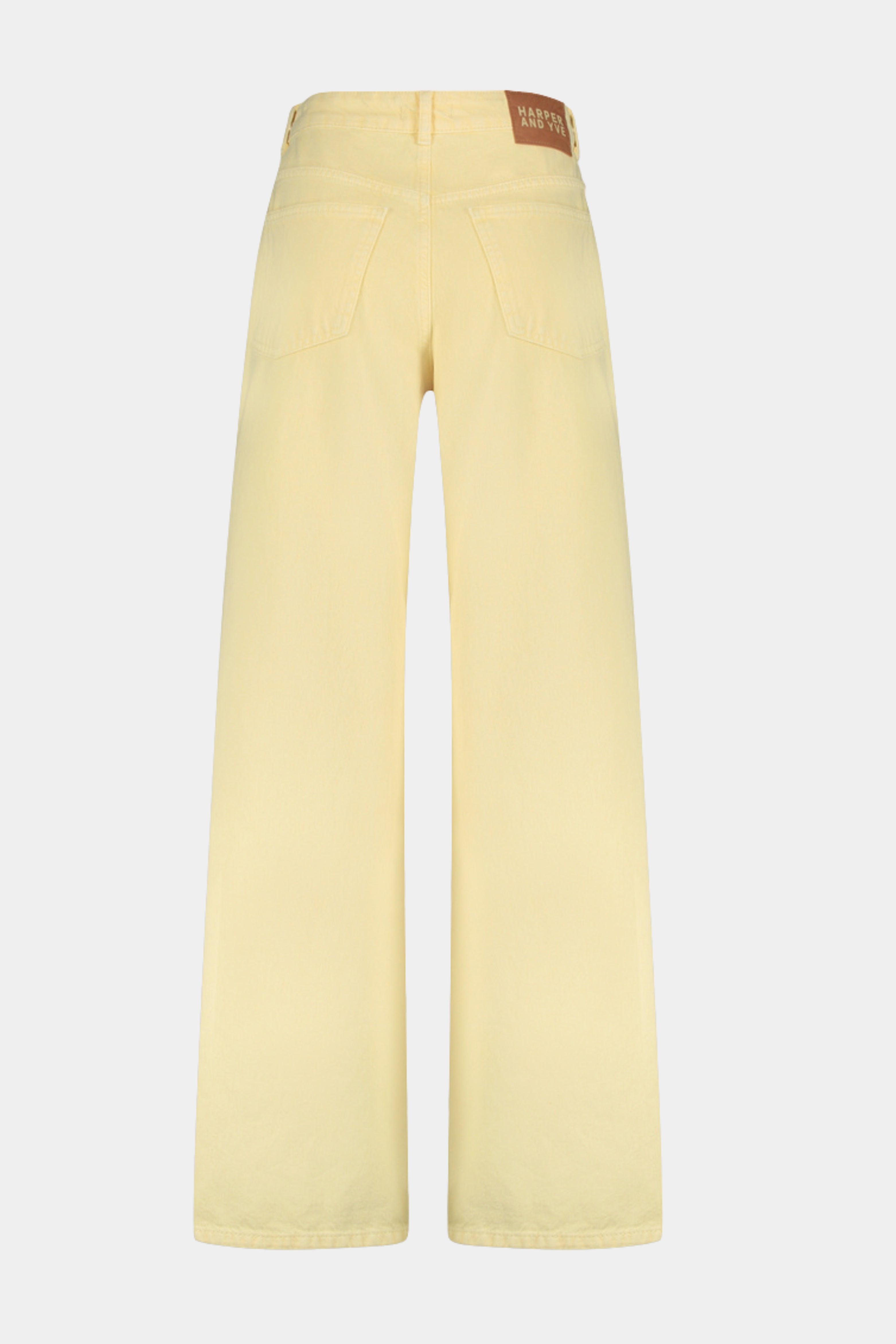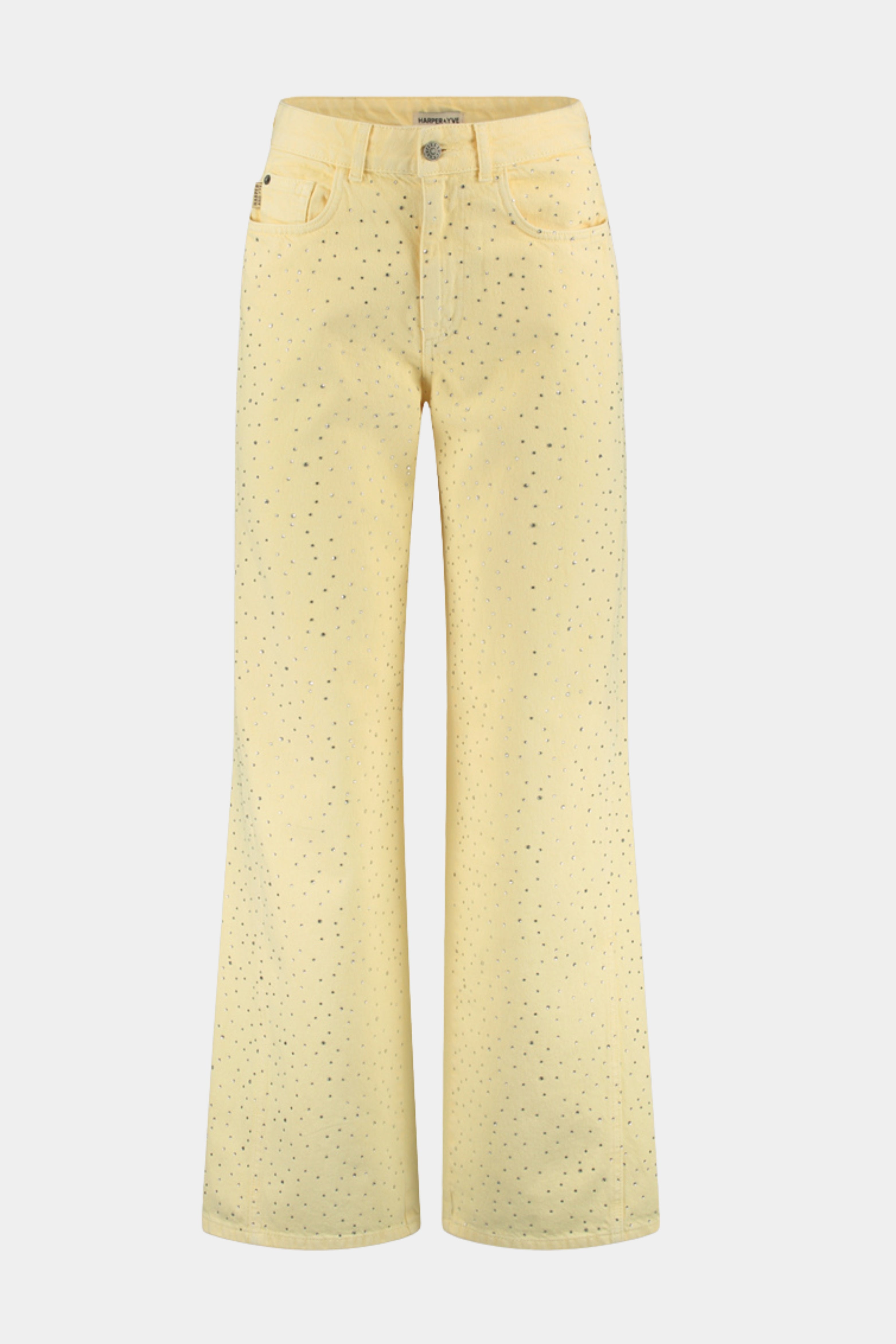 De Jeans Mayra Light Yellow van Harper & Yve is een frisse, lichtgele wide-leg jeans met subtiele studs. De uitgesproken details en soepele pasvorm geven deze broek een stijlvolle, moderne uitstraling.