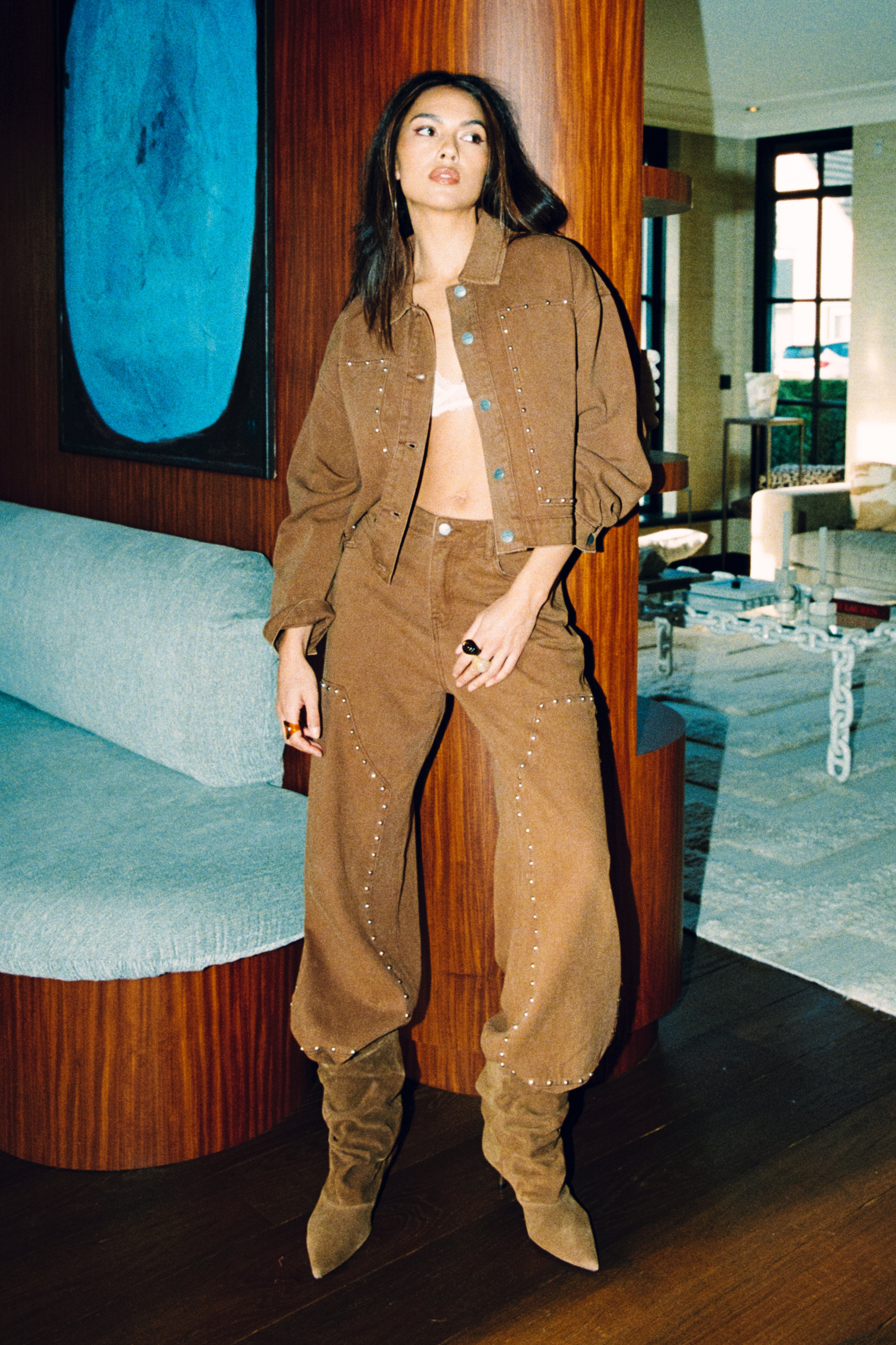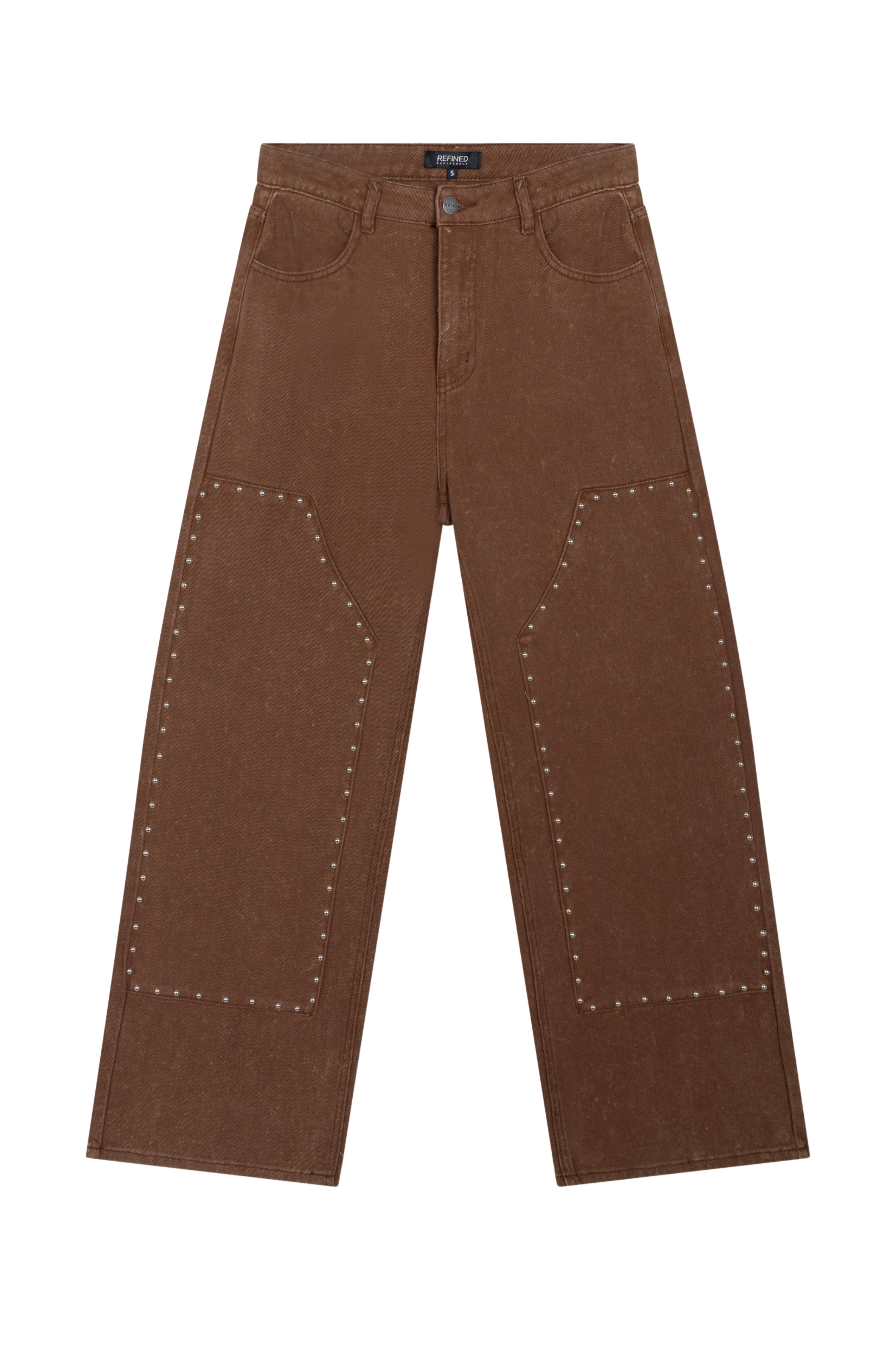De Jeans Payton Brown van Refined Department is een bruine broek met rechte, wijde pijpen. De opvallende studdetails langs de naden geven dit model een stoere, eigentijdse uitstraling.