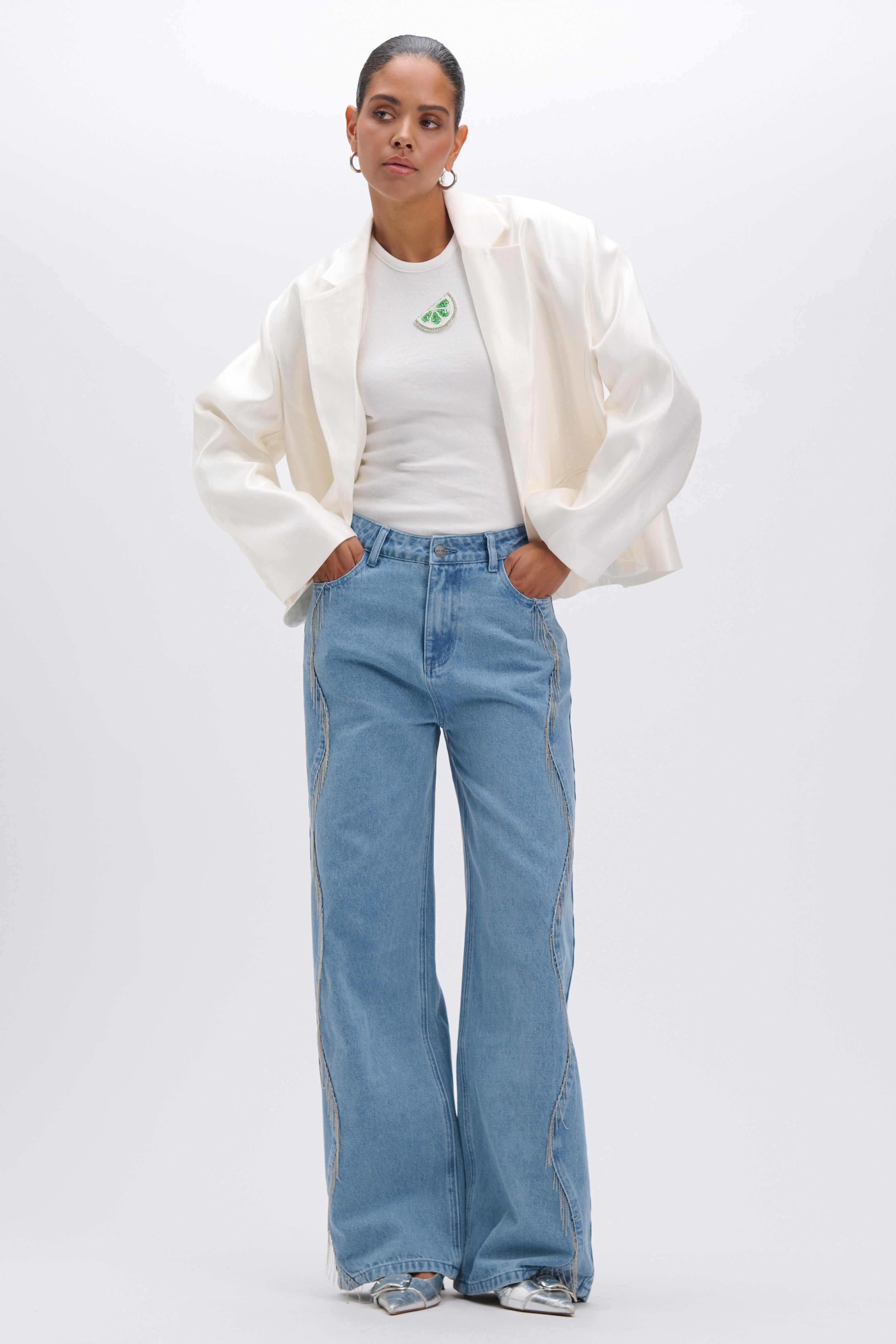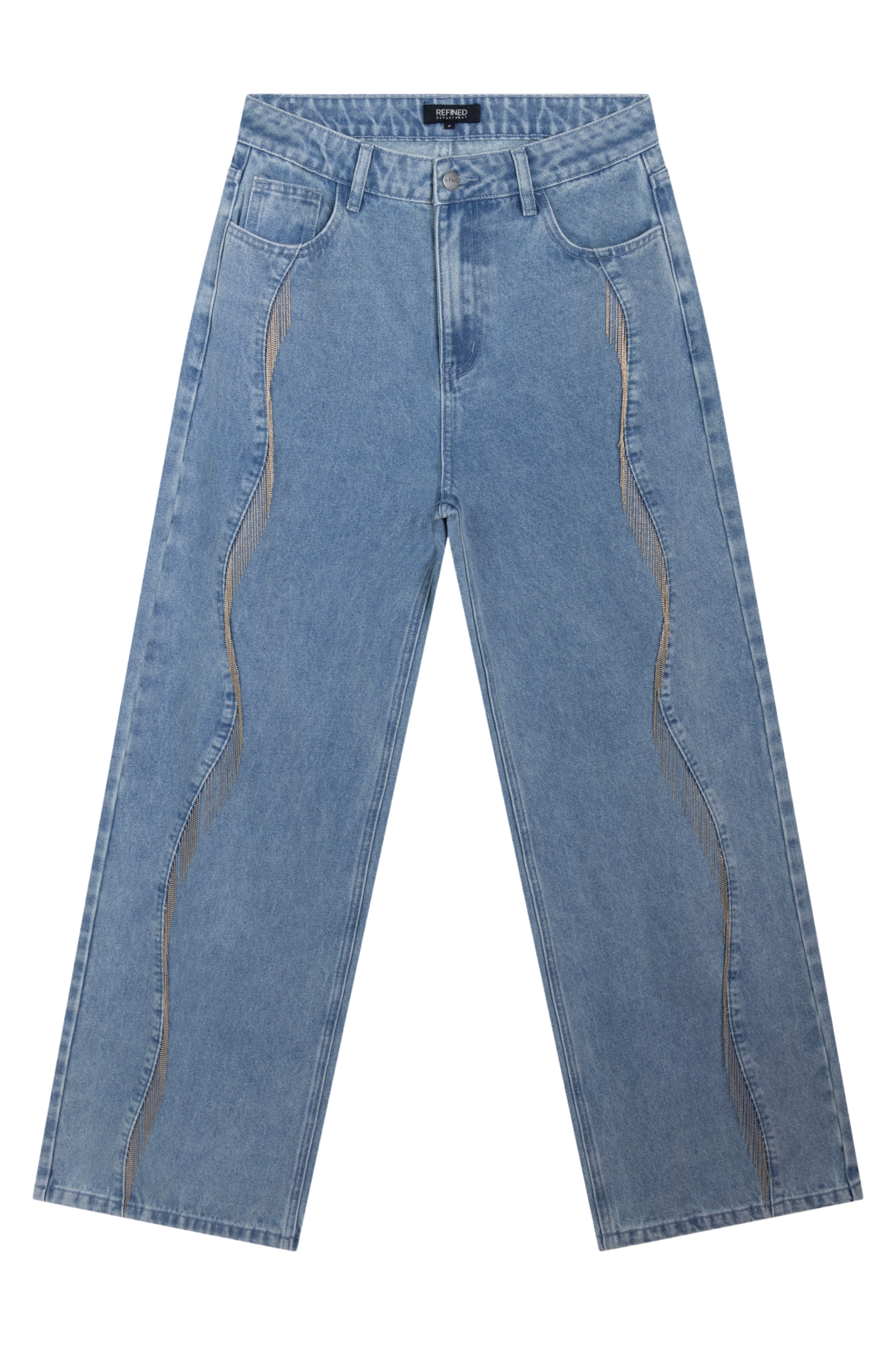 De Jeans Payton Light Blue van Refined Department is een stoere high-waist jeans met een rechte, licht wijde pijp. De wassing oogt fris en de opvallende sierdetails langs de zijnaad geven een unieke twist. Perfect voor een casual day-to-night look.