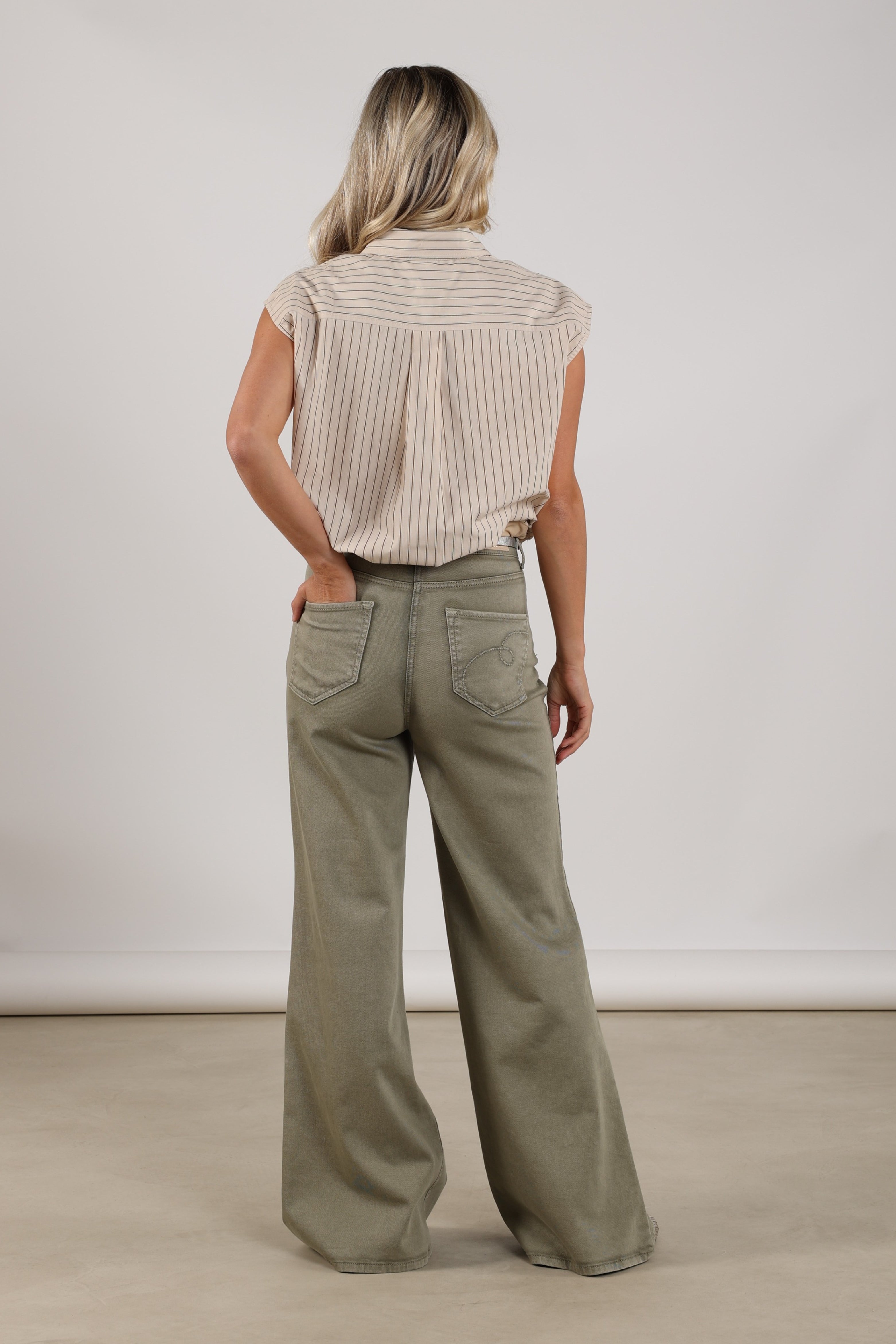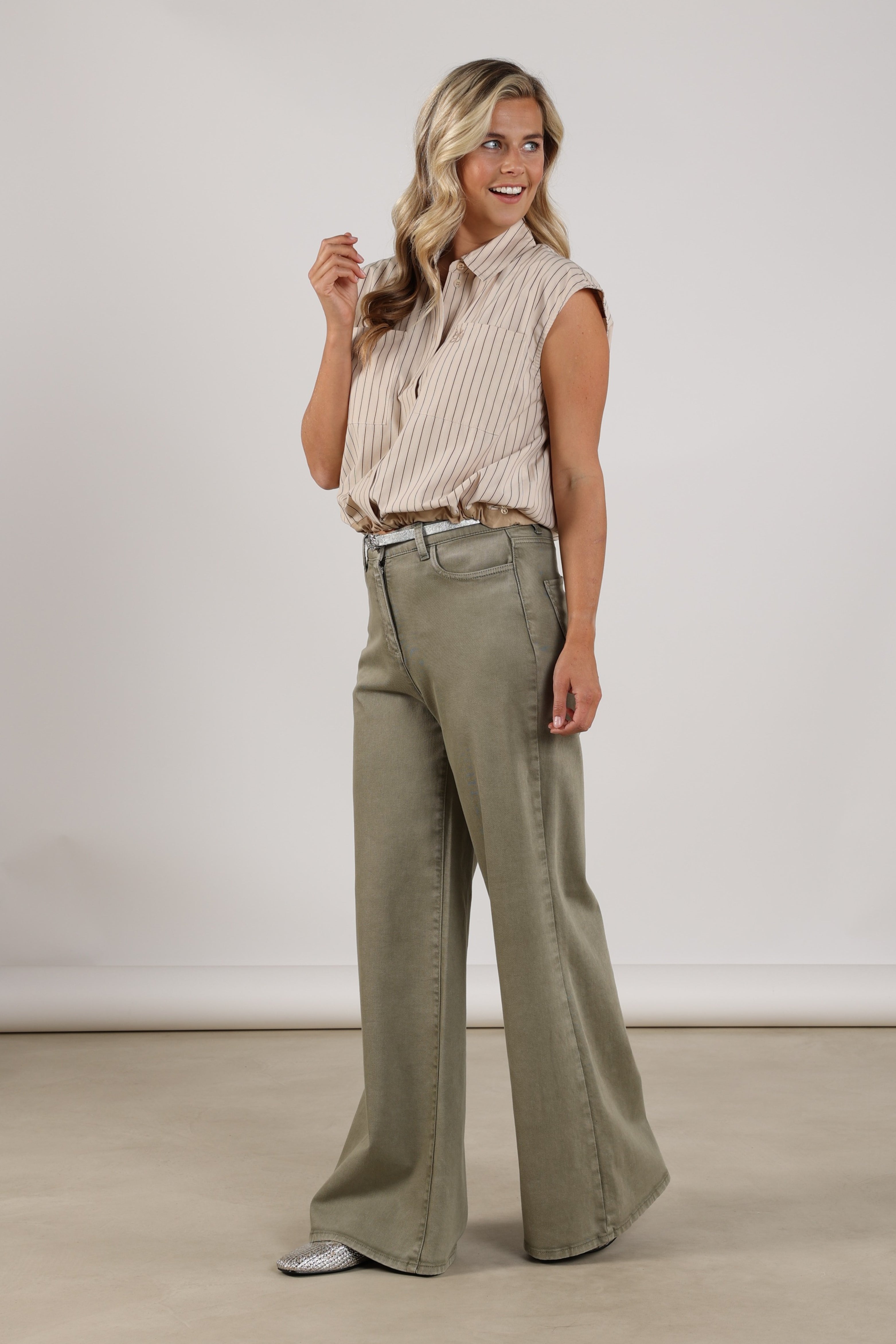 De Broek Senna Army van Nukus is een stoere jeans met hoge taille en wijde pijpen. De stevige denim met lichte stretch zit comfortabel en geeft een moderne, flatterende look. Perfect voor alledaags gebruik.