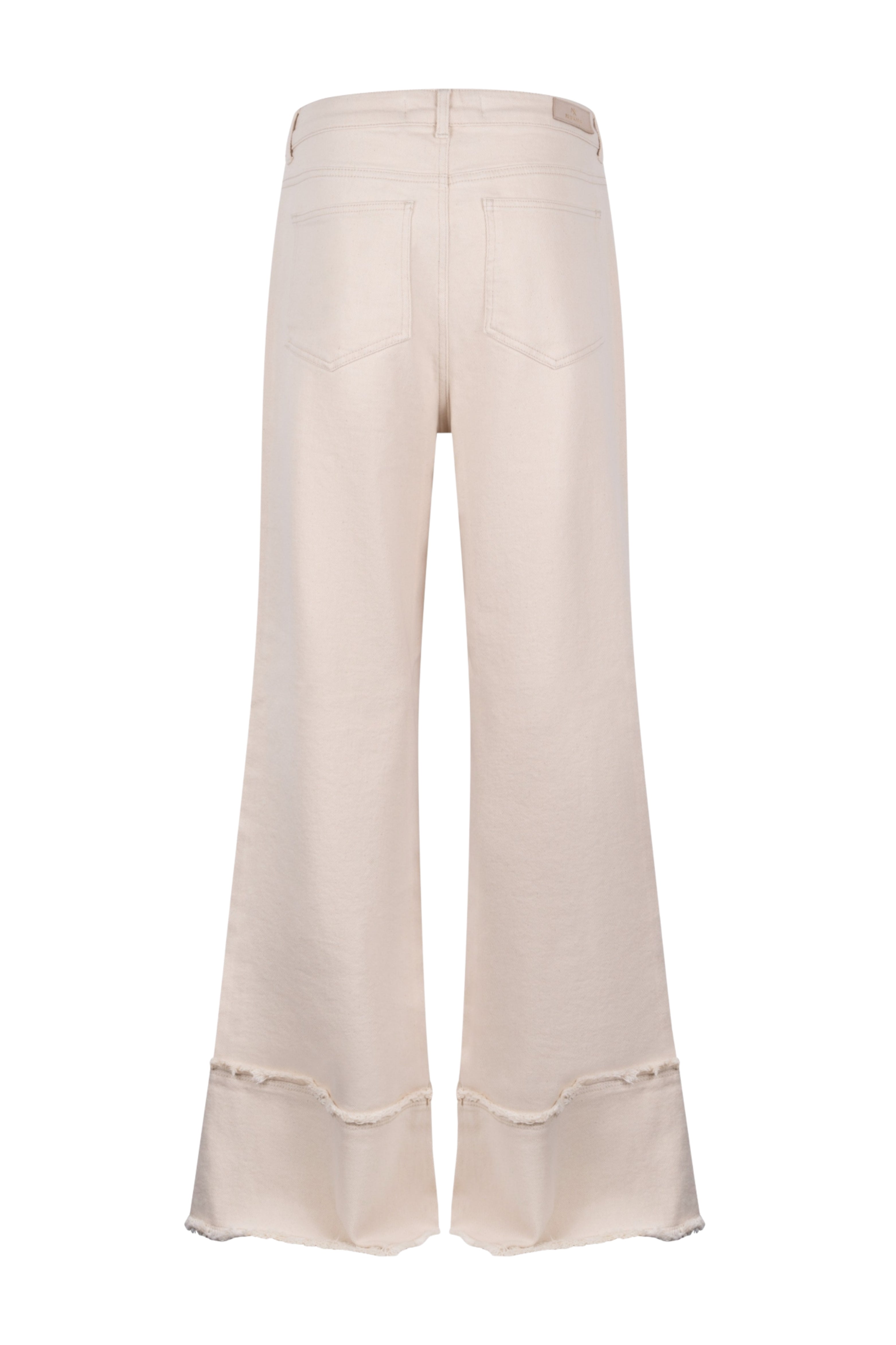 De Jeans Shay Ruffle Offwhite van Nukus is een eigentijdse broek met hoge taille. De wijde pijpen en rafelranden geven een speelse twist en dragen heerlijk comfortabel. Perfect voor dagelijks gebruik of casual chic.