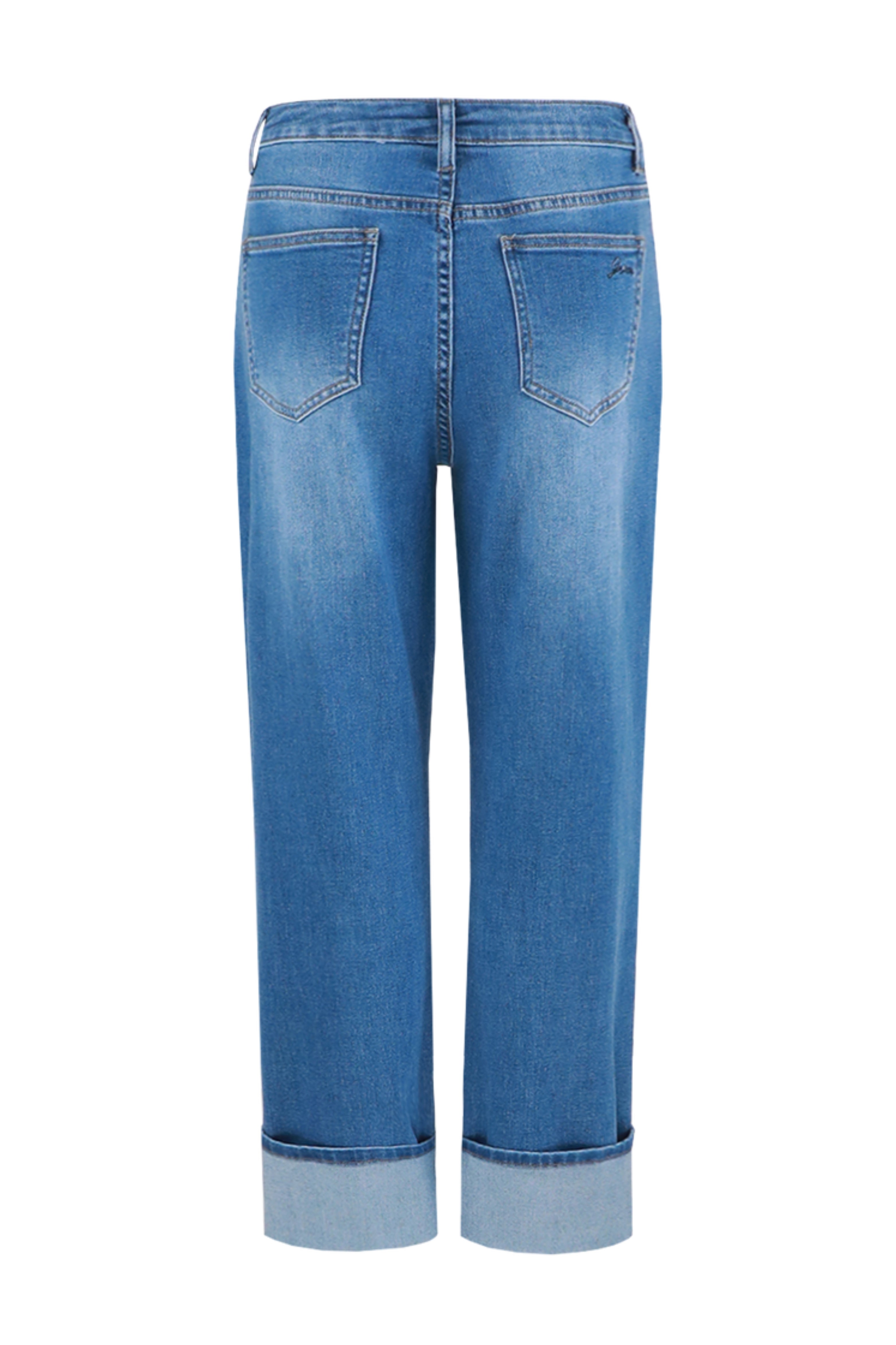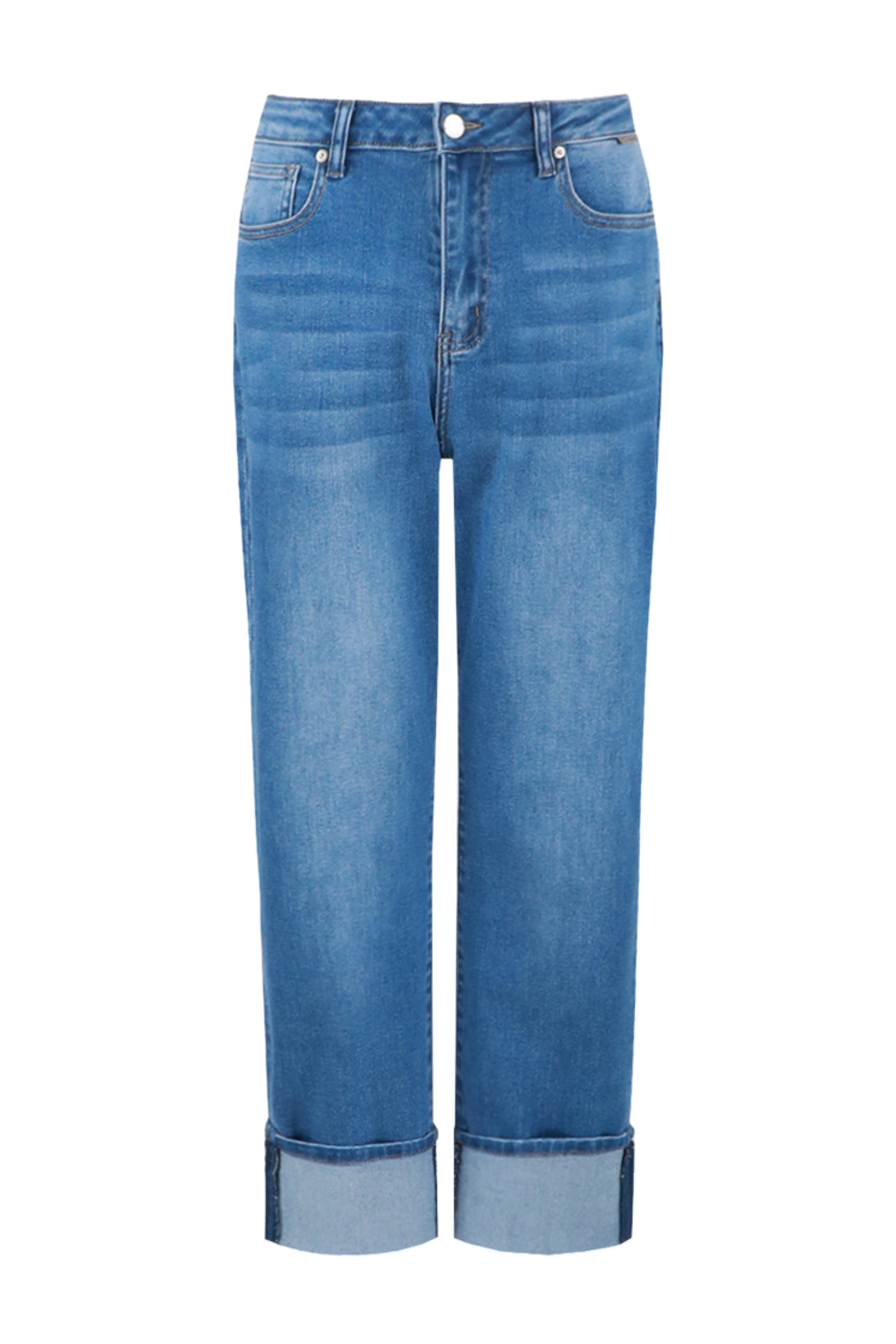 De jeans Zadie Denim Mid Blue van G-maxx valt op door de brede omslag aan de pijpen. Dit cropped model met rechte fit geeft je outfit een frisse, trendy look en combineert moeiteloos met sneakers, loafers of enkellaarsjes.