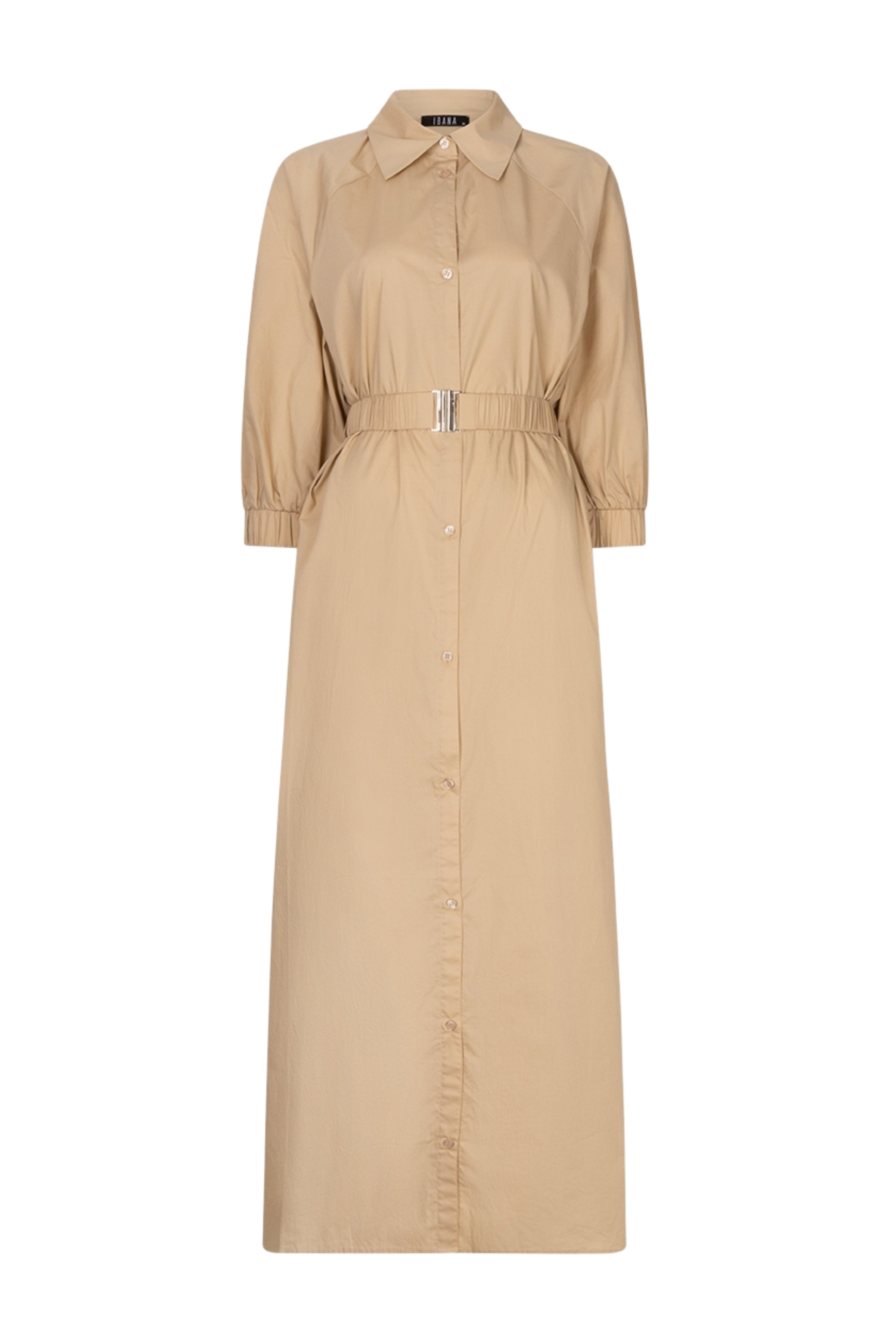 De Jurk Danique Ostra Beige van Ibana is een elegante jurk met klassieke kraag. Lichtgewicht stof met subtiele A-lijn en elastische mouwen. Perfect voor zomerse dagen of een stijlvolle citytrip.