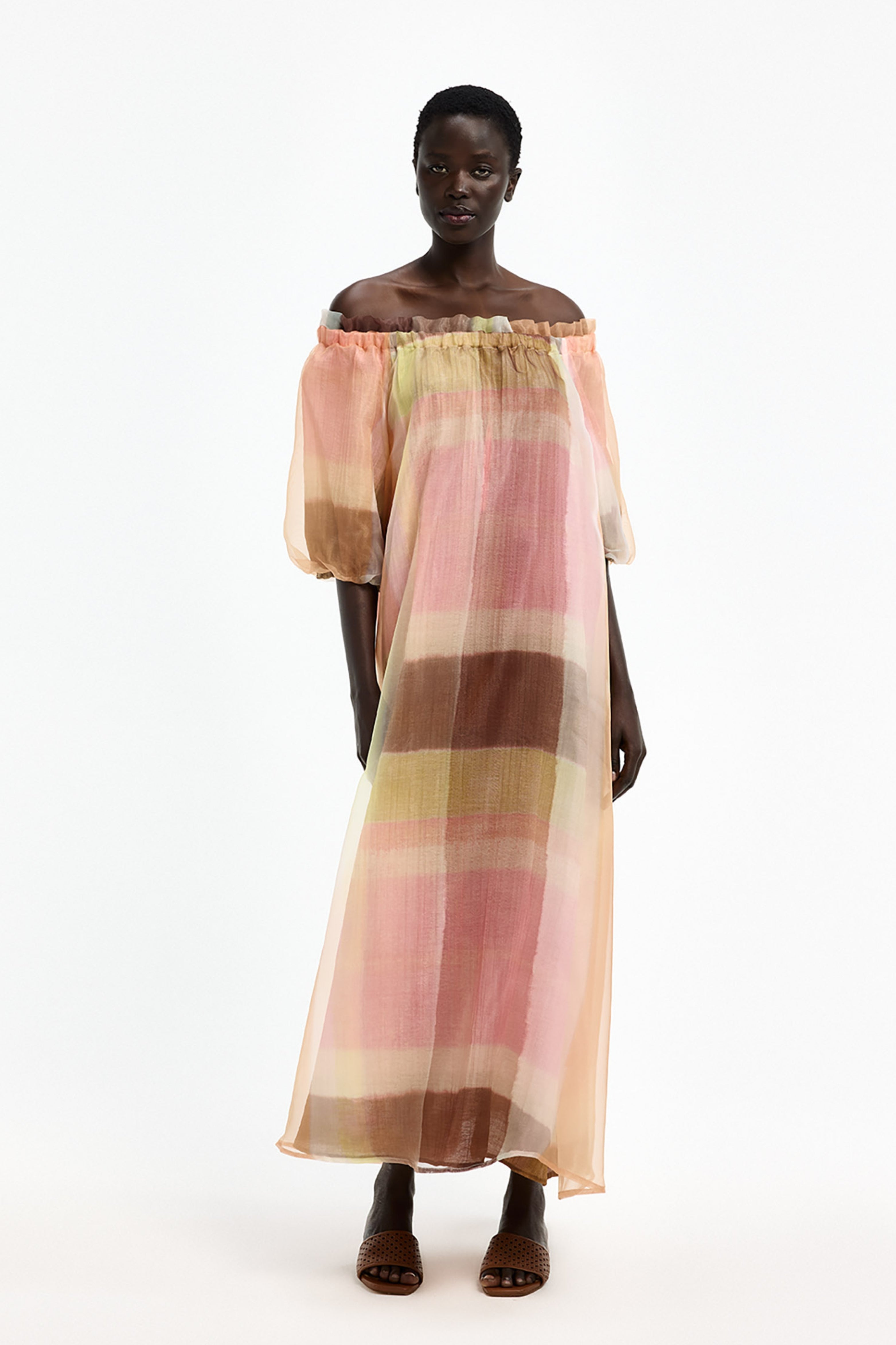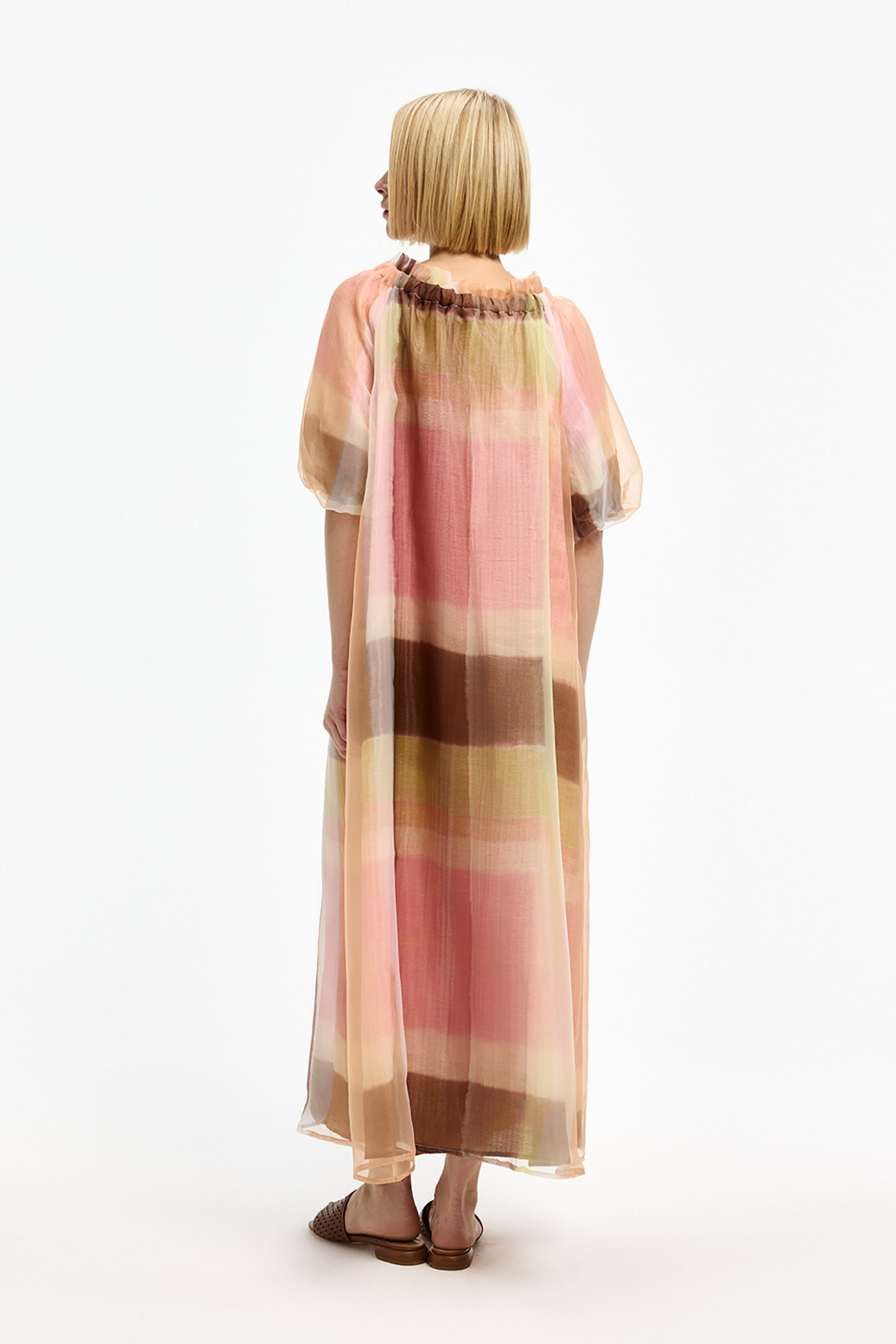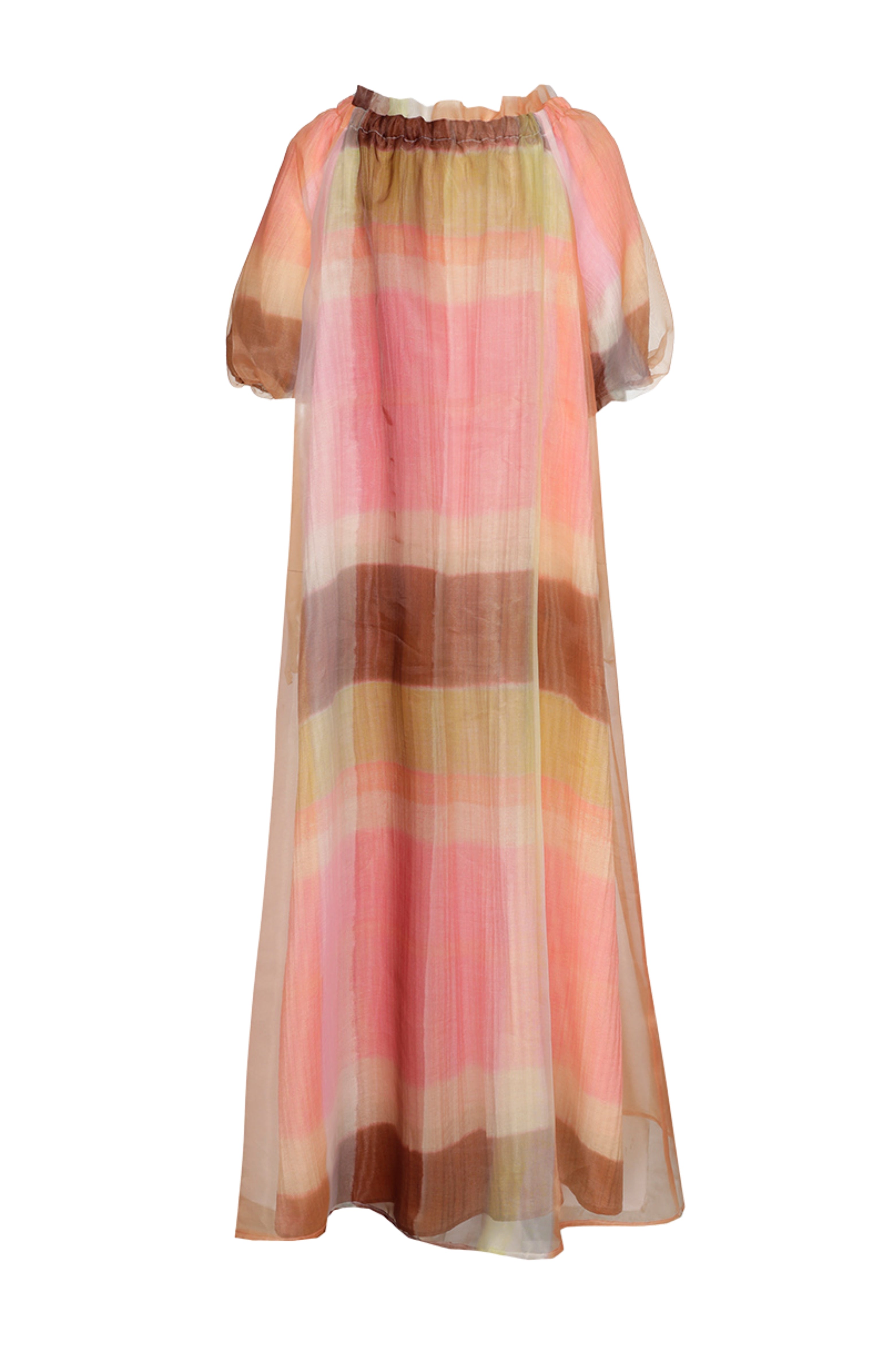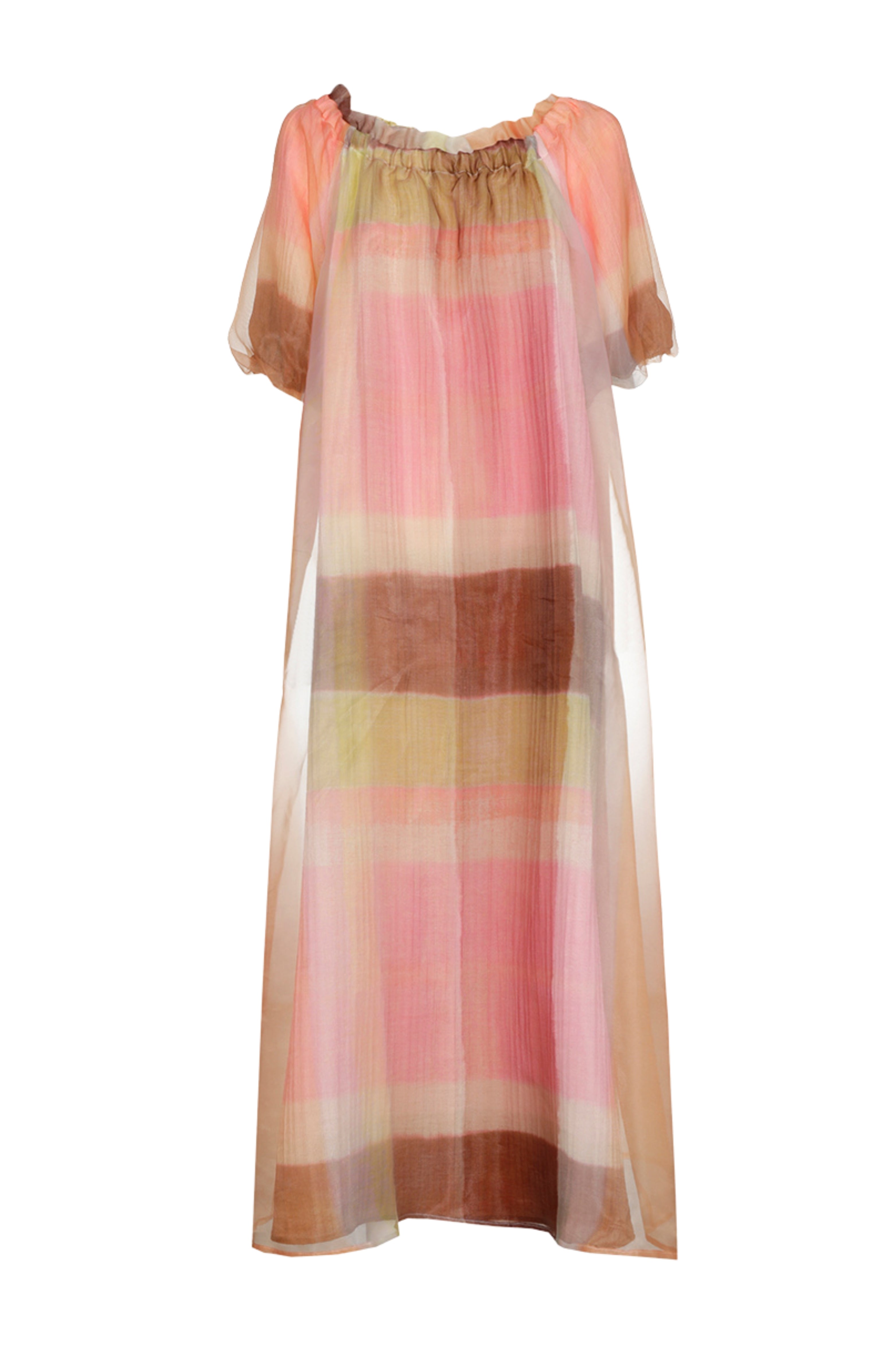 De jurk Katari Tobacco van Xandres is een zwierige zomerjurk met aquarel-print in warme tabakstinten, roze en zachtgeel. De luchtige, transparante bovenlaag en de soepelvallende pasvorm geven de jurk een elegante, vrouwelijke look.
