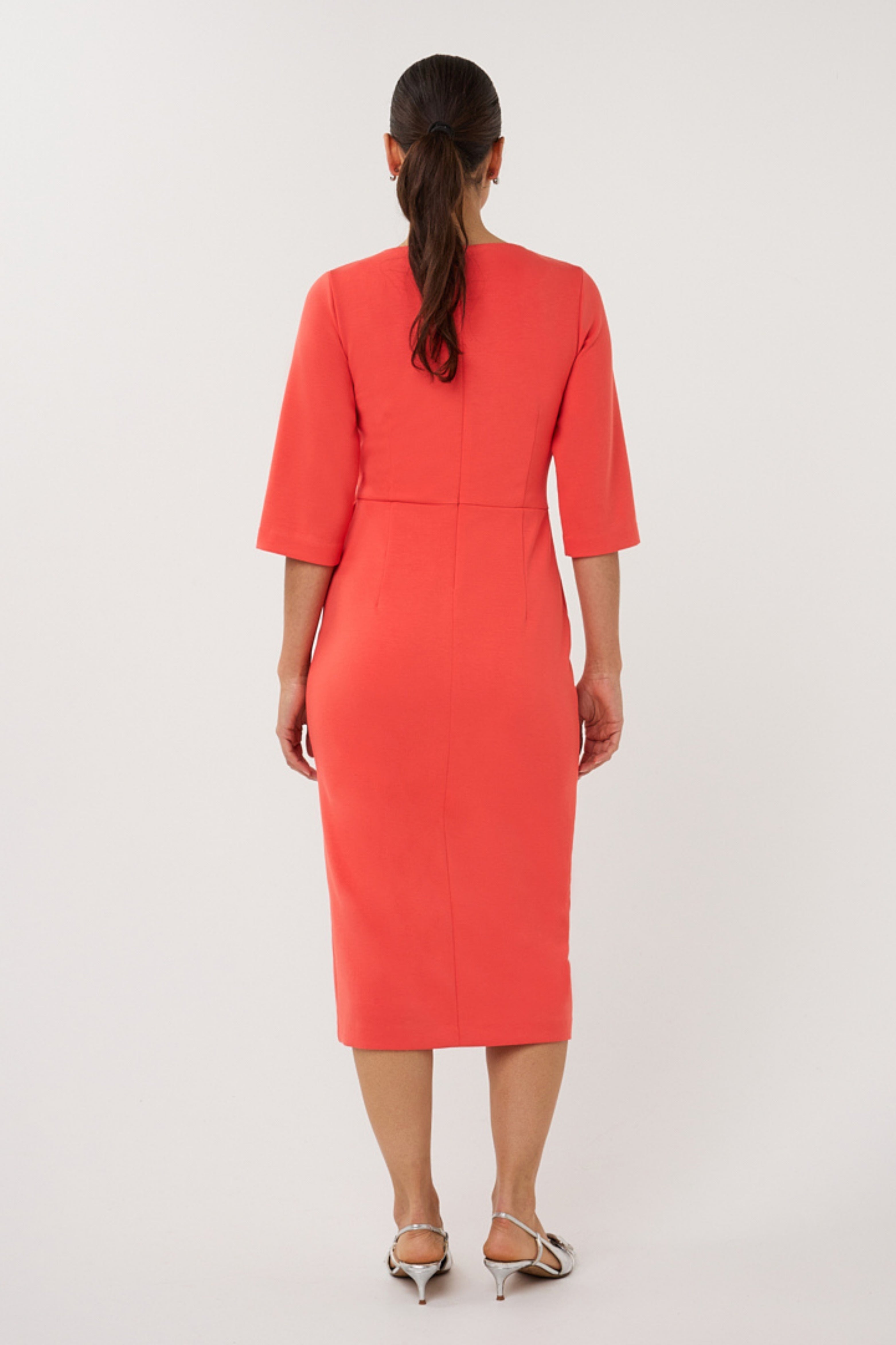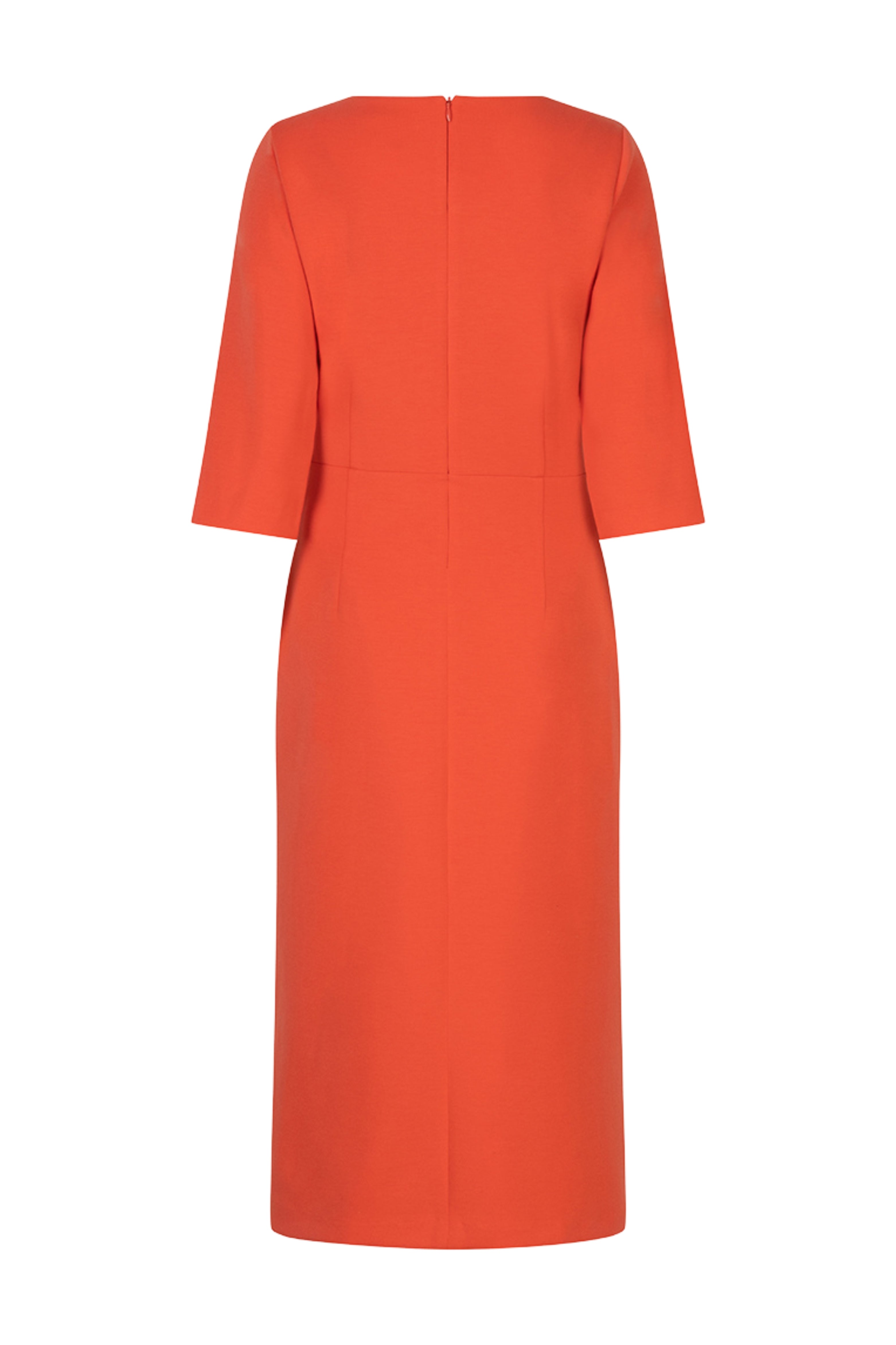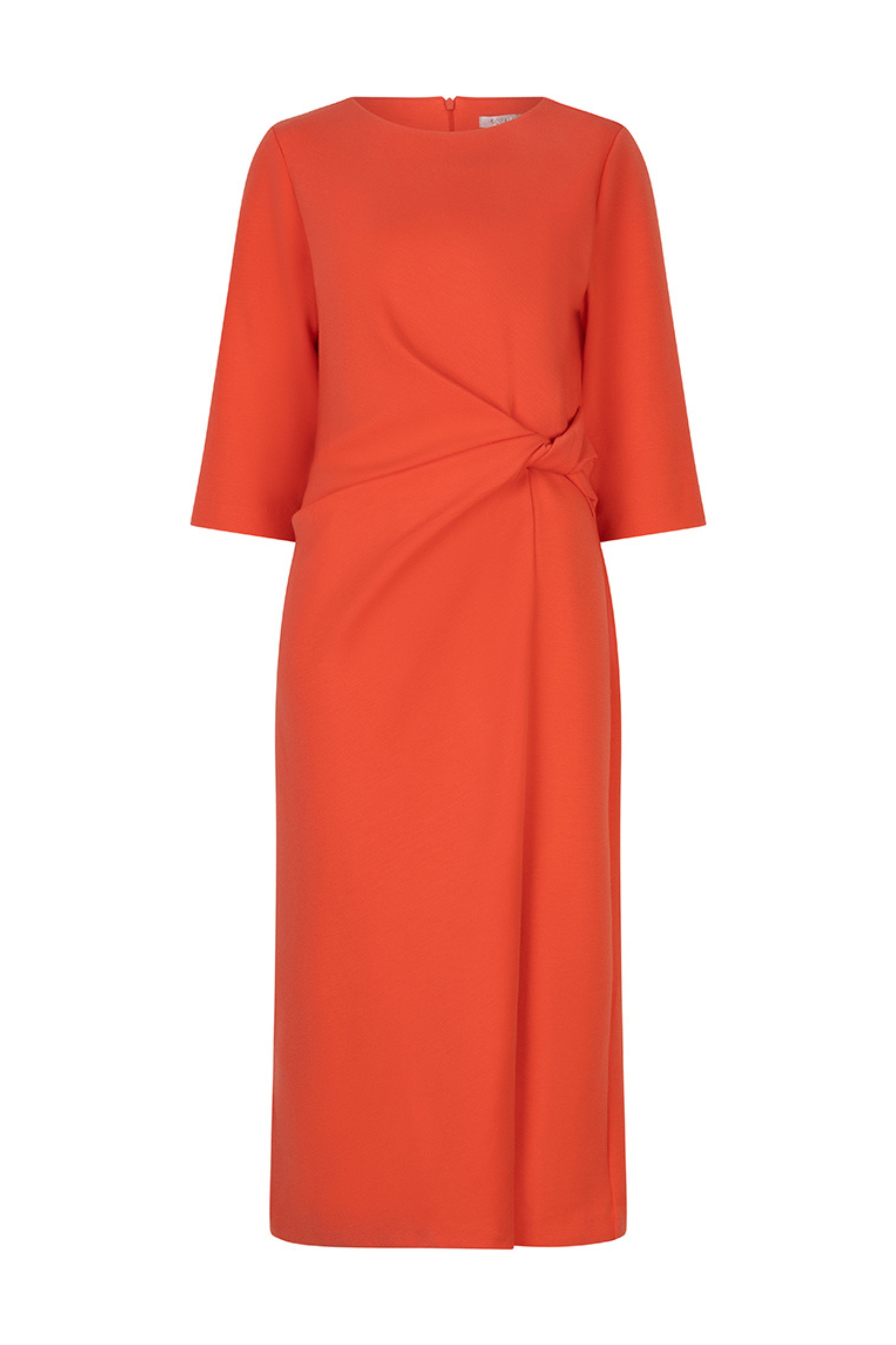 De Jurk Knot Chili Red van Esqualo is een jurk met Valt-detail/knoop in de taille. De soepele stof en de uni-kleur zorgen voor een elegante, moderne look. Ideaal voor werk of diner.