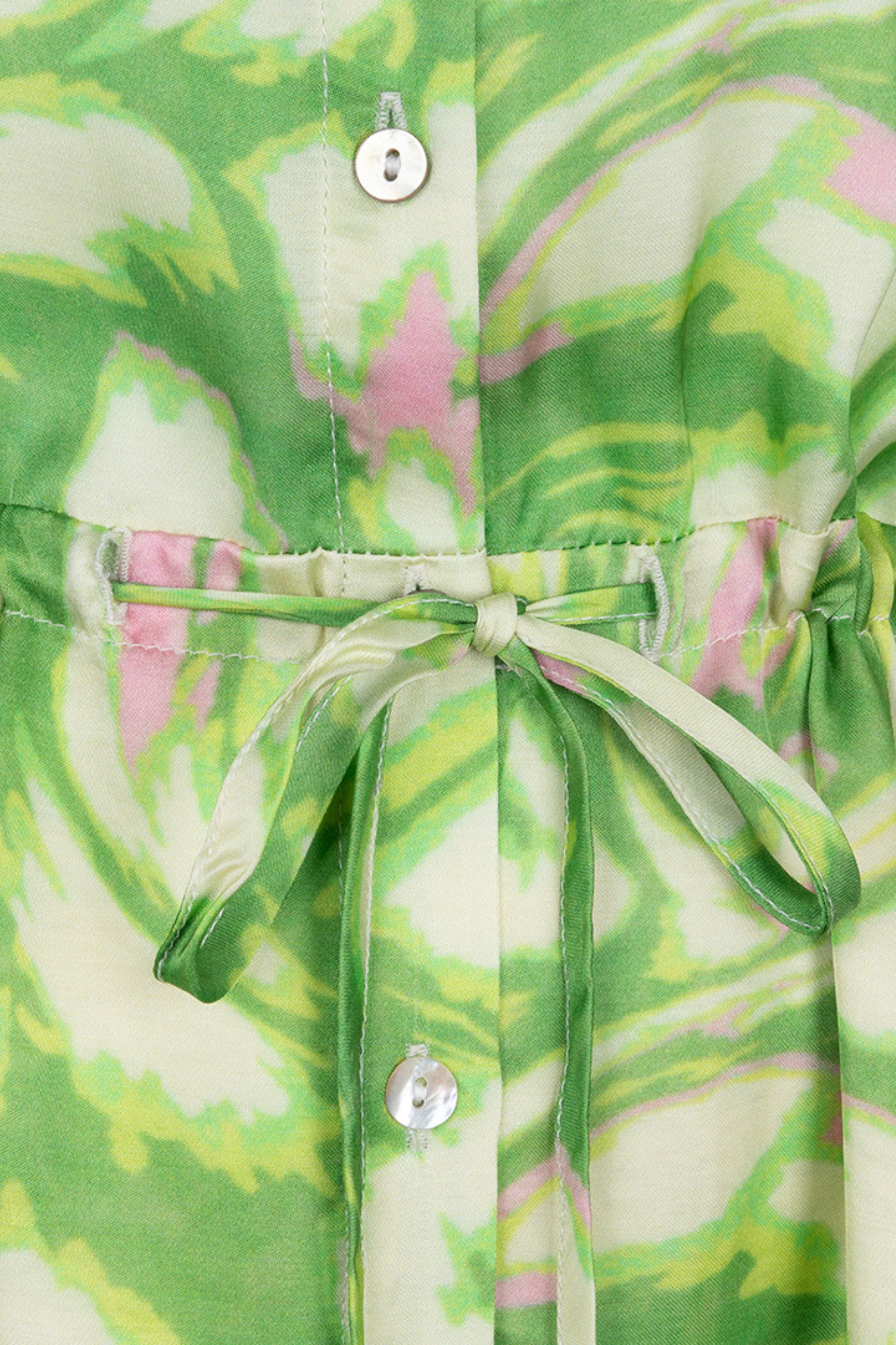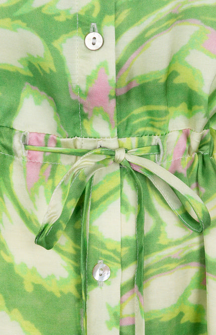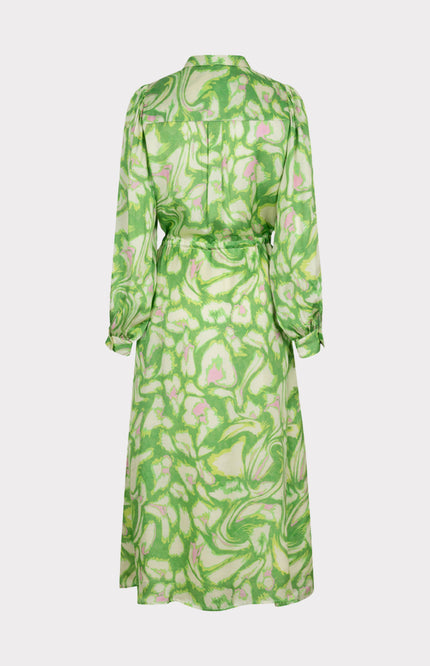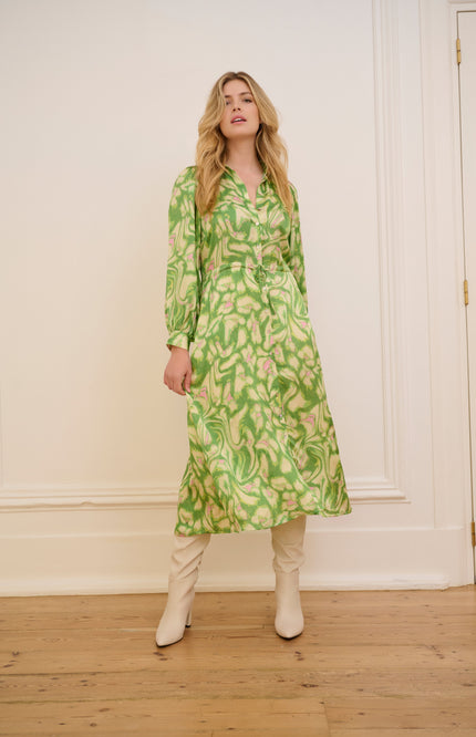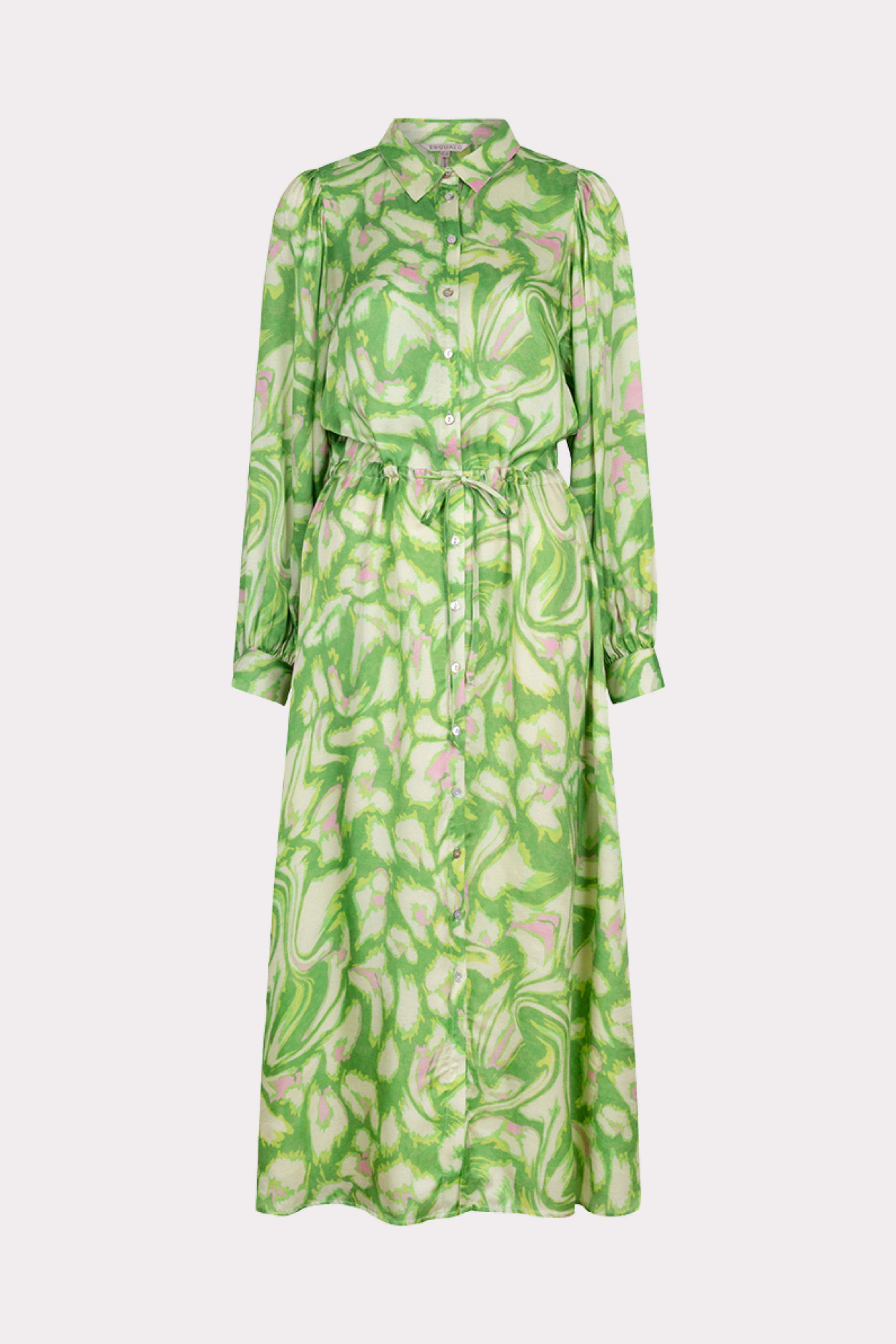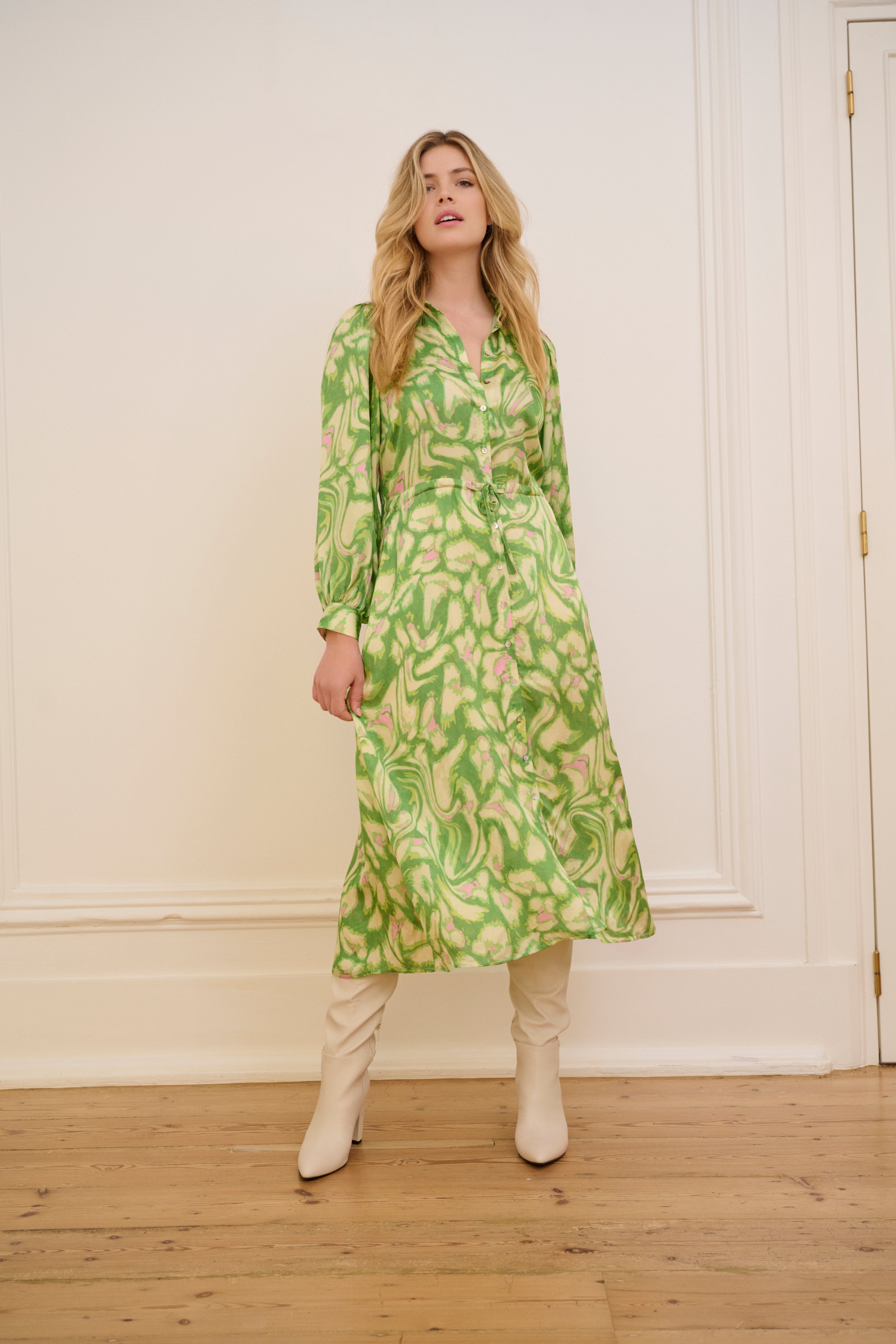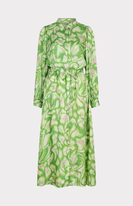 De Jurk Long Floral Treasure van Esqualo is een stijlvolle maxi-jurk met een opvallende groene print. De luchtige stof en elegante knoopsluiting maken deze jurk perfect voor elke gelegenheid. Dankzij de verstelbare taillekoord creëer je moeiteloos een flatterend silhouet. Een must-have voor dit seizoen!
