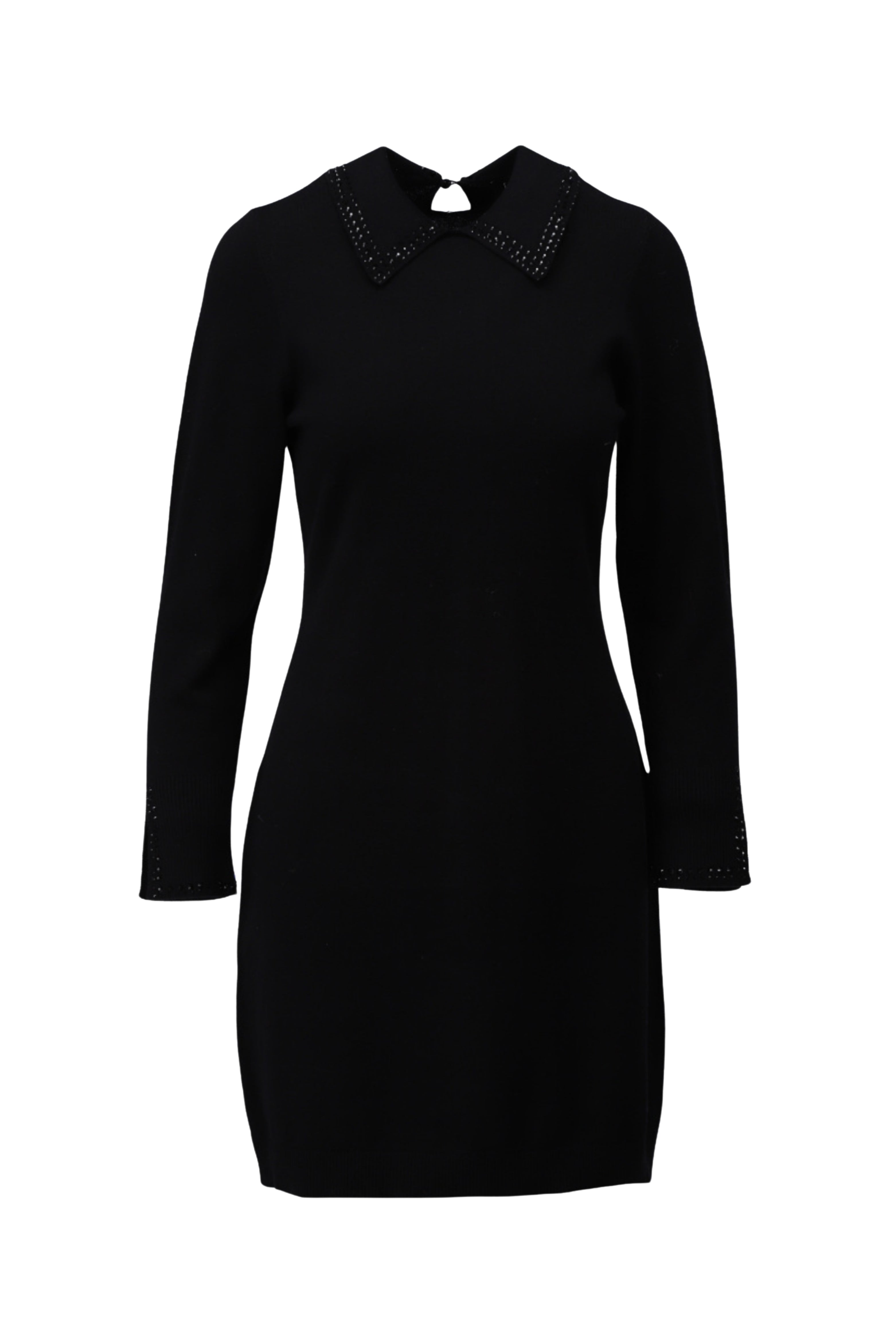 De Jurk Met Strass Black straalt klasse uit door de subtiele strass details langs de kraag en mouwen. Het aangesloten model met sluiting achter maakt dit een stijlvolle keuze voor een chique gelegenheid.