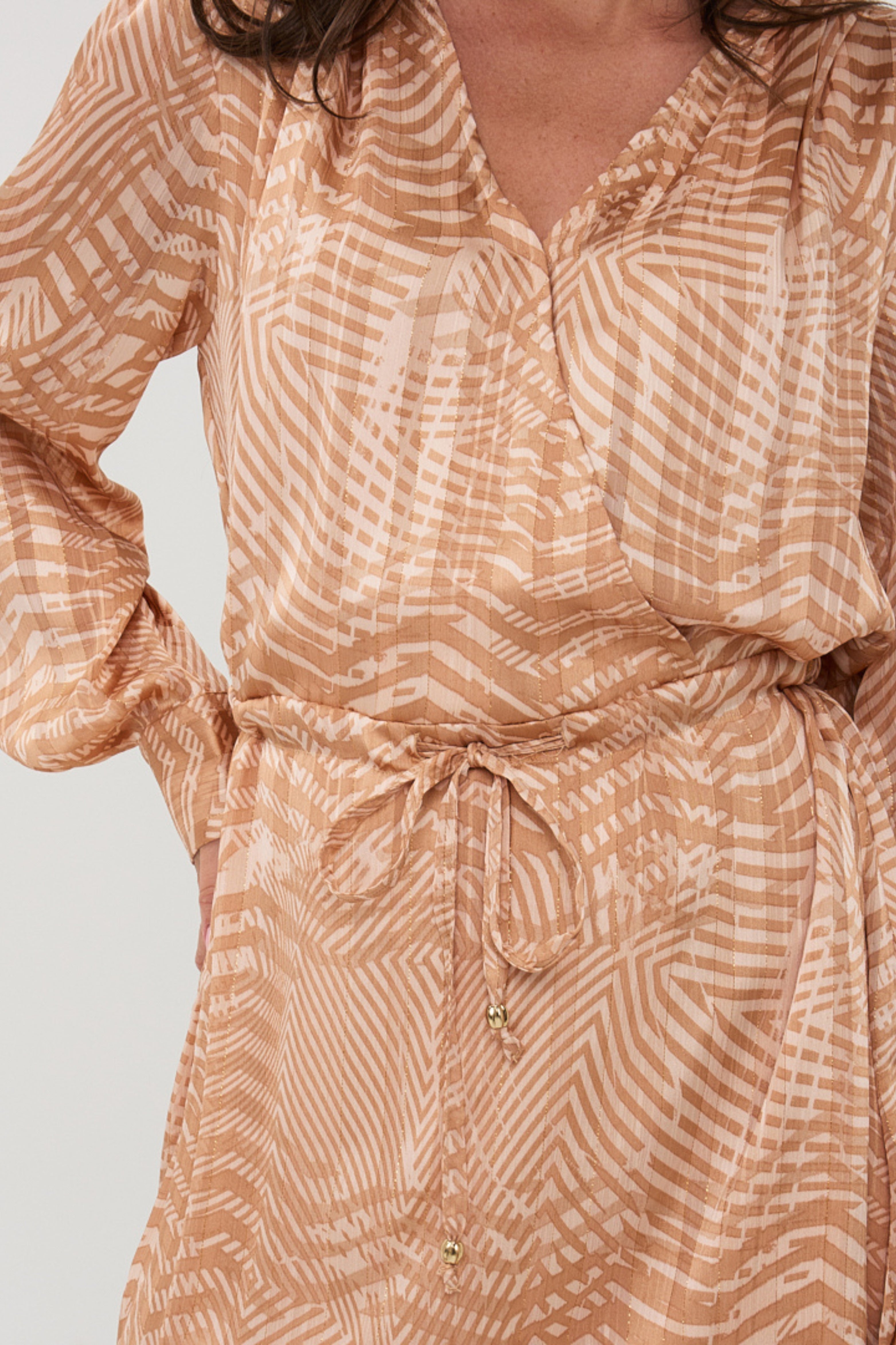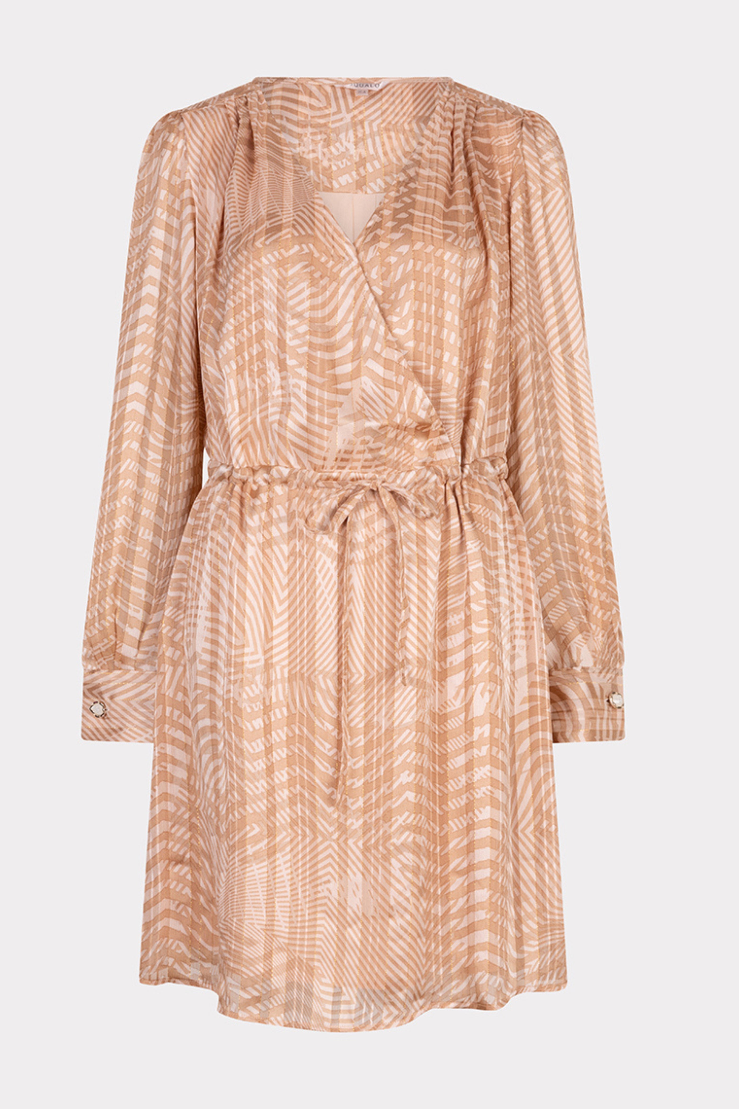 Deze elegante jurk met Peaceful Print van Esqualo straalt vrouwelijkheid uit. De zachte print, V-hals en taillekoord zorgen voor een flatterende pasvorm. Ideaal voor elke gelegenheid, van brunch tot borrel.