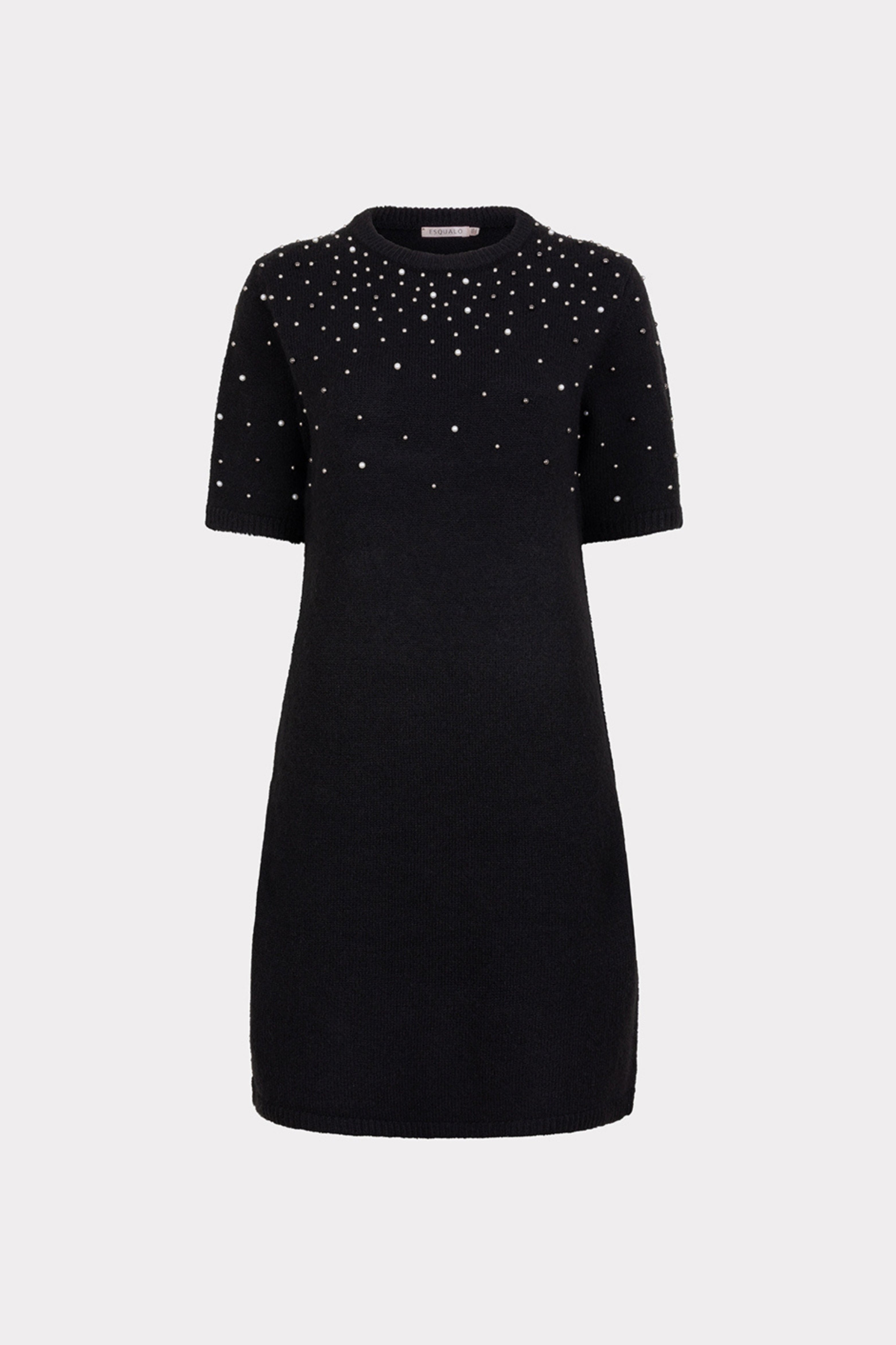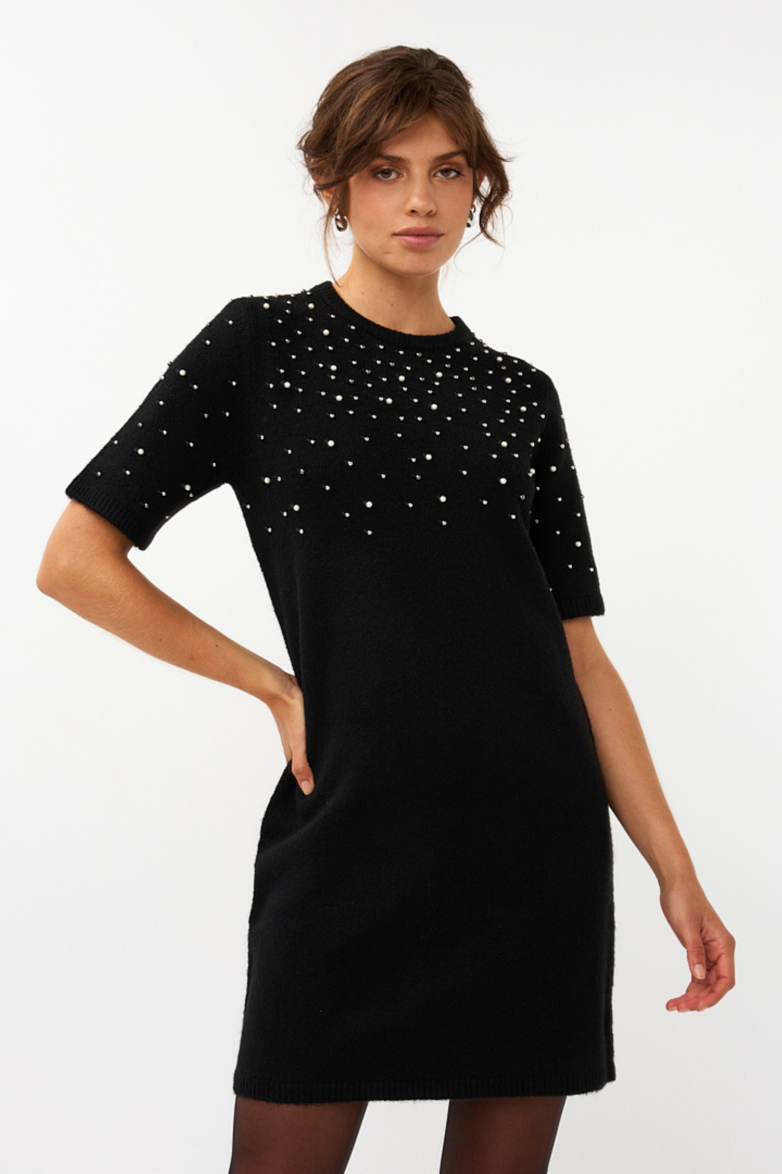 De Jurk Pearls Black van Esqualo is een elegante gebreide jurk met een vrouwelijke uitstraling. De pareldetails op het bovenstuk zorgen voor een luxe en feestelijke touch, perfect voor zowel bijzondere gelegenheden als stijlvolle dagelijkse looks.