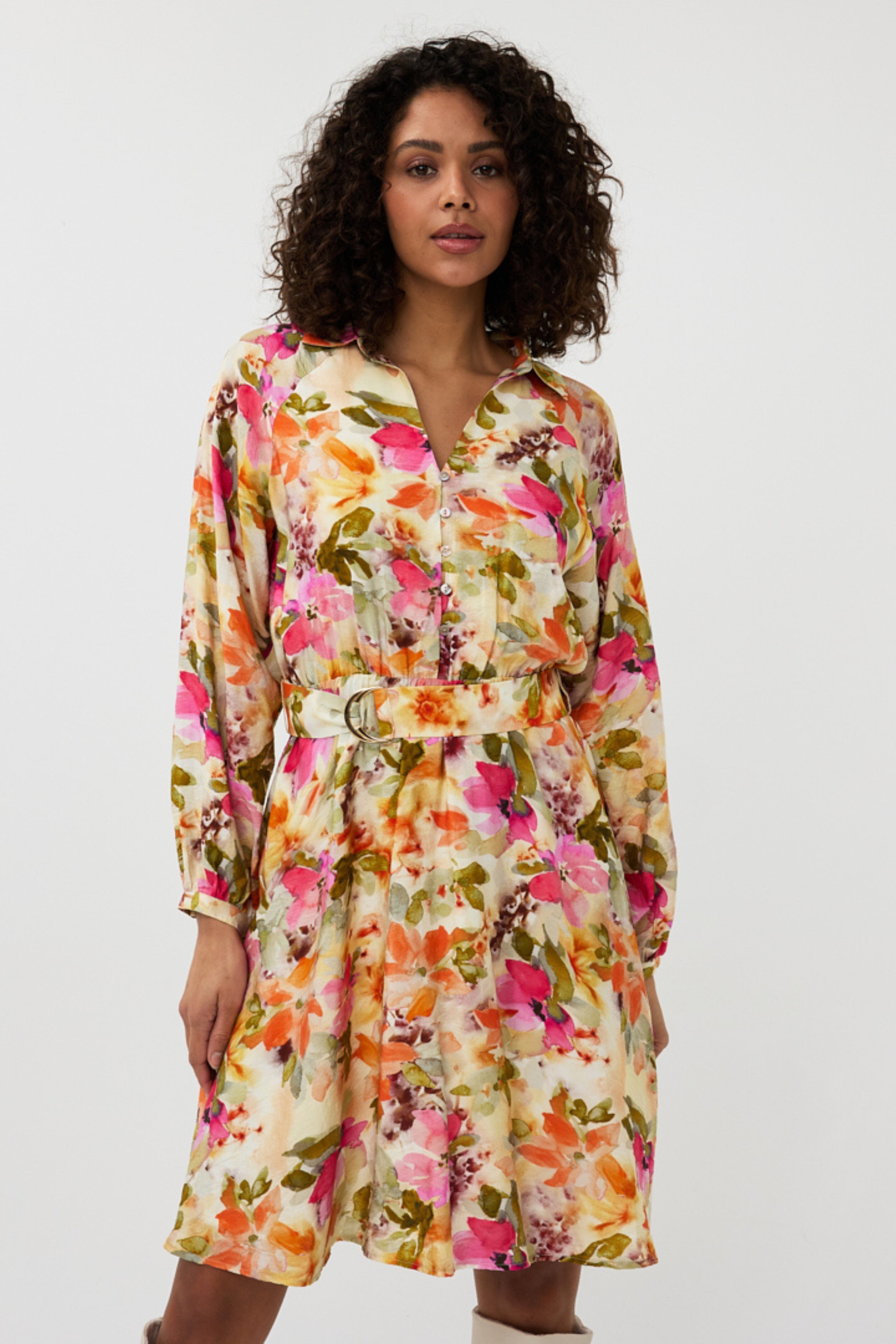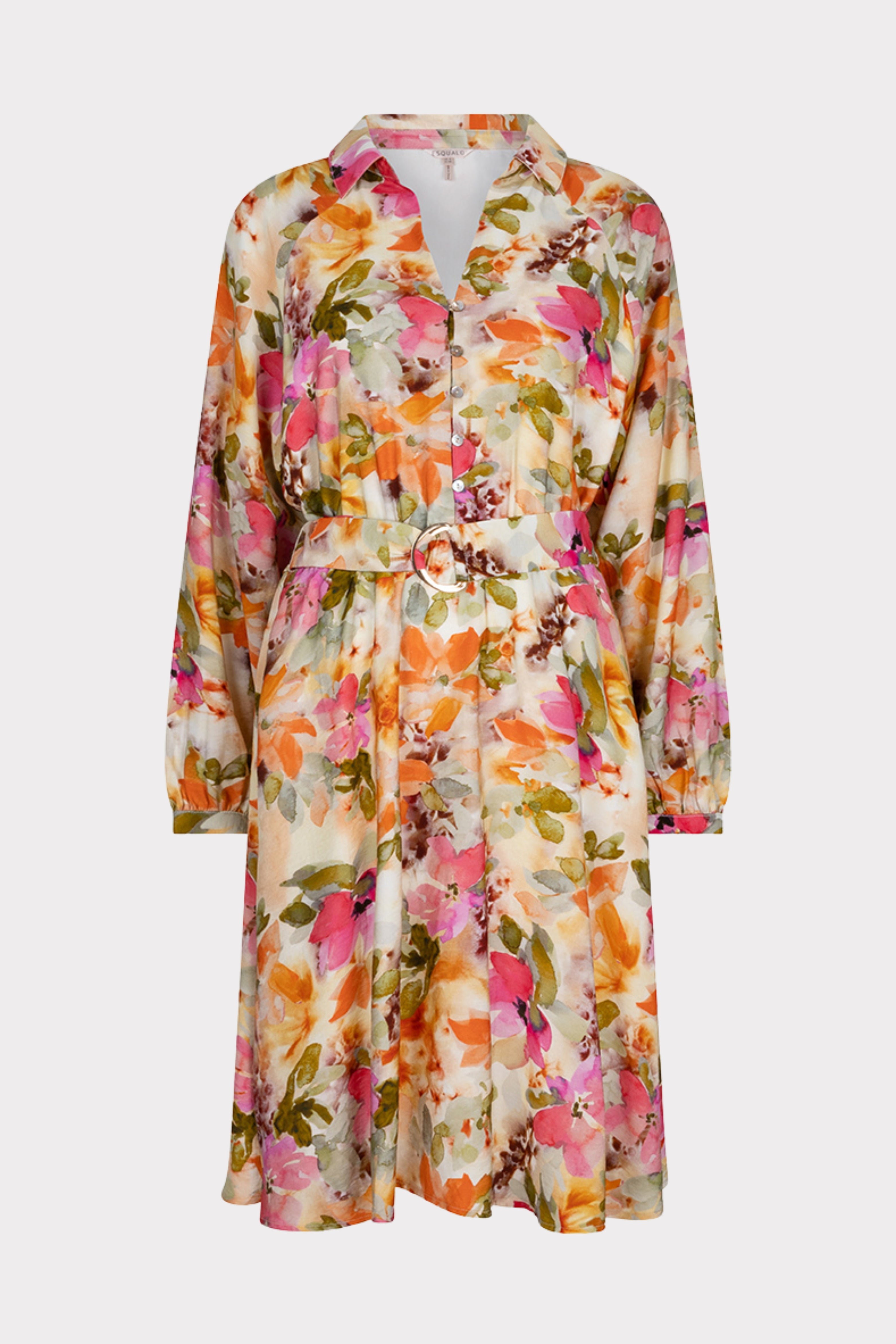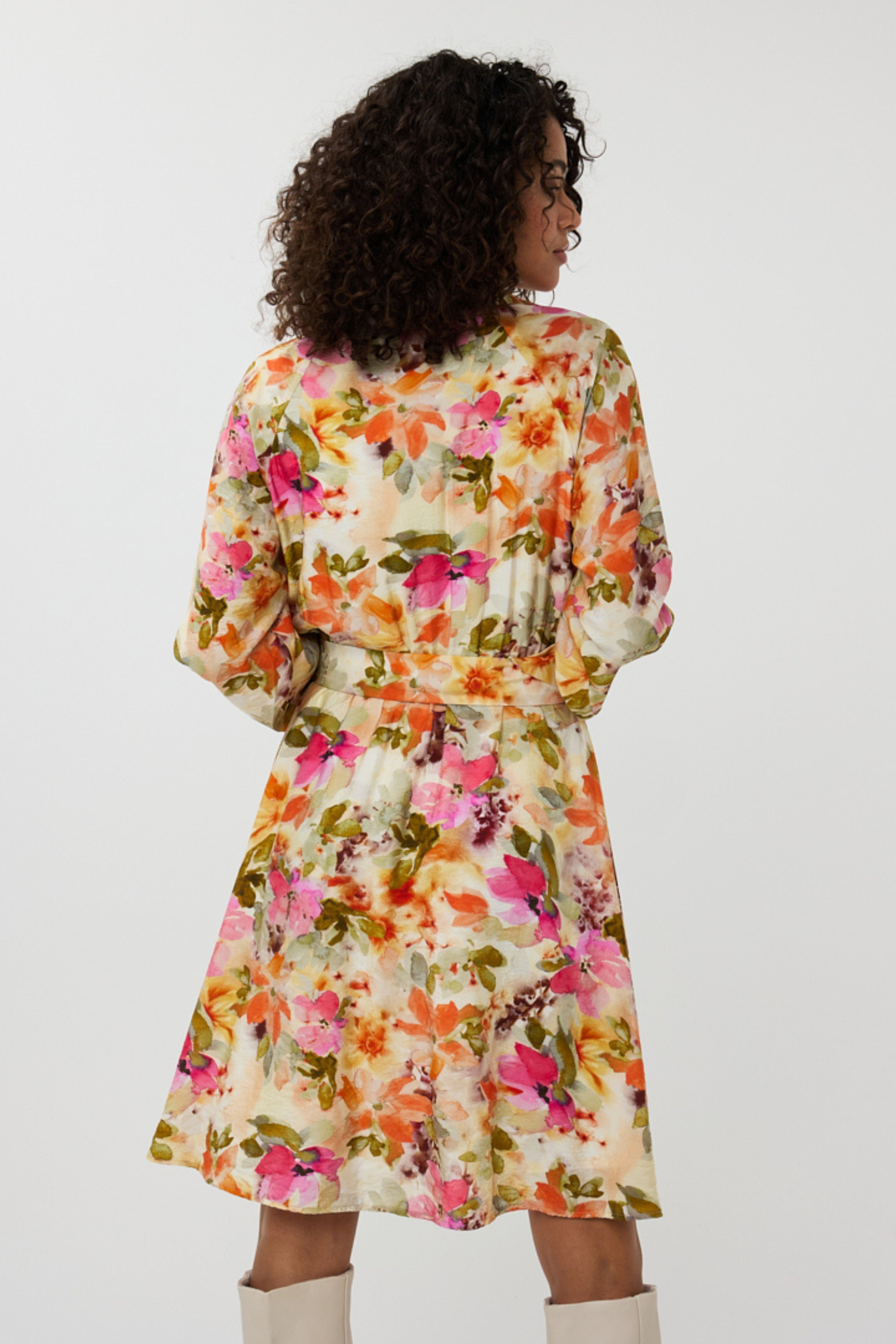 De Jurk Raglan Floral Garden van Esqualo is een elegante en speelse toevoeging aan je garderobe. De kleurrijke bloemenprint geeft een frisse, zomerse uitstraling, terwijl de getailleerde pasvorm met bijpassende ceintuur je figuur mooi accentueert. Ideaal voor zowel casual als feestelijke gelegenheden!