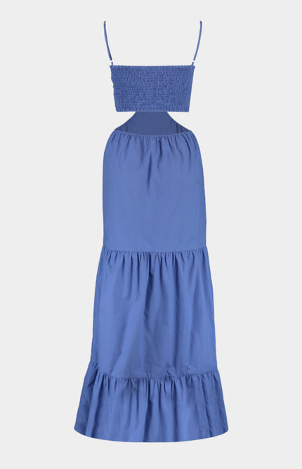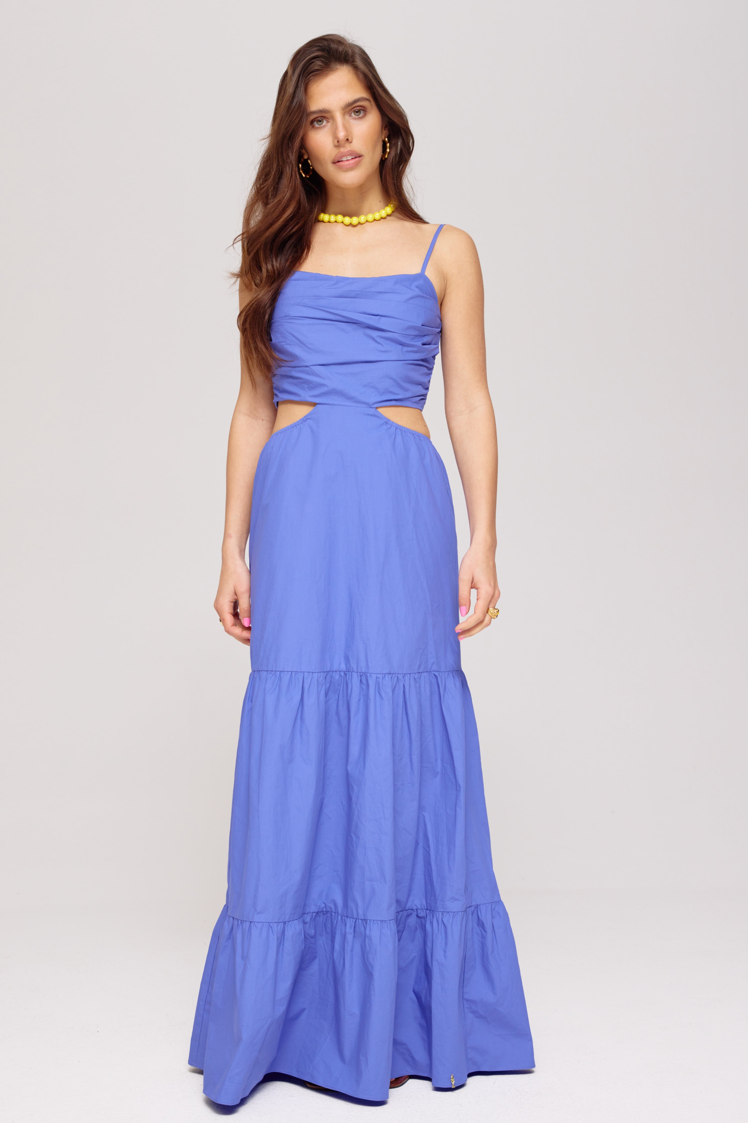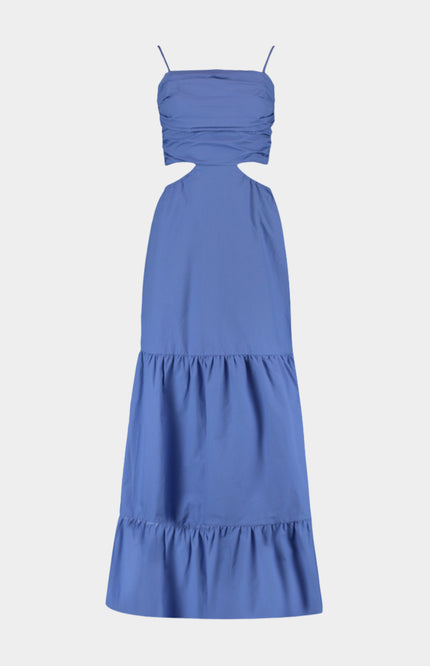 De jurk Tori Blue Plum van Harper & Yve is een zomerse eyecatcher met cut-outs in de taille, een geplooid lijfje en verstelbare spaghettibandjes. De gelaagde rok en elastische achterkant zorgen voor een perfecte fit én draagcomfort.