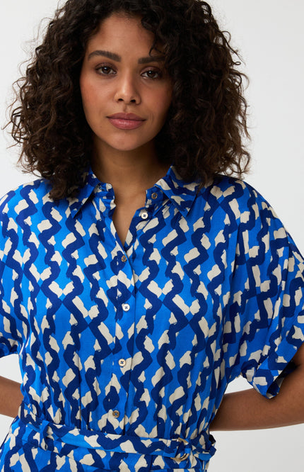 De Jurk Utopia Fantasy Print van Esqualo is een opvallende jurk met een unieke fantasieprint in levendige kleuren. Voorzien van een losse pasvorm en een tailleceintuur, perfect voor een stijlvolle en speelse look.