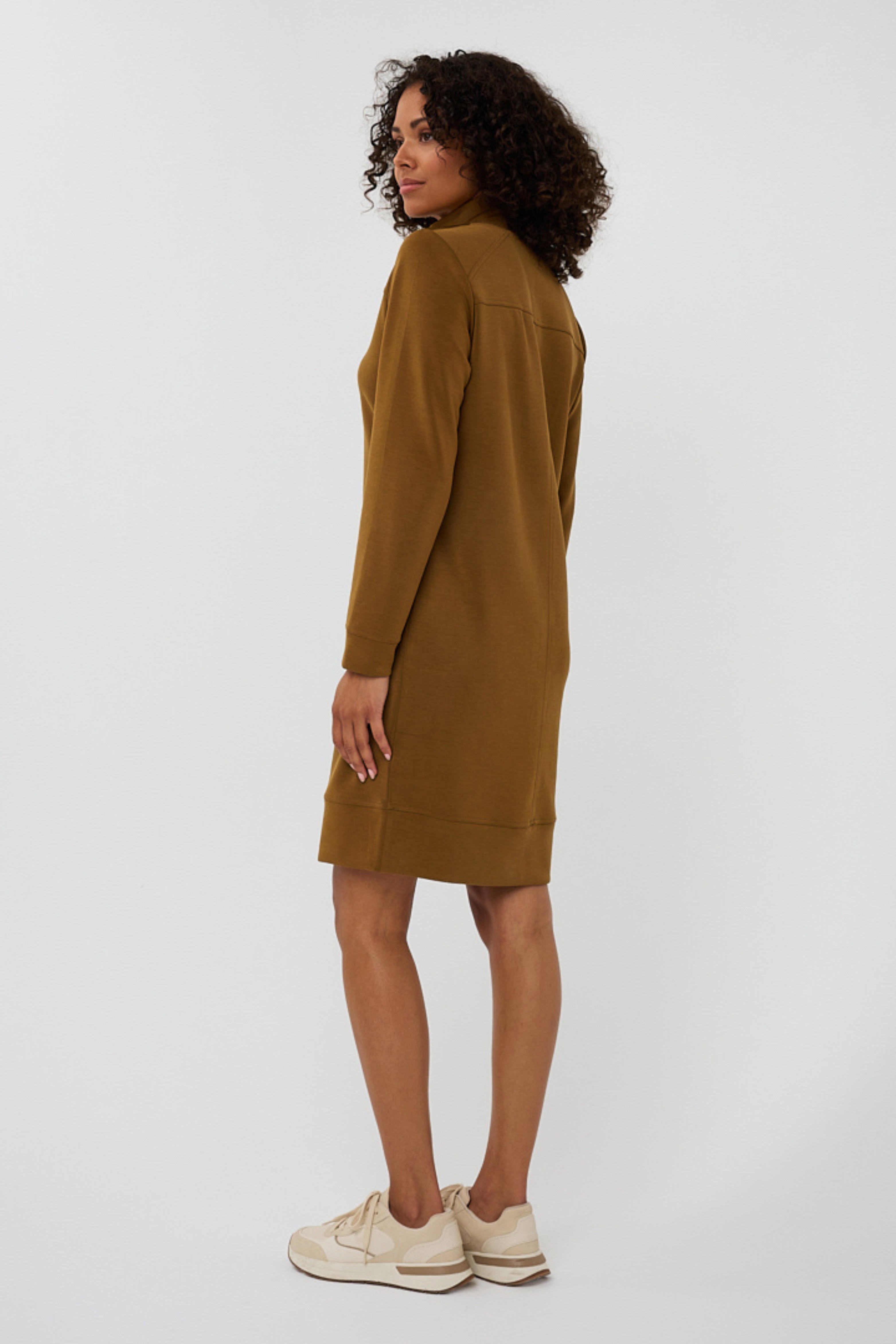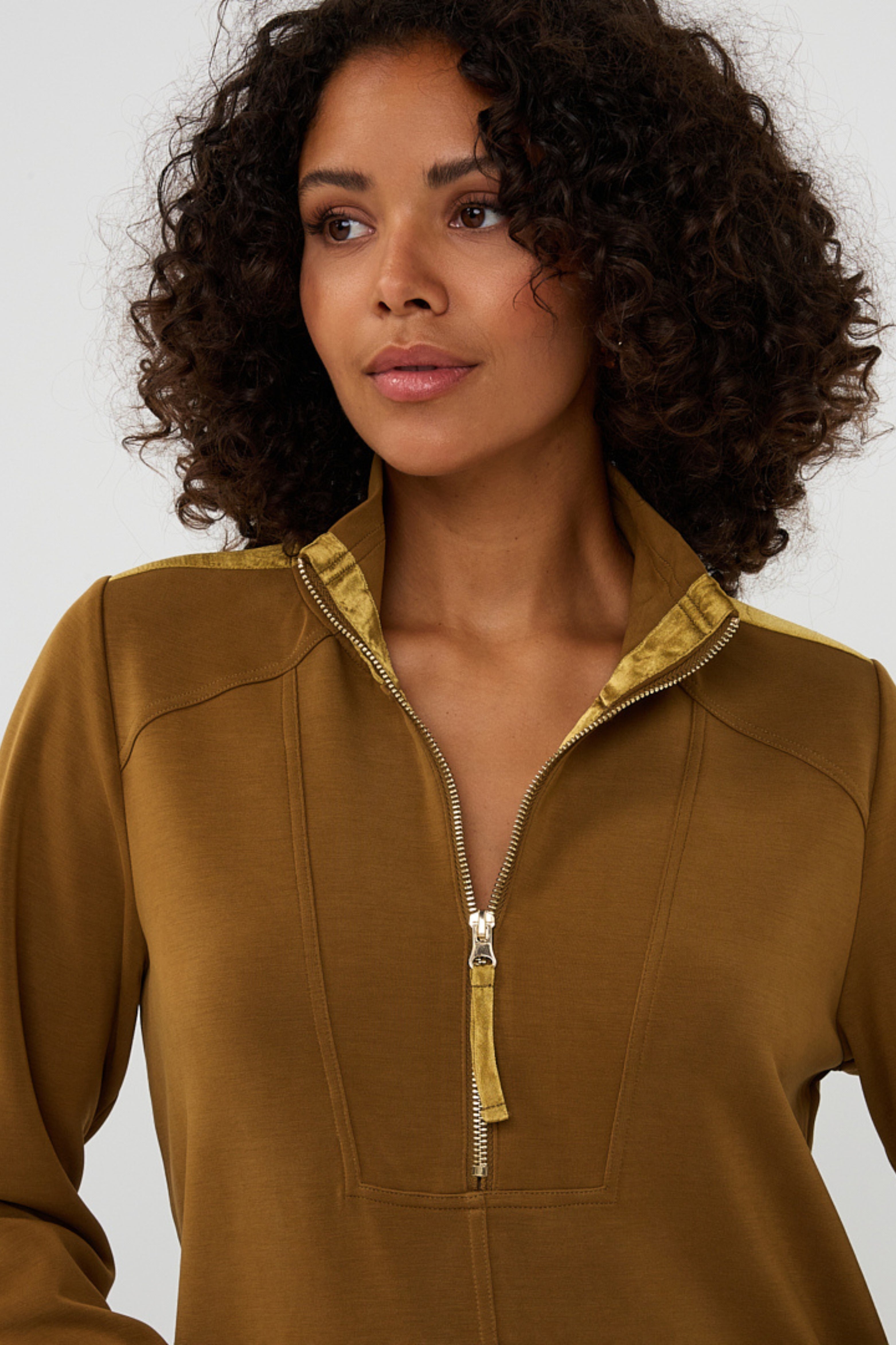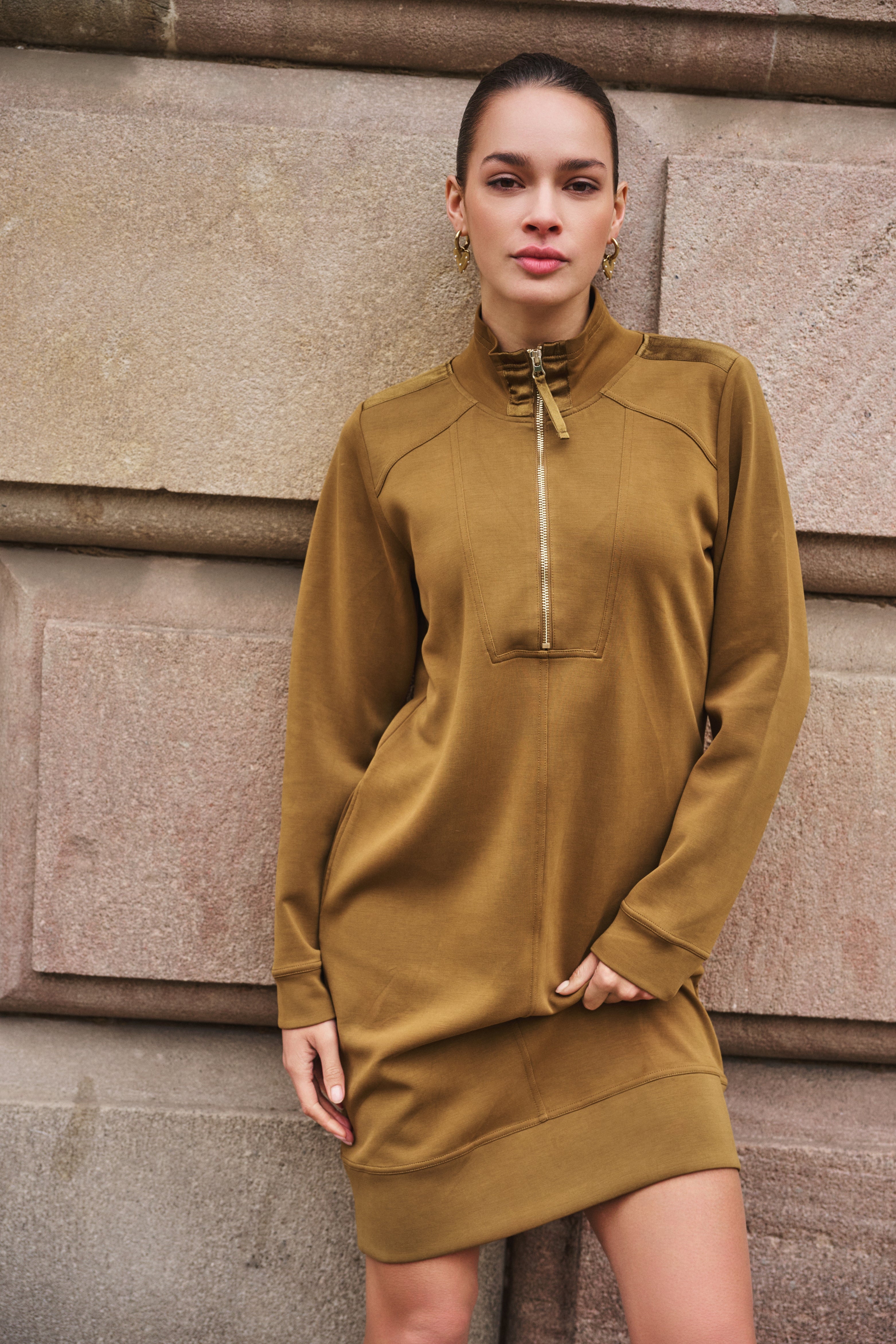 De Jurk Zipper Modal Olive van Esqualo is een sportief-chic item met halve rits en hoge kraag. Gemaakt van zachte modalmix voor ultiem draagcomfort – ideaal om stijlvol en relaxed de najaarsdagen door te komen.
