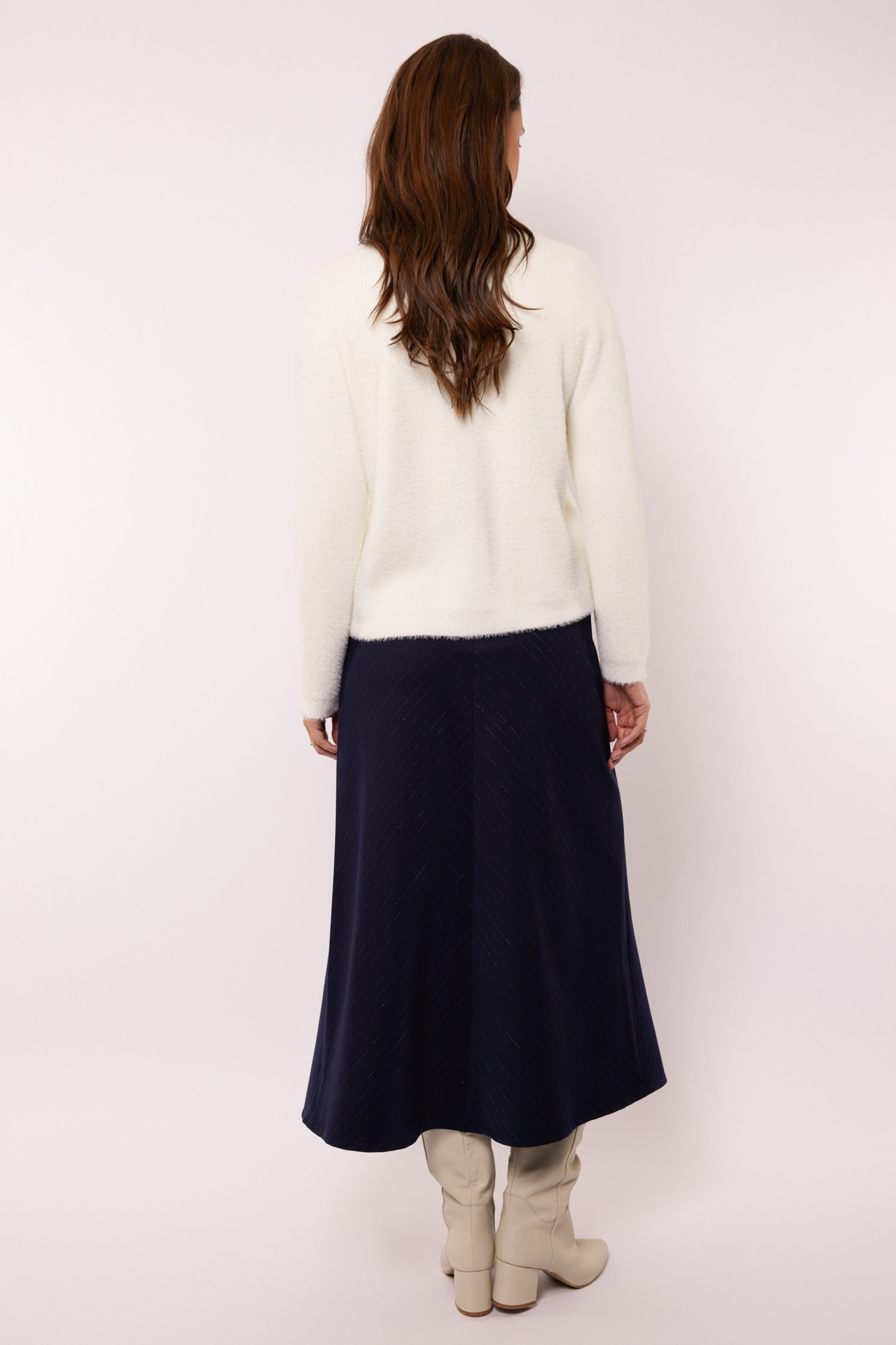 De Rok Anahi Dark Night Blue van G-Maxx is een elegante midi-rok die stijl en comfort combineert. De A-lijn pasvorm zorgt voor een vrouwelijk en flatterend silhouet, terwijl de elastische tailleband een comfortabele fit biedt.