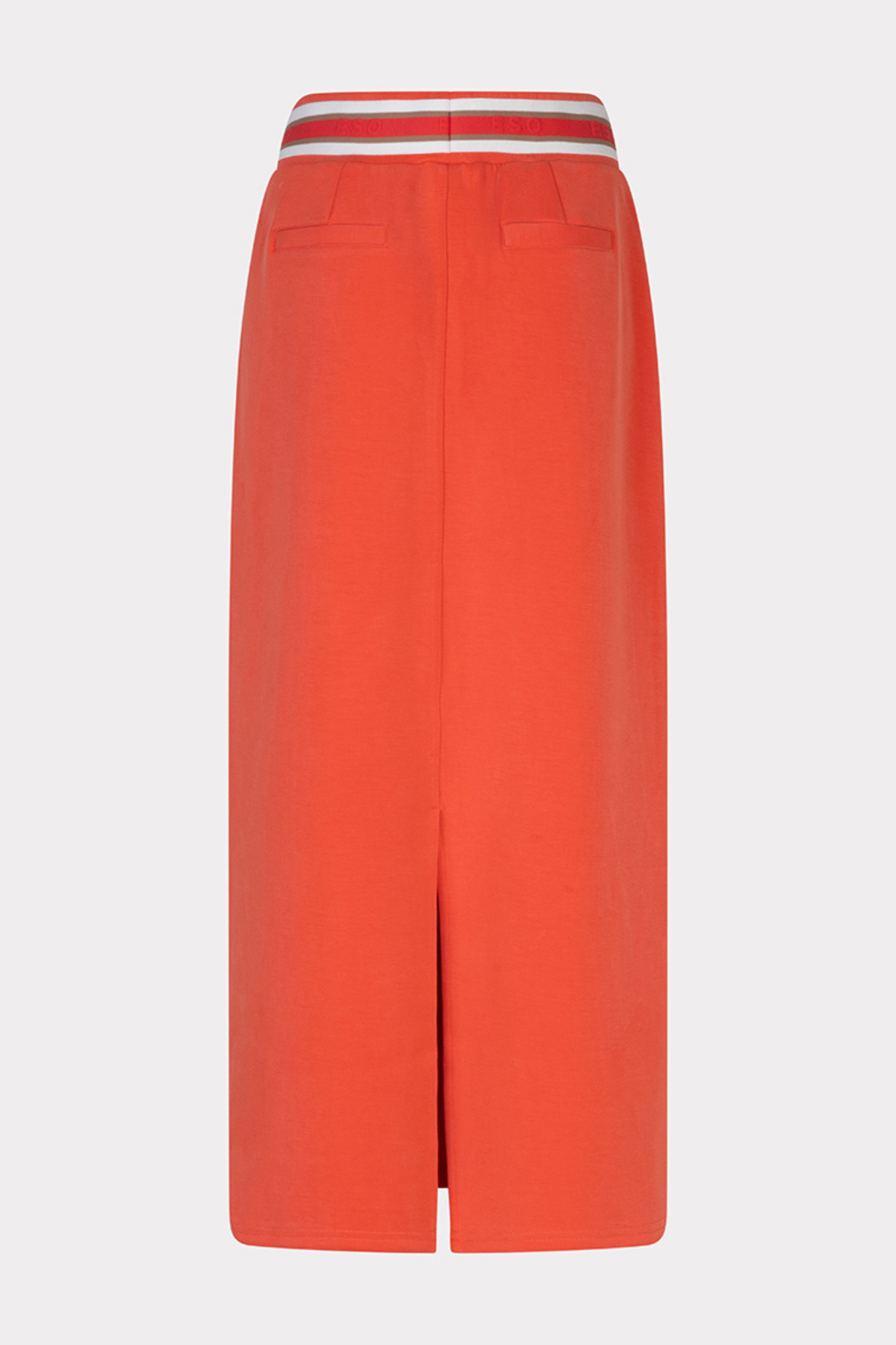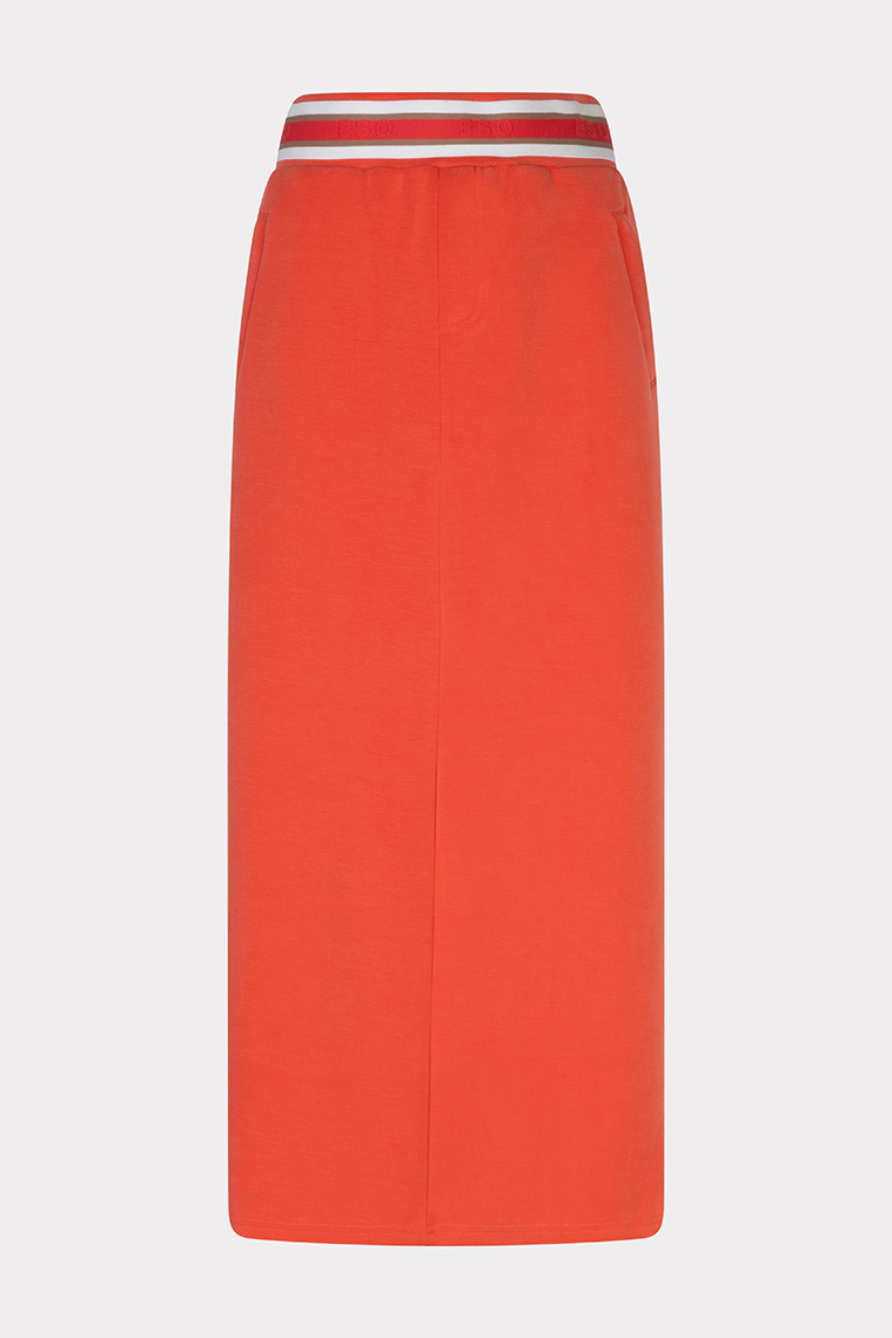 De Rok Long Fancy WB Wide Modal Chili Red van Esqualo is een lange, rechtvallende rok met sportieve tailleband. Voorzien van een achter split voor extra bewegingsvrijheid en comfort.