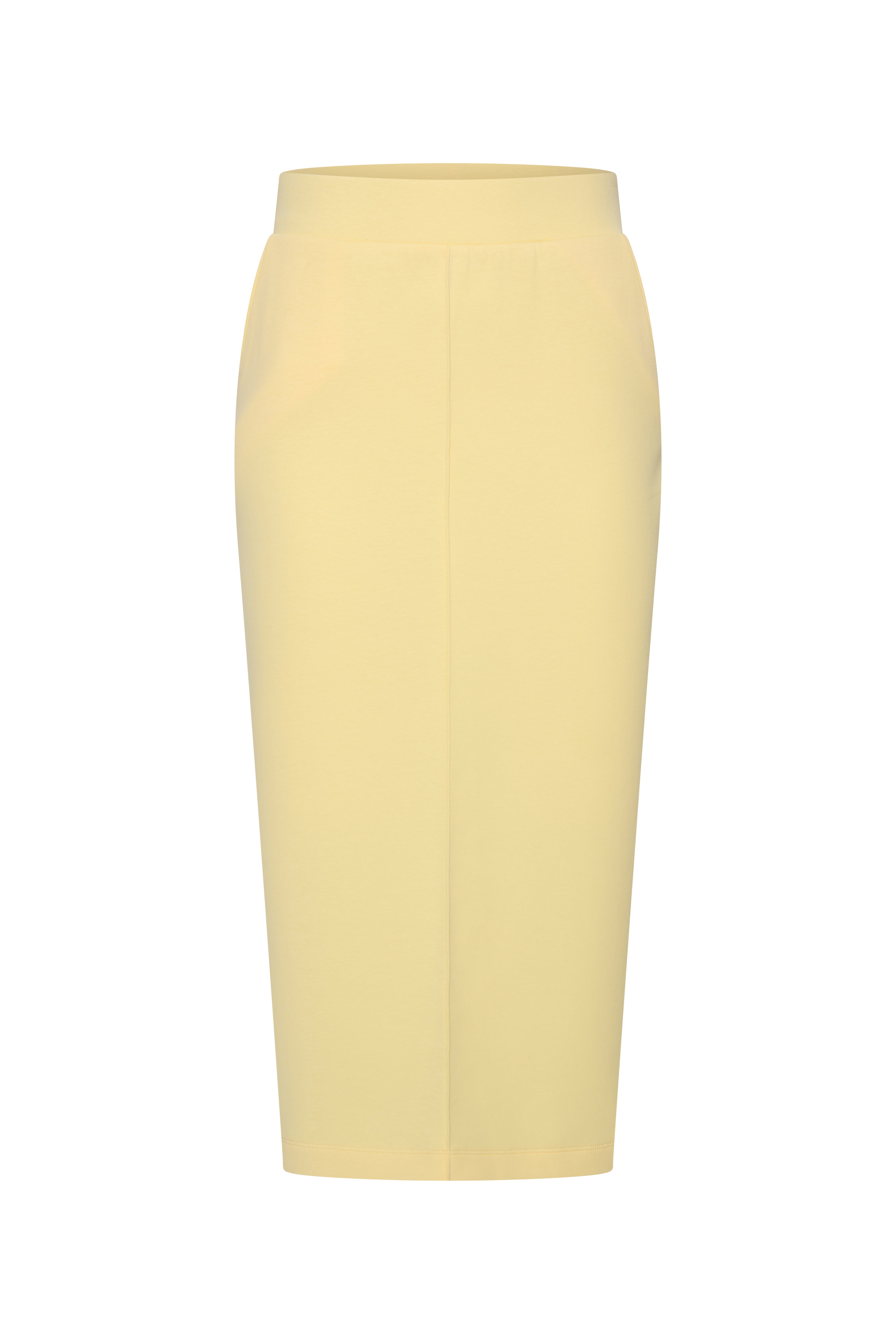 De Rok Sweat Lemon Yellow van Mi Piace is een frisse midi rok met een sportieve en moderne uitstraling. De zachte sweatkwaliteit en elastische tailleband zorgen voor een comfortabele pasvorm en maken deze rok perfect voor een casual, zomerse look.